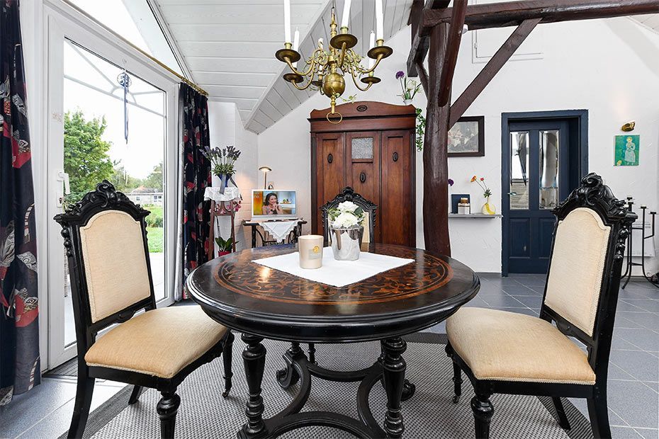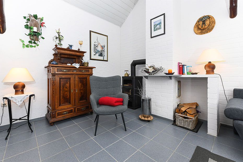 Im Herbst und Winter machen Sie es sich vor dem Kaminofen gemütlich. Die geschmackvolle, ostfriesisch-ländliche Einrichtung und Bilder hiesiger Künstler machen den besonderen Charme des Ferienhaus perfekt.