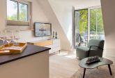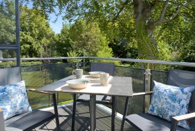 Genießen Sie die frische Ostseeluft auf dem Balkon mit Blick ins Grüne. Hier können Sie den Tag mit einem Frühstück im Freien beginnen oder abends bei einem Glas Wein ausklingen lassen.