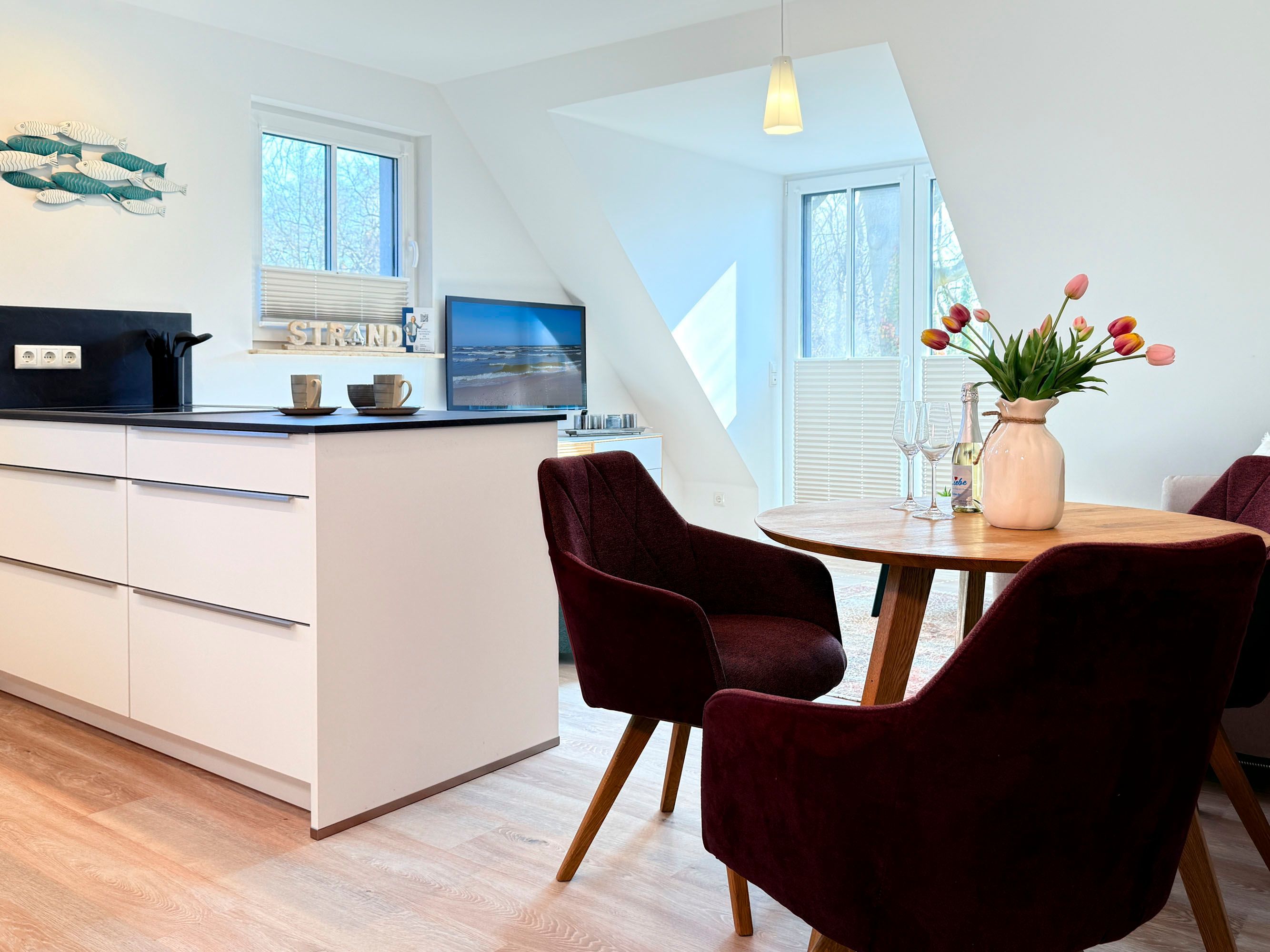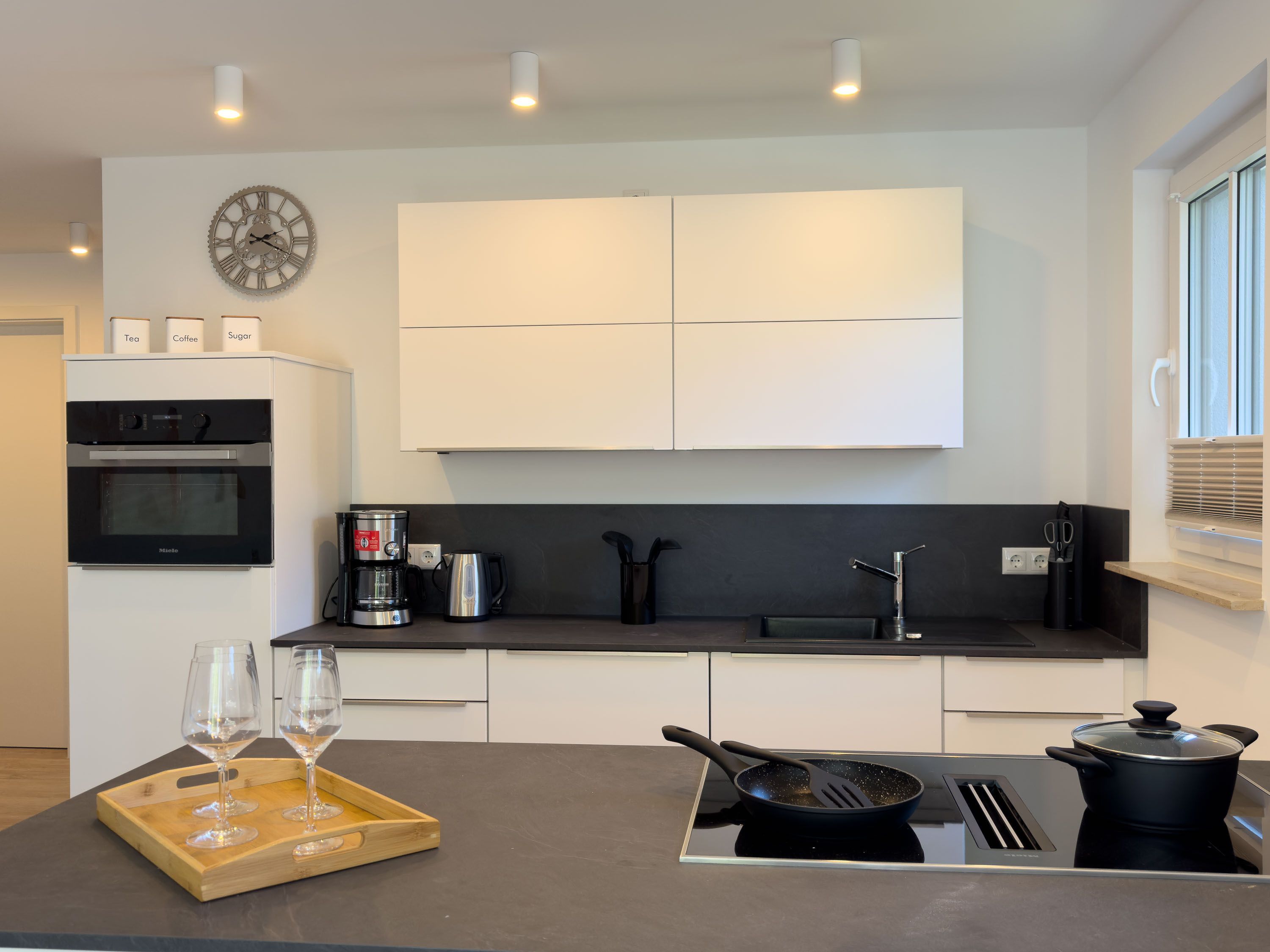 • Voll ausgestattete Küchenzeile mit Geschirrspüler und Filterkaffeemaschine