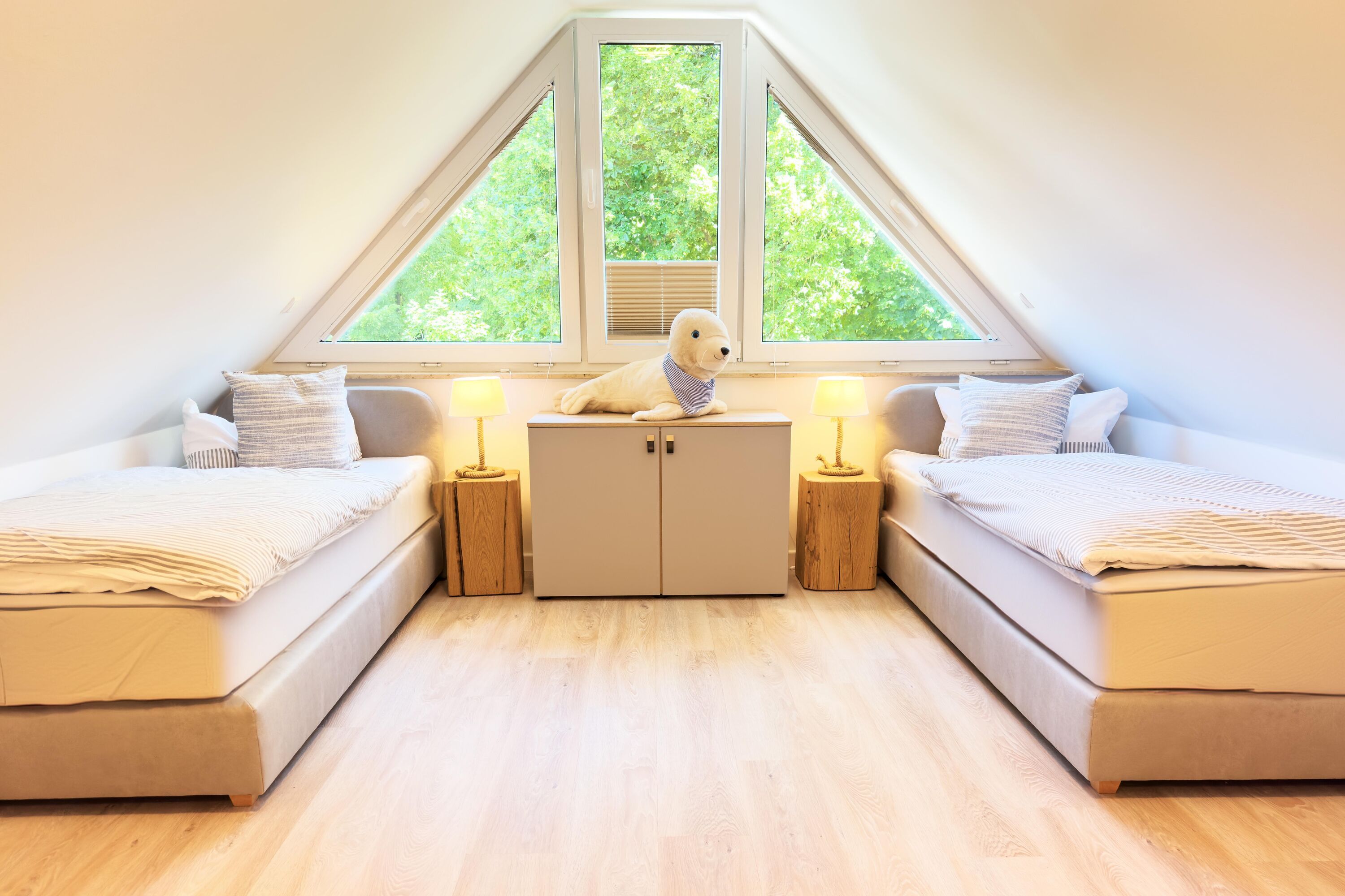 • Zwei separate Schlafzimmer: eines mit Doppelbett, eines mit zwei Einzelbetten