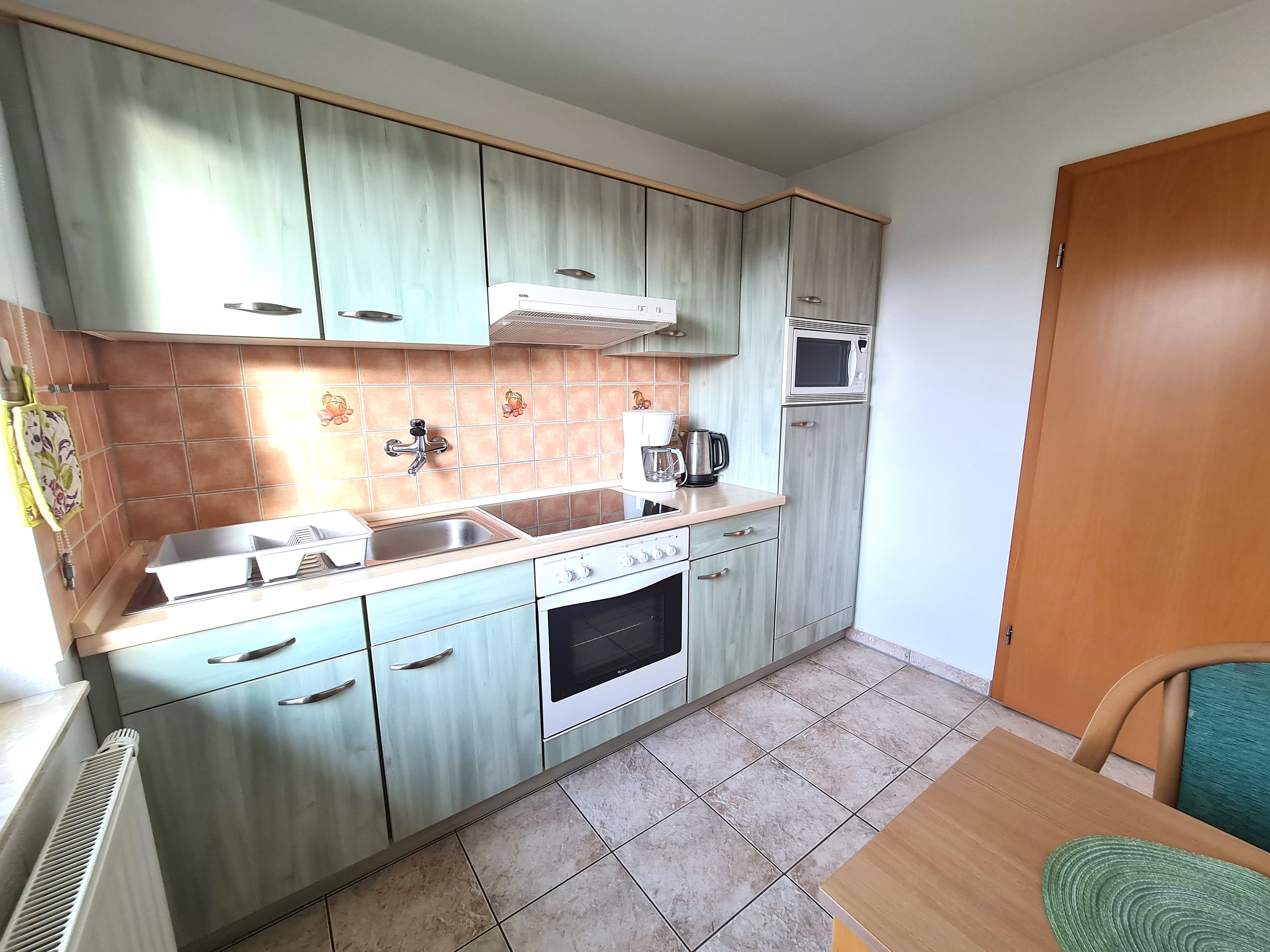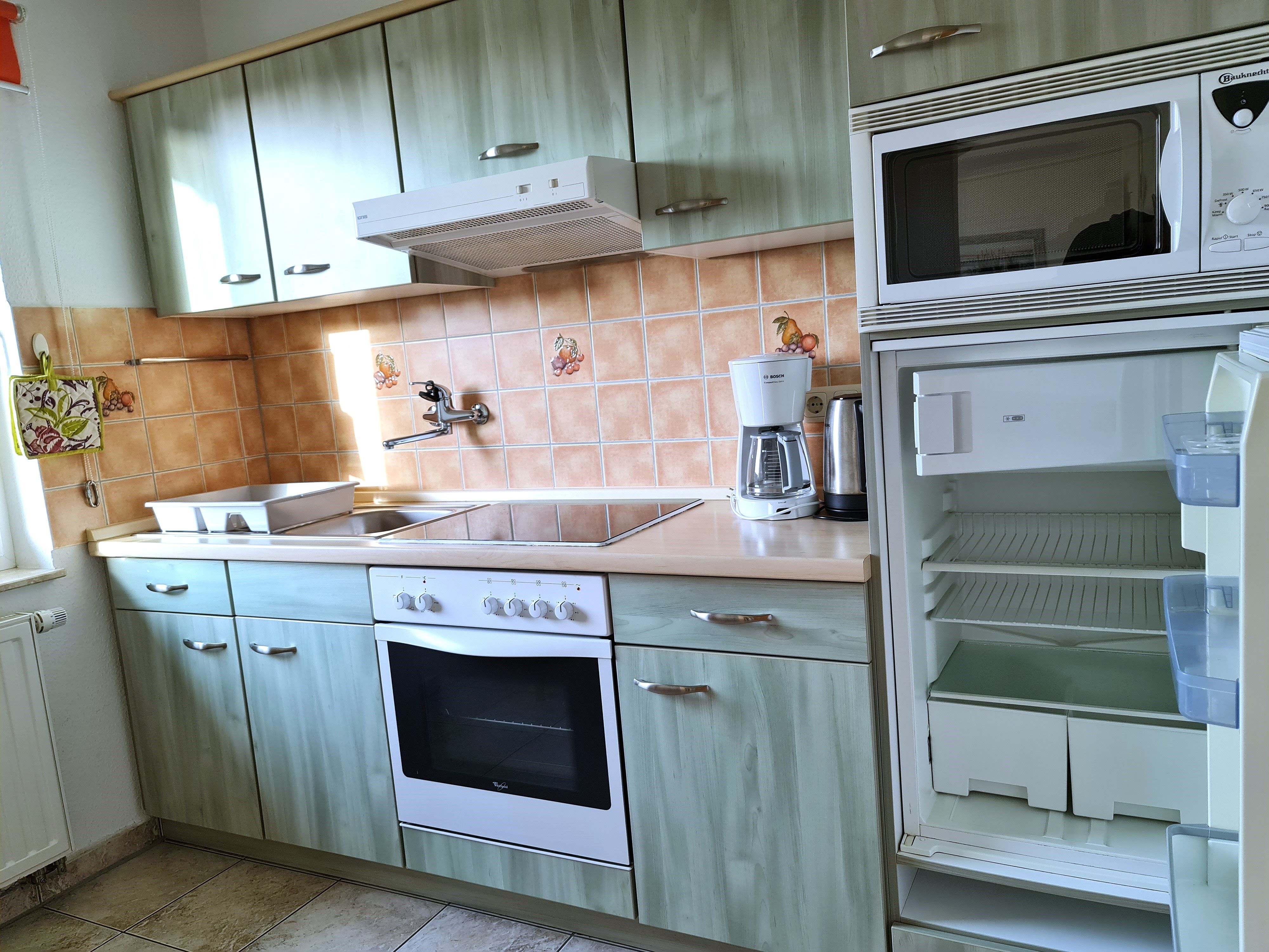 Küche: Voll ausgestattete Küchenzeile, die alle notwendigen Utensilien für die Zubereitung leckerer Mahlzeiten bietet.