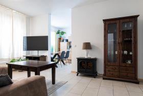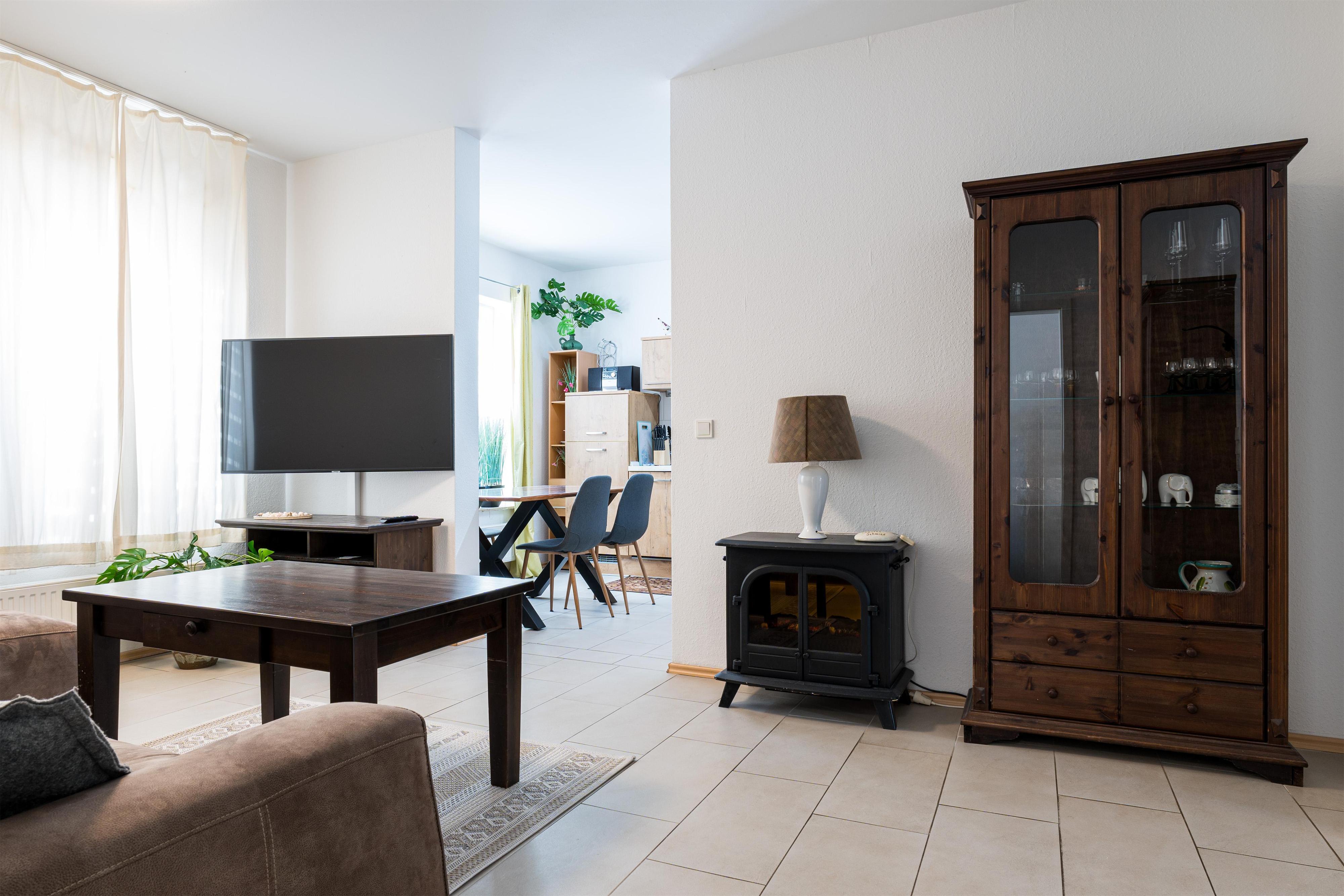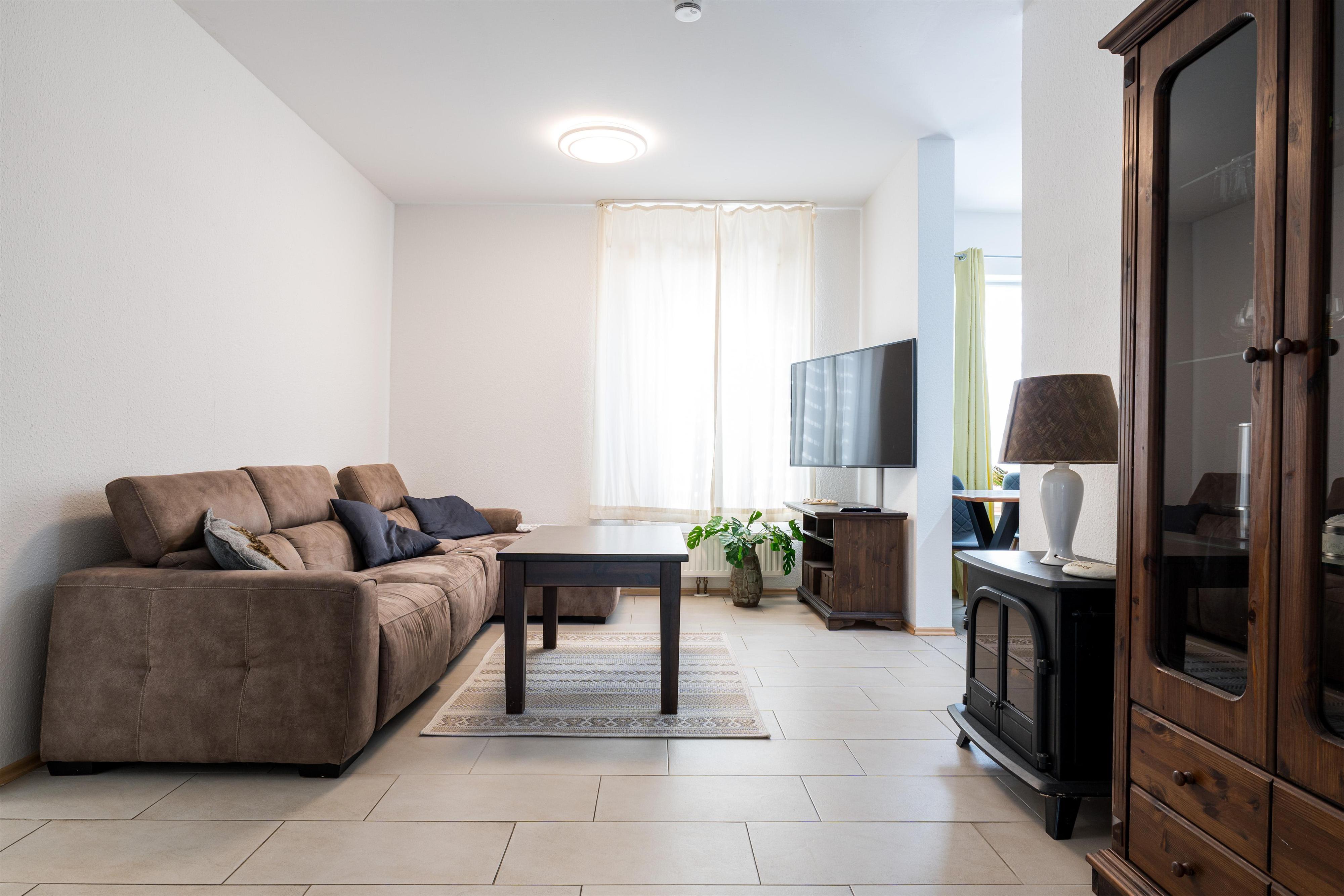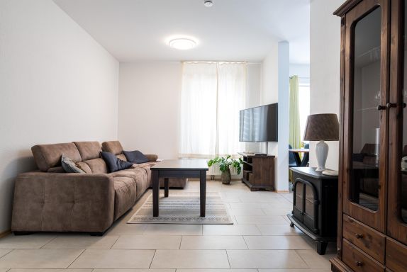Das Herzstück der Wohnung ist das gemütliche Wohnzimmer. Hier finden Sie eine große Couch, die zum Entspannen und Verweilen einlädt. Ob für gesellige Abende oder entspannte Stunden, das Wohnzimmer ist der ideale Ort, um den Tag ausklingen zu lassen.