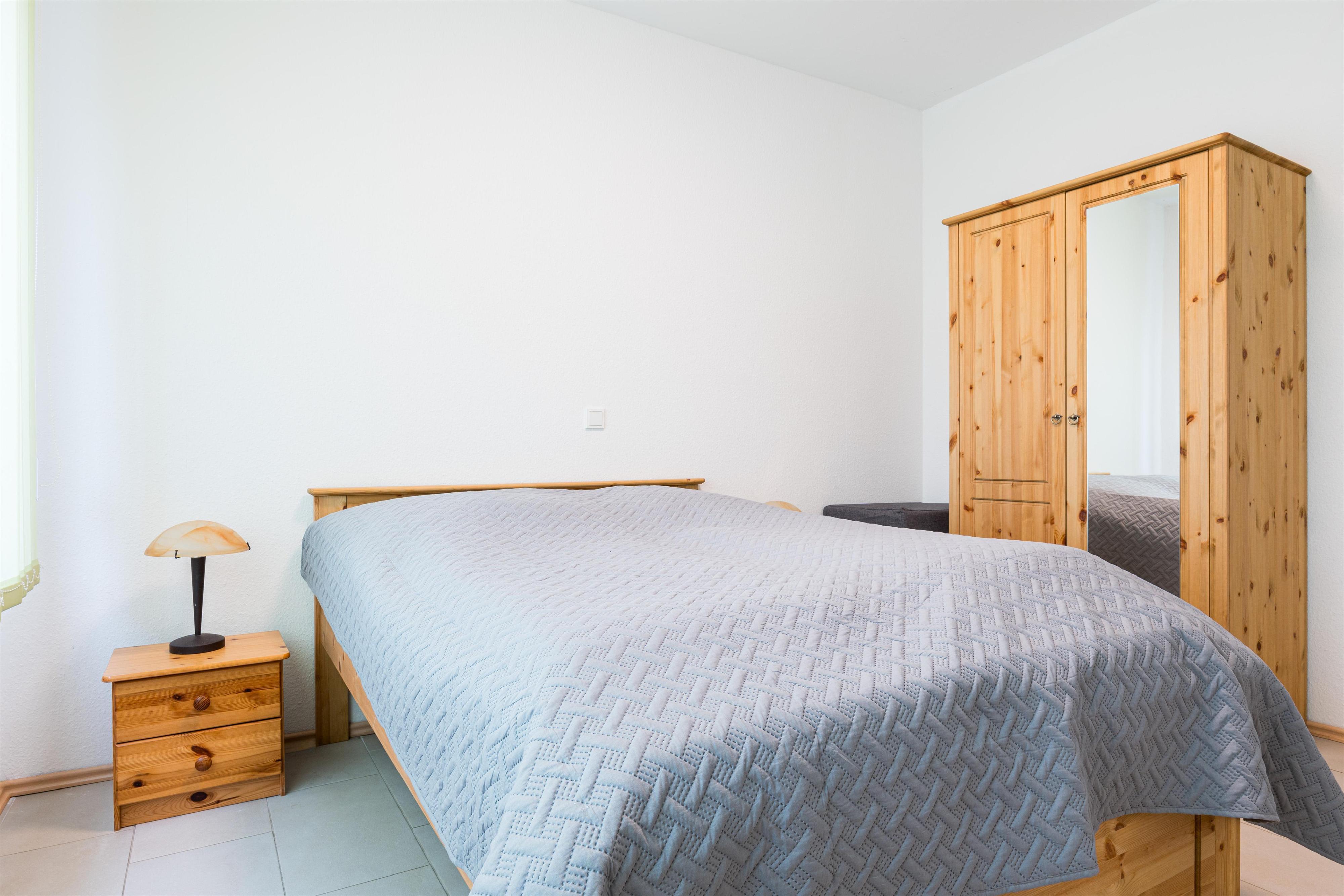 Die Ferienwohnung verfügt über zwei geräumige Schlafzimmer, jeweils ausgestattet mit großen Doppelbetten und großzügigen Kleiderschränken. Hier finden Sie den perfekten Rückzugsort für erholsame Nächte und genügend Stauraum für Ihre Garderobe.