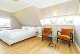 Mitten in der Heide und herrlich ruhig wartet dieses entzückende und frisch renovierte Hausteil bei Flut sogar mit einem glitzernden Meerblick auf. Im offenen WohnEssbereich sorgen Farbtupfer gepaart mit Möbeln im Industrial Chic für ein Höchstmaß an Gemütlichkeit. Von hier schaut man durch die Panoramafenster auf das friedliche Heideland. Die separate Küche verfügt über alles was nötig ist. Über den Flur und vorbei am kleinen Gäste-WC mit Dusche, gelangen Sie über die friesisch schmale Treppe ins 1. Obergeschoss. Hier erwarten Sie ein kleines Schlafzimmer für Zwei und ein größeres Doppelschlafzimmer mit Duschbad en suite. Besonderen Komfort bieten hier die gemütliche Sitzecke und ein grandioser Gartenblick, wo man vom Bett aus bis zum Watt schauen kann. Ebenfalls befindet sich hier ein kleiner Schreibtisch mit Ausblick zum Arbeiten und Sinnieren. Das Quartier ist mit Designboden in Holzoptik ausgelegt.