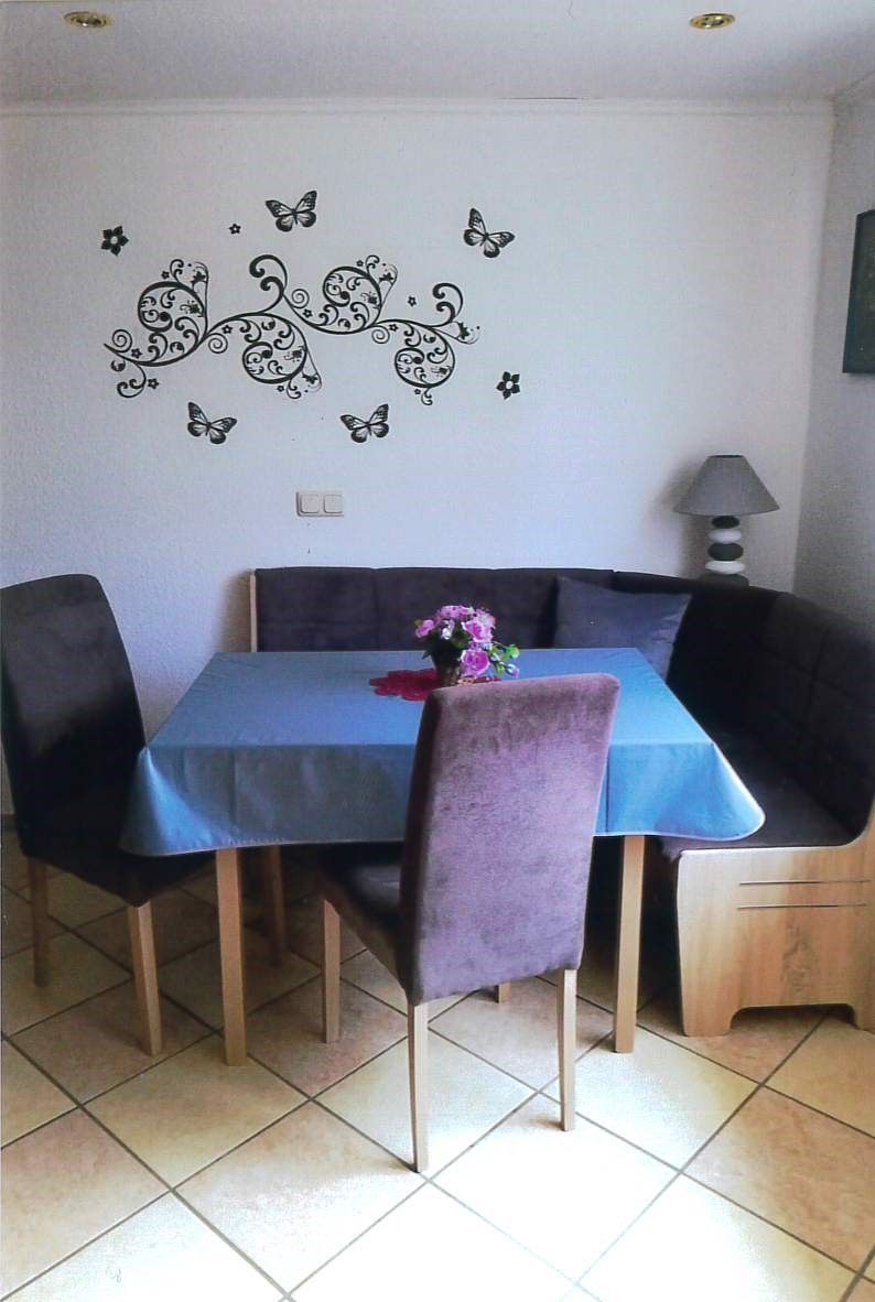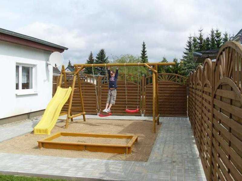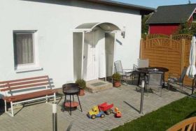Das Ferienhaus ist ausgestattet mit einem Wohnraum, an dem eine offene Küche grenzt, zwei Schlafräumen und einem Badezimmer. Im Wohnraum stehen Ihnen eine Essecke sowie eine gemütliche Sitzecke mit Kaminofen, TV und Radio zur Verfügung. Die offene Küche ist bestückt mit Waschmaschine, Spülmaschine, 4-Platten-Herd mit Backofen, Kühlschrank und Mikrowelle. Ein Schlafraum ist ausgestattet mit zwei Einzelbetten, Kleiderschrank und TV. Ein weiterer Schlafraum ist möbeliert mit einem Doppelbett und einem großen Kleiderschrank. Im Bad befindet sich neben Dusche und WC, auch eine Fußbodenheizung. Ein Parkplatz sowie eine beleuchtete Terrasse mit Sitz- und Grillmöglichkeiten stehen zur Verfügung. Für unsere kleinen Urlaubskinder haben wir einen Kinderspielplatz auf dem Grundstück errichtet. Zwei Schaukeln, eine Rutsche, ein Buddelkasten, eine Liegewiese und eine gepflasterte Rundumbahn für Roller und Dreirad laden zum Spielen ein. Spielzeug ist vorhanden. Bettwäsche und Handtücher sind vorhanden. Anreise ab 16.00 Uhr, Abreise bis 10.00 Uhr.