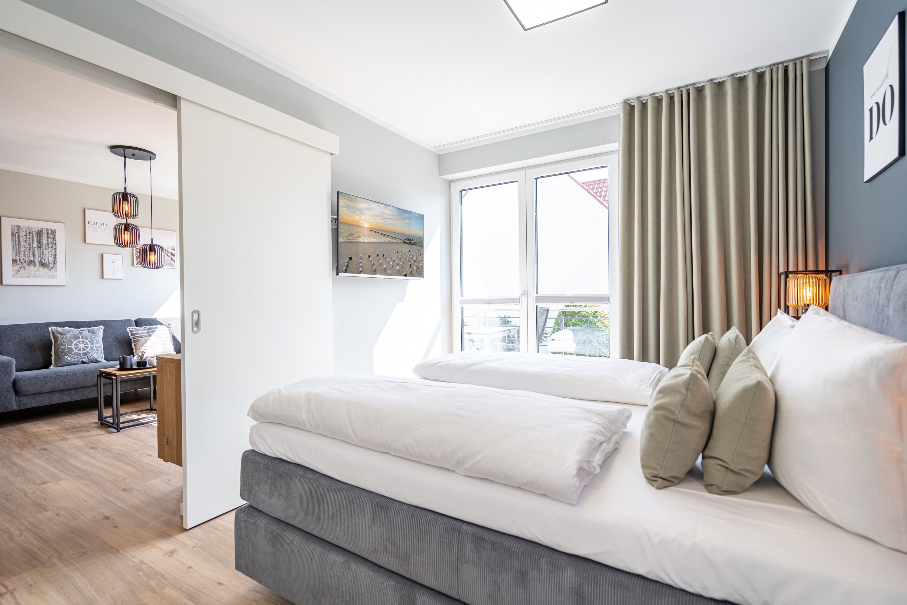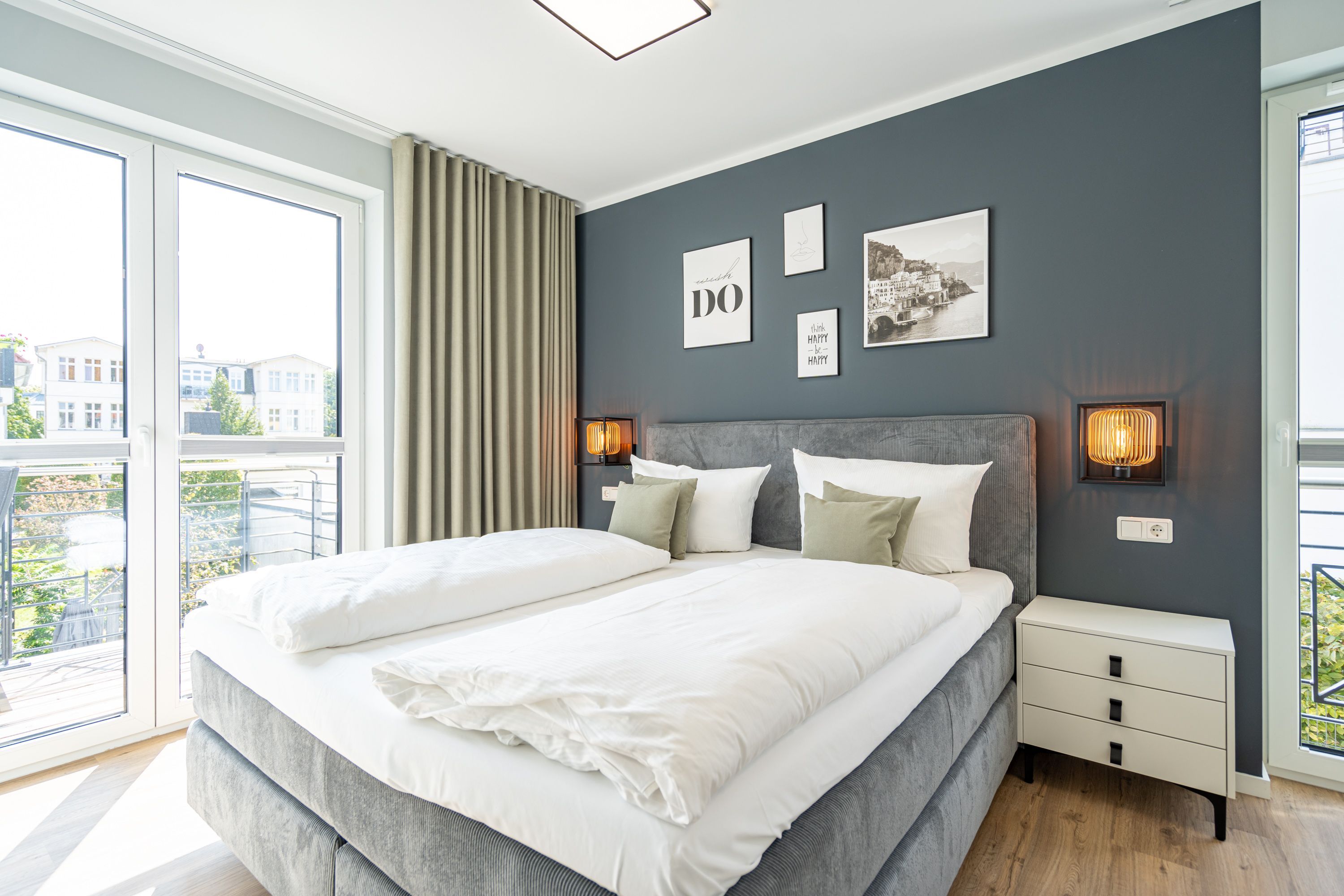 Erleben Sie Ihren perfekten Urlaub im neuen und stilvollen Appartementhaus Quartier 6 in der Karlstraße im Seebad Ahlbeck. Dieses moderne Gebäude, inspiriert von der eleganten Bäderarchitektur, bietet Ihnen höchsten Komfort und zahlreiche Annehmlichkeiten für einen unvergesslichen Aufenthalt. Das Quartier 6 beherbergt 11 exklusive Ferienwohnungen, darunter sowohl 2- als auch 3-Raum-Appartements. Jedes Appartement ist mit hochwertigen Ausstattungen versehen. Viele unserer Wohnungen verfügen über eine eigene Sauna für Ihre persönliche Wellnessoase. Ein Großteil der Appartements bietet einen gemütlichen Kamin, der für eine behagliche Atmosphäre sorgt. Genießen Sie die frische Ostseeluft auf Ihrer eigenen Terrasse oder Ihrem Balkon. Jede Wohnung hat einen eigenen Stellplatz in der Tiefgarage (Einfahrthöhe 2,00 m, enge Einfahrt!), sodass Sie sich um das Parken keine Sorgen machen müssen. Quartier 6 Ihr exklusives Ferienappartementhaus in Ahlbeck, wo Komfort, Eleganz und eine erstklassige Lage zusammenkommen.