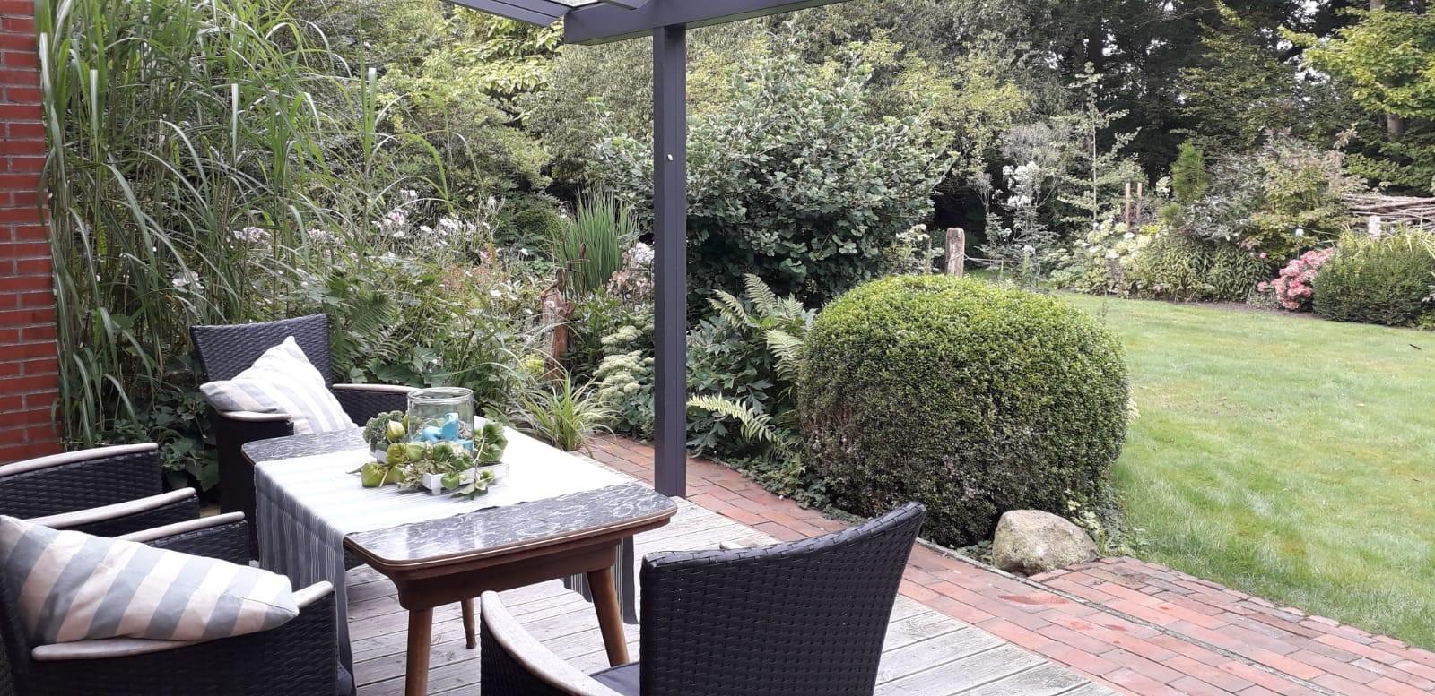 Die Fewo ist besonders für Familien und Paare geeignet und lädt inmitten der Natur im schönen Ammerland zur Entspannung ein. Die Wohnung befindet sich in einem alten Bauernhaus mit Anbau und riesengroßem, liebevoll angelegten Garten. Sie verfügt über eine eigene überdachte Terrasse mit direktem Zugang zum Gartenbereich.