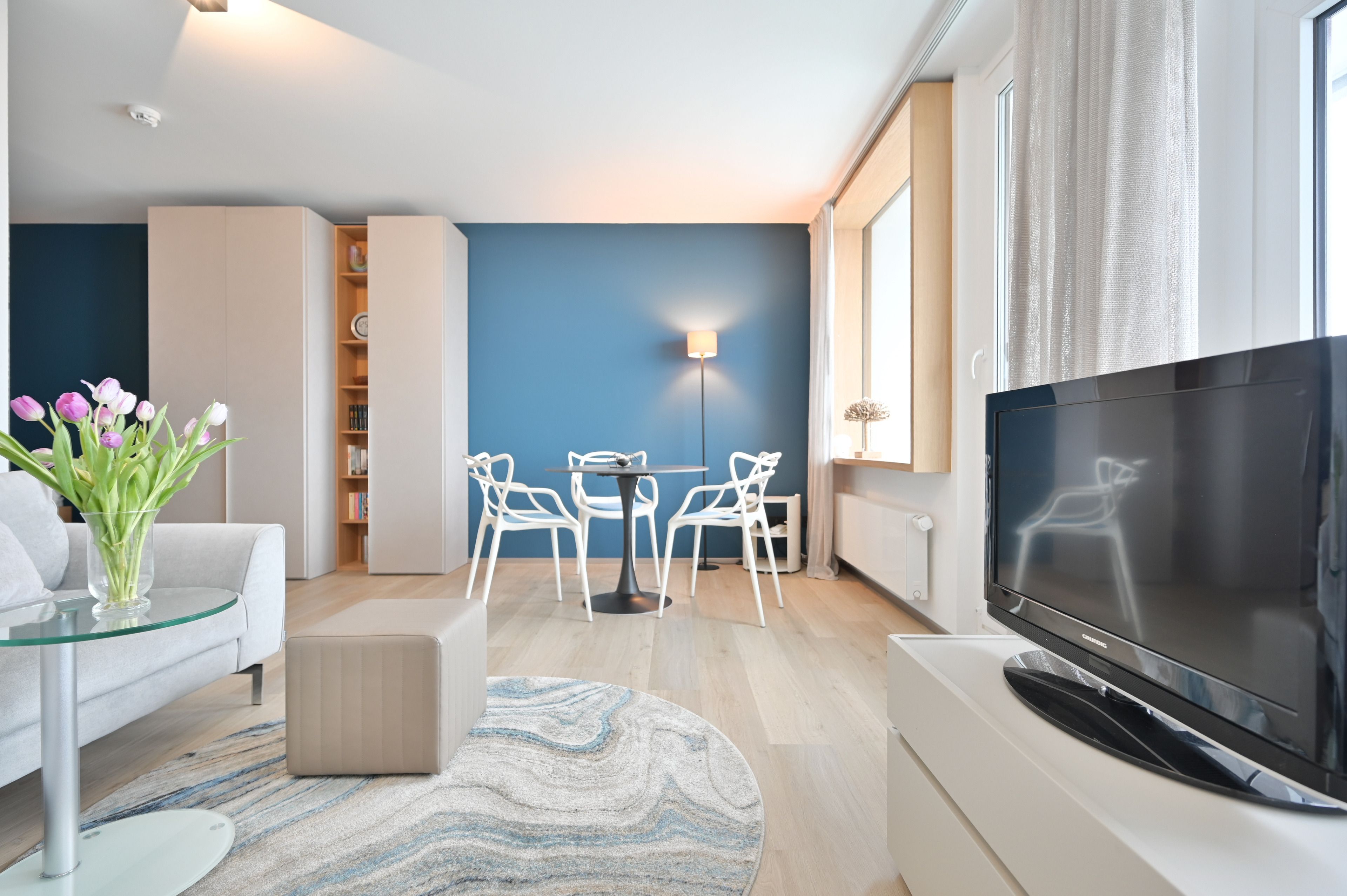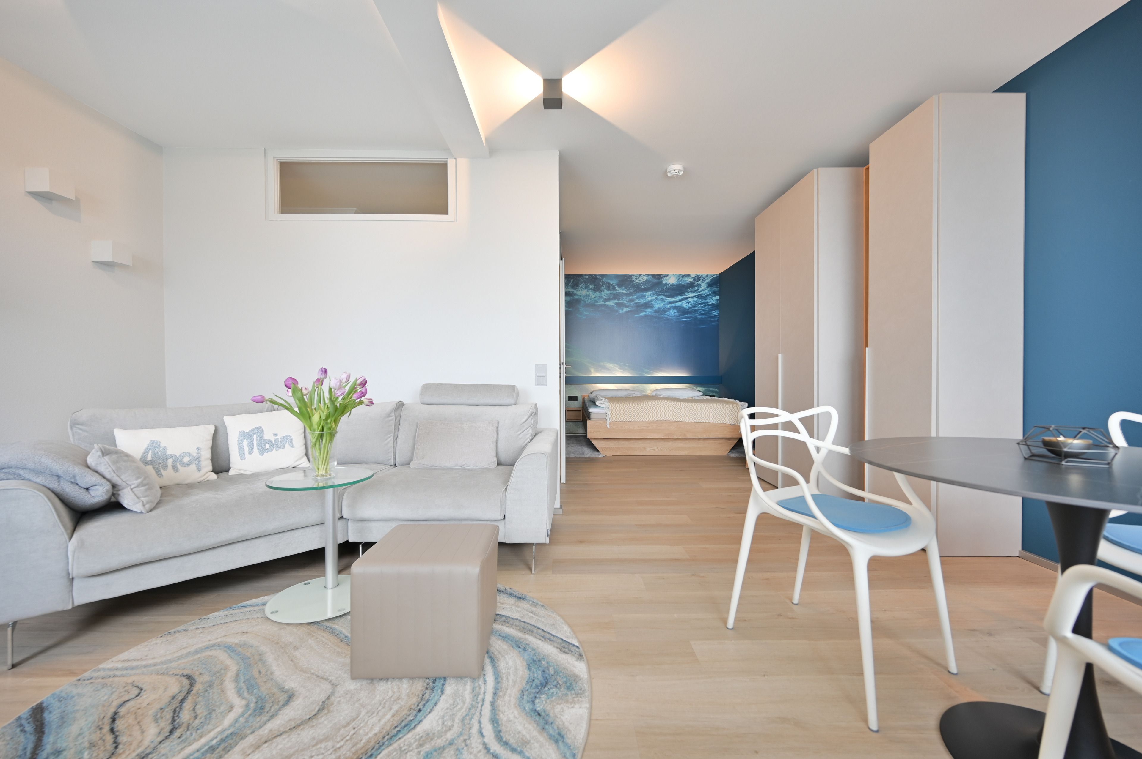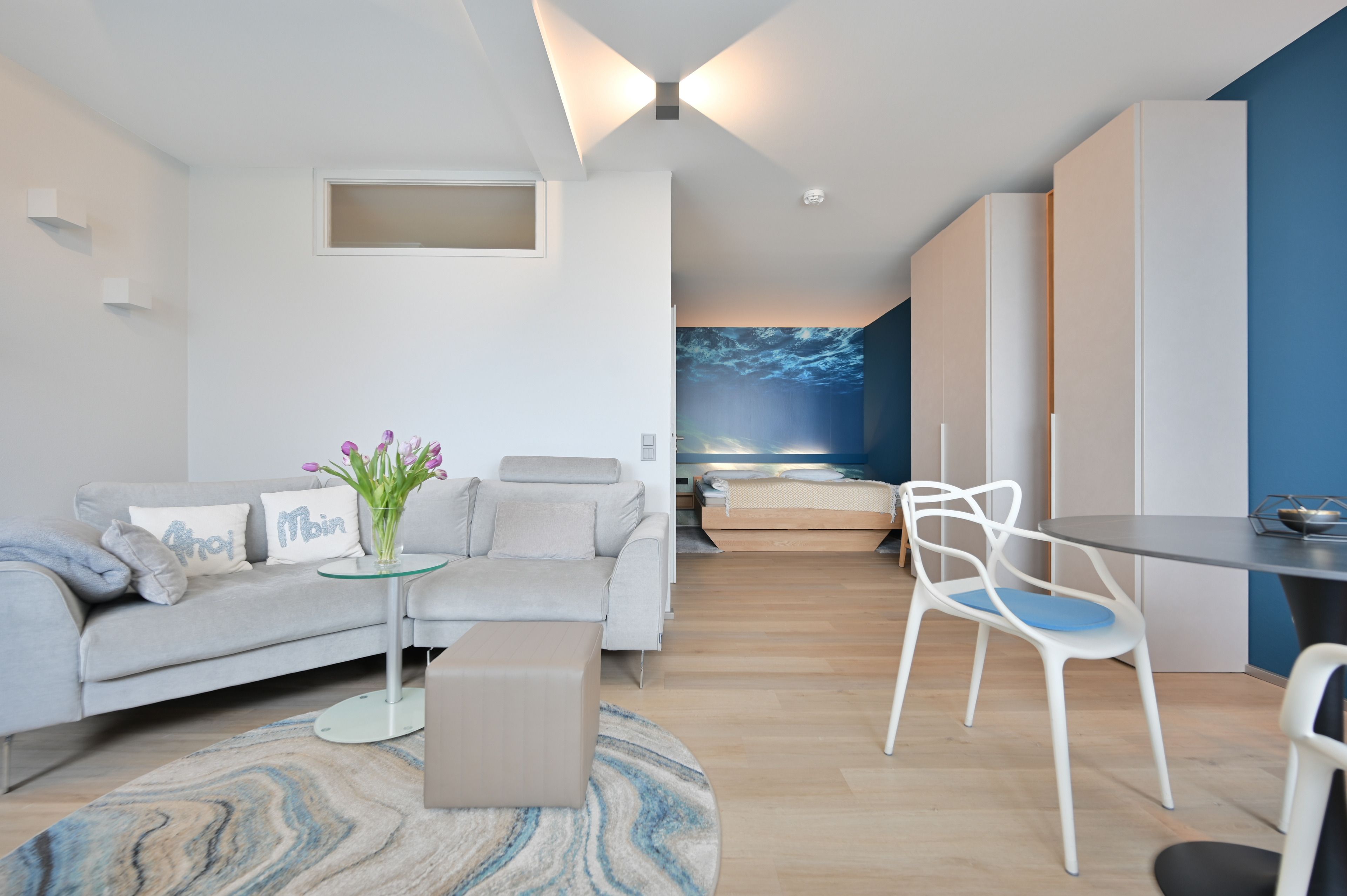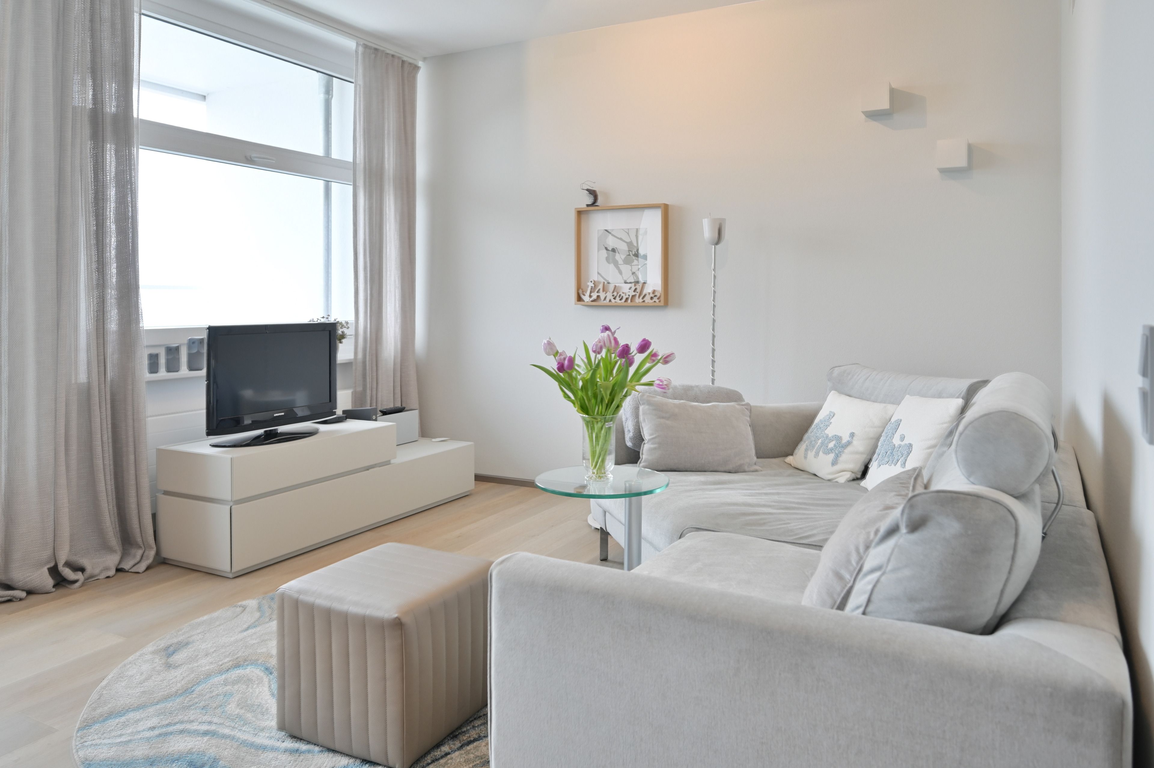 Vom Essplatz am Fenster aus haben Sie einen großartigem Blick auf Wasser und Wellen. Das großzügige, bequeme Sofa lädt Sie ein, sich gemütlich zurückzuziehen und mit einem Buch zu entspannen. Oder Sie lassen sich unterhalten: mit kostenlosem WLAN und 139 TV-Kanälen kommt auch bei schlechtem Wetter keine Langeweile auf. Ausserdem steht eine bluetoothfähige Kompaktanlage mit CD-Player für Sie bereit.