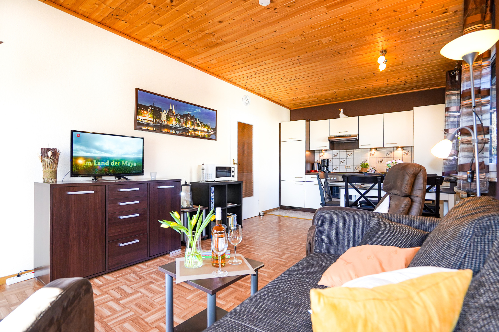 Ferienwohnung Lippek , Ihre 3-Zimmer-Ferienwohnung verfügt über ein Wohnzimmer mit offener Küche und einem angenehmen Essplatz, ein separates Schlafzimmer (Bettwäsche und Handtücher bringen Sie selbst mit oder buchen diese bequem gegen Aufpreise hinzu) und ein zweites Schlafzimmer mit Hochbetten. Mit 4 Personen haben Sie hier reichlich Platz.
