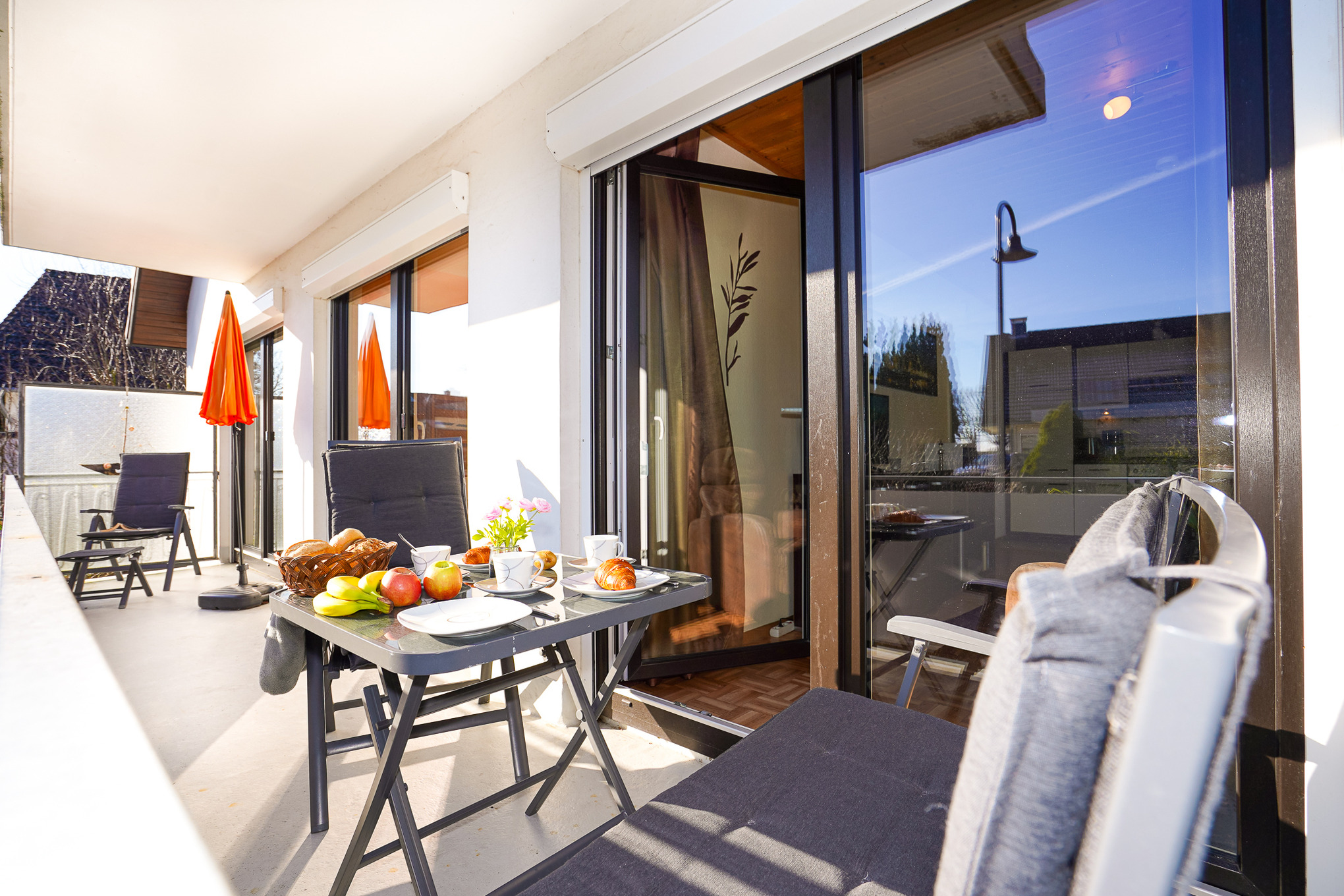 das Frühstück auf dem Balkon in der Morgensonne zu genießen...