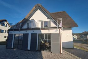 Für große oder befreundete Familien stehen die baugleichen Nachbarhäuser „Deich Frans, Deich Alma“ und Deich Michel ebenfalls zur Verfügung. Es besteht die Möglichkeit, die Terrassentrennwände zu demontieren und so benachbarte Terrassen gemeinsam zu nutzen.