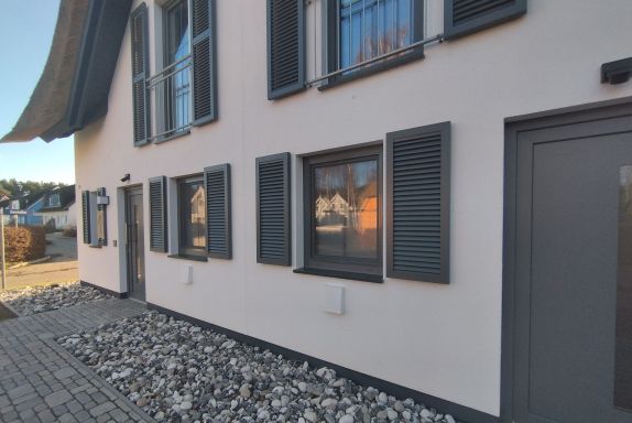 In 4 Schlafzimmern finden bis zu 8 Personen ein Plätzchen. 3 Bäder auf 3 Etagen garantieren, dass sowohl mehrere Paare als auch große Familien mit mehreren Generationen den gemeinsamen Urlaub und die Privatsphäre genießen können. Im barrierefreien EG befindet sich ein Schlafzimmer mit einem 140cm x 200cm großen Bett und angrenzendem Bad mit Dusche. Im 1. OG haben 2 Schlafzimmer mit jeweils einem Doppelbett (180 cm x 200 cm) Zugang zu einem großzügigen Wellnessbad mit Sauna und Dusche. Eines der Schlafzimmer hat einen direkten Zugang zu einer großzügigen Dachterrasse, von der man auf den Leuchtturm und den Bodden schauen kann - ideal für eine kurze Auszeit oder die Ruhephase zwischen den Saunagängen, welche man im Strandkorb dort genießen kann. Ein Schreibtisch sowie ein gemütlicher Ohrensessel im 1. OG bieten die Möglichkeit, sich zurückzuziehen - zum Arbeiten oder für eine Auszeit.