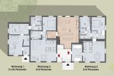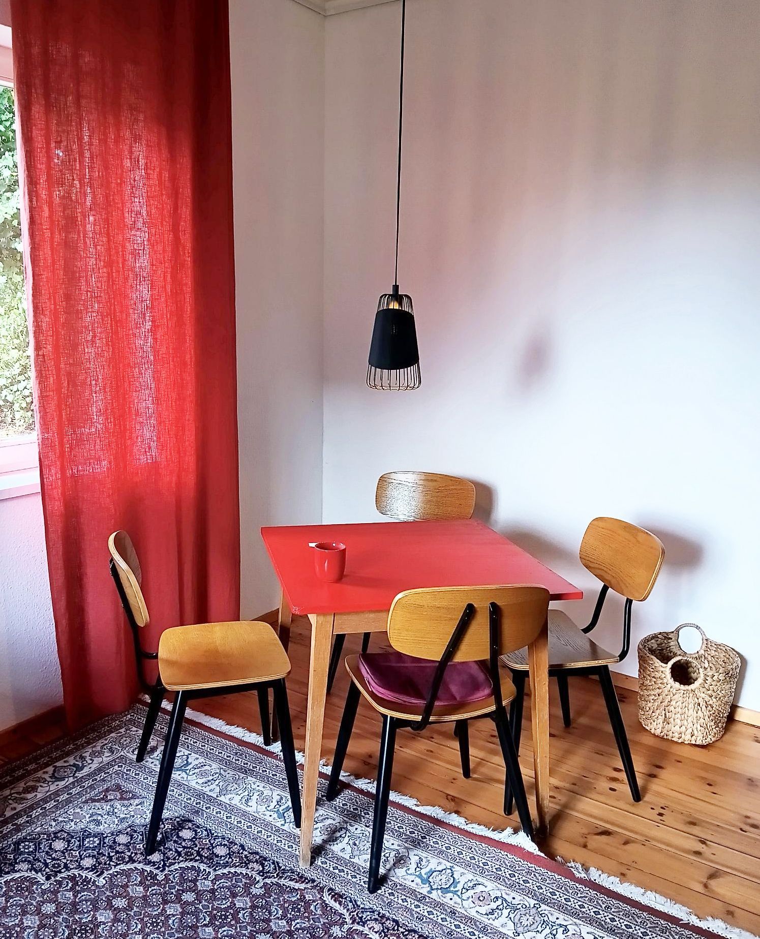 Eines der beiden Fachwerkhäuser wurde nun 2023 denkmalgerecht saniert – hier stehen nun drei schöne Ferienwohnungen zur Nutzung und Vermietung bereit. Zusätzlich gibt es einen Gemeinschaftsraum, der zum gemeinsamen Essen, Spielen oder Arbeiten genutzt werden kann. Letzteres seit kurzem sogar mit Glasfaseranschluss.