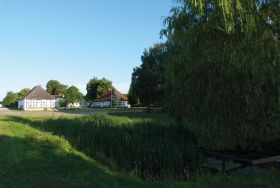 Das Gutshaus und die zwei Fachwerkhäuser stehen auf einem fußballfeldgroßen Grundstück im Ortszentrum von Schlatkow.