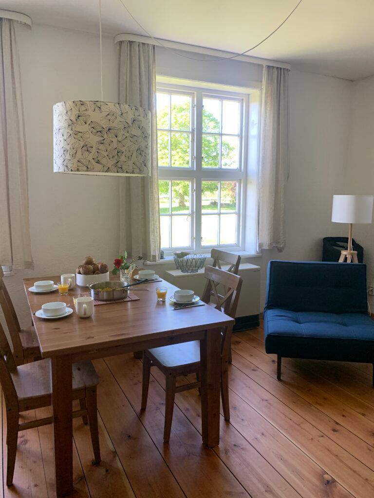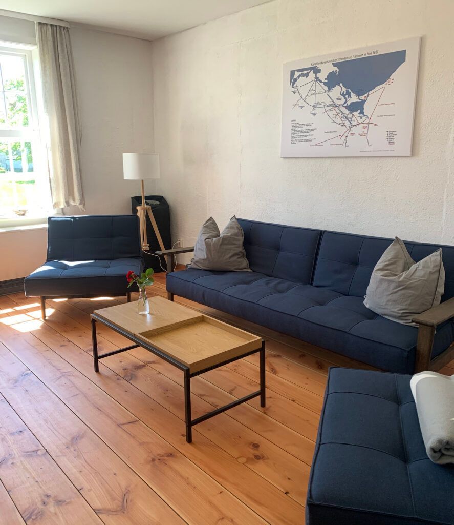Eines der beiden Fachwerkhäuser wurde nun 2023 denkmalgerecht saniert hier stehen nun drei schöne Ferienwohnungen zur Nutzung und Vermietung bereit. Zusätzlich gibt es einen Gemeinschaftsraum, der zum gemeinsamen Essen, Spielen oder Arbeiten genutzt werden kann. Letzteres seit kurzem sogar mit Glasfaseranschluss.