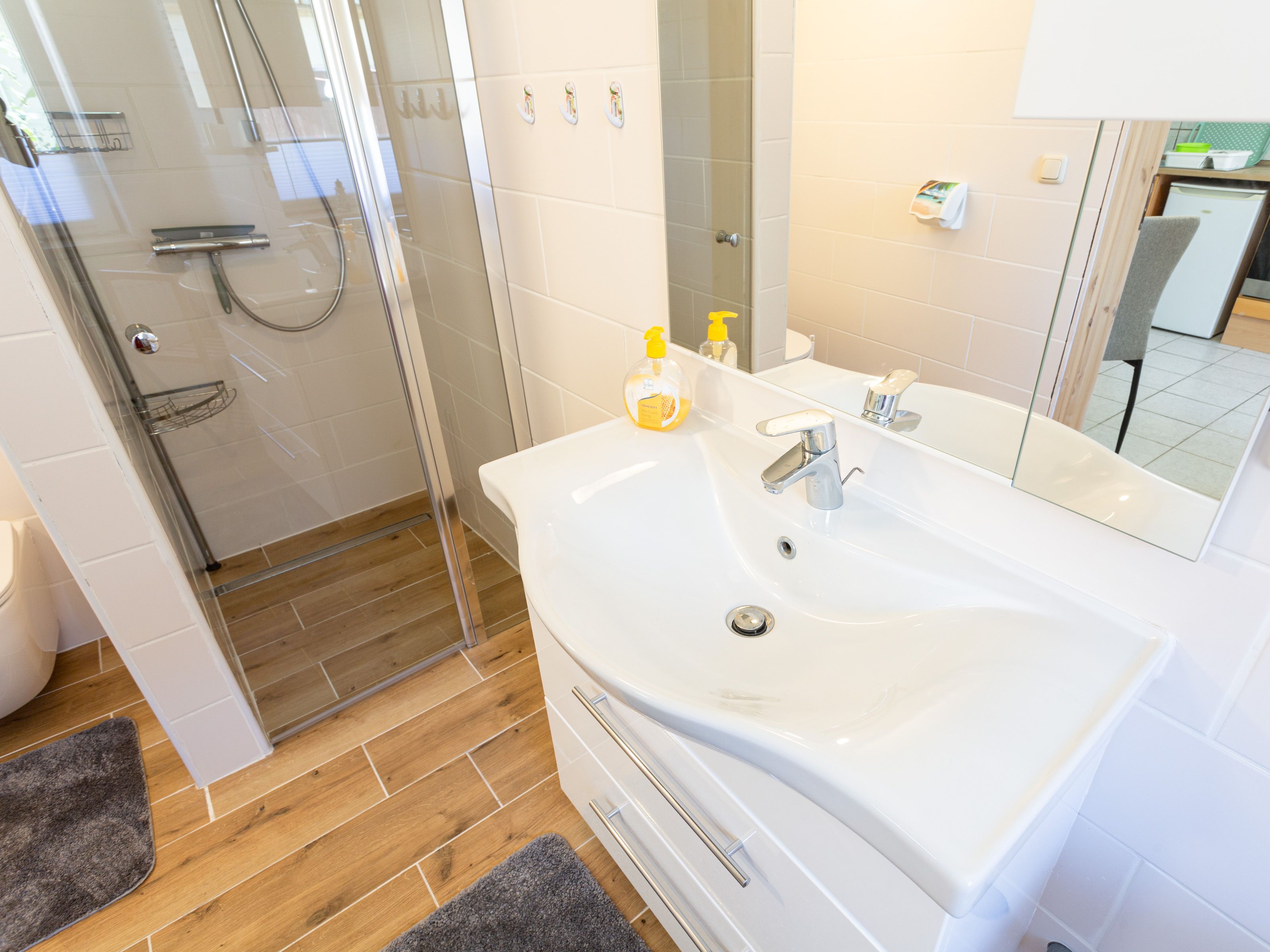 Die Ferienwohnung Erdgeschoss an der Marina in Kröslin bietet auf 60 m² viel Platz für 2 Personen. In dieser gemütlichen Wohnung erwartet dich ein Schlafzimmer mit einem bequemen Doppelbett (140x200) und einem Kleiderschrank, in dem du deine Sachen ordentlich verstauen kannst. Das Wohnzimmer ist mit einem gemütlichen Sofa ausgestattet, auf dem du nach einem erlebnisreichen Tag vor dem Fernseher entspannen kannst. Die separate Küche ist vollständig ausgestattet und bietet alles, was du für eine unkomplizierte Selbstverpflegung benötigst: Backofen mit Herd, Kaffeemaschine, Mikrowelle, Toaster und einen Wasserkocher sowie Küchenutensilien des täglichen Bedarfs. Der Esstisch lädt zu gemeinsamen Mahlzeiten ein und als besonderes Highlight gibt es in der Küche einen gemütlichen Holzofenherd, der für eine besonders heimelige Atmosphäre sorgt. Das Bad ist modern gestaltet und bietet eine ebenerdige Dusche sowie ein WC. Im Innenhof findest du eine Terrasse mit Sitzgelegenheiten. Hier kannst du die frische Luft genießen und bei einem Glas Wein den Tag ausklingen lassen.