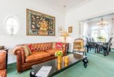 Das elegante Wohnzimmer lädt mit seinem Wintergarten und dem gemütlichen Kamin zu entspannten Stunden ein. Für Unterhaltung sorgen ein moderner TV und eine hochwertige B&O Stereoanlage. Hier können Sie sich nach einem Tag voller Erlebnisse zurückziehen, die Füße hochlegen und den Abend bei knisterndem Kaminfeuer ausklingen lassen. Der Wintergarten sorgt zudem für viel Licht und bietet einen herrlichen Blick ins Grüne.