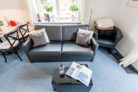 Ein besonderes Highlight dieser Ferienwohnung ist der sonnige Platz vor dem Haus, der mit einem Strandkorb ausgestattet ist. Hier können Sie bei schönem Wetter die frische Nordseeluft genießen, sich entspannen und den Tag Revue passieren lassen.