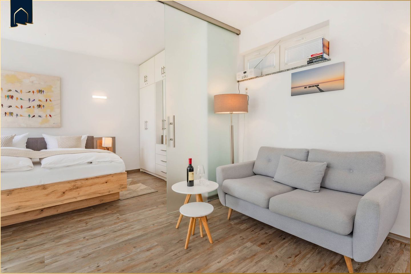 Diese charmante Ferienwohnung bietet auf 46 m² alles, was Sie für einen erholsamen Urlaub zu zweit brauchen. Die Unterkunft liegt in einem idyllischen Dorf, nur 350 m vom nächsten See entfernt – perfekt für alle, die Natur, Ruhe und Wassernähe suchen. Die Wohnung verfügt über ein Schlafzimmer mit komfortabler Schlafmöglichkeit, ein modernes Bad mit Dusche und ein gemütliches Wohnzimmer mit Sofaecke und TV. Das Highlight: eine schöne Terrasse mit Gartenblick und bequemen Gartenmöbeln – hier beginnt jeder Morgen mit frischer Landluft und Haffblick.
