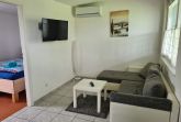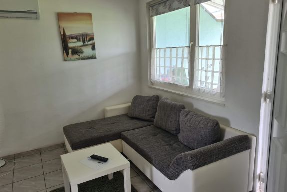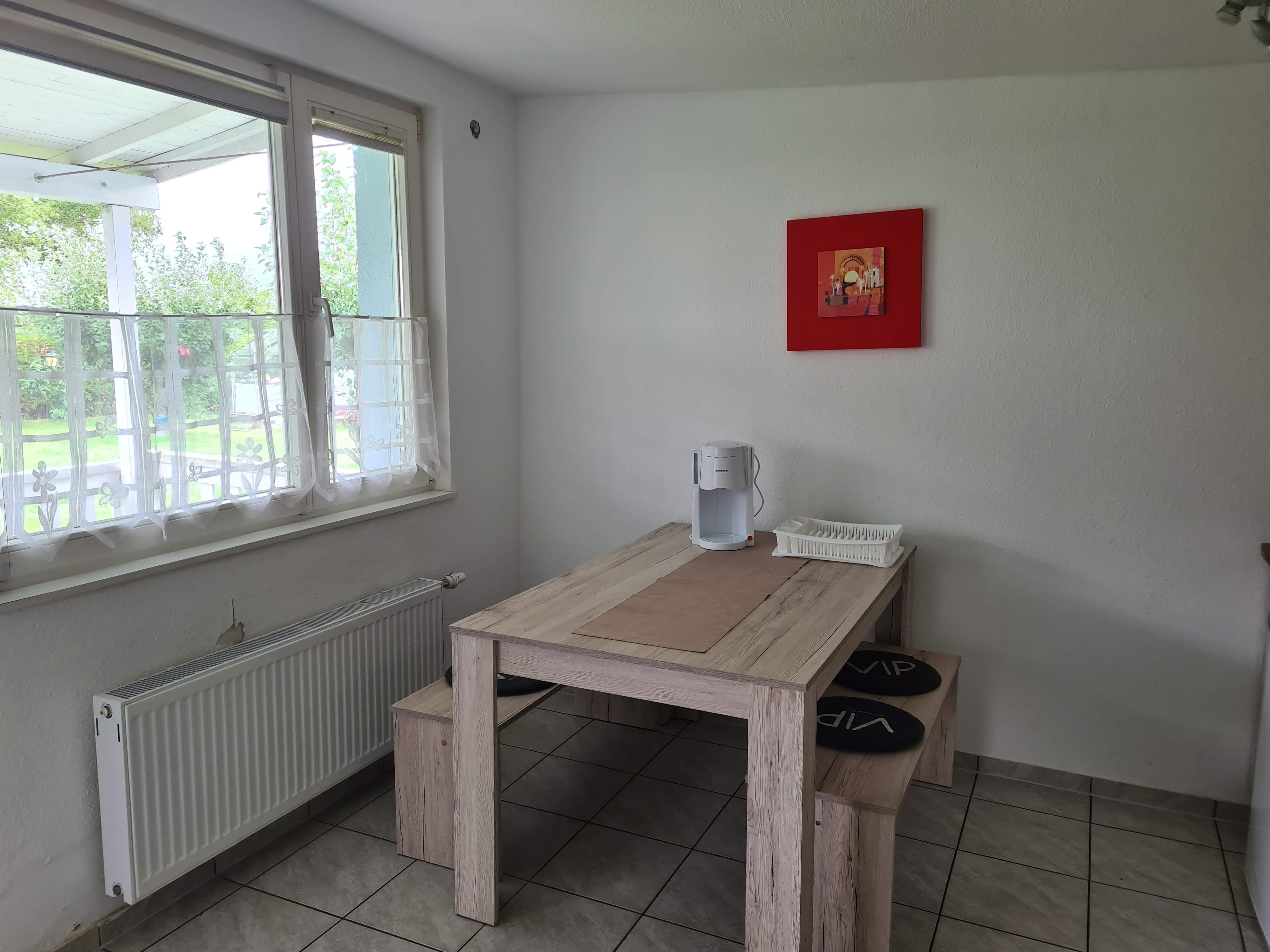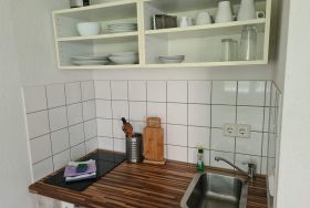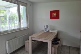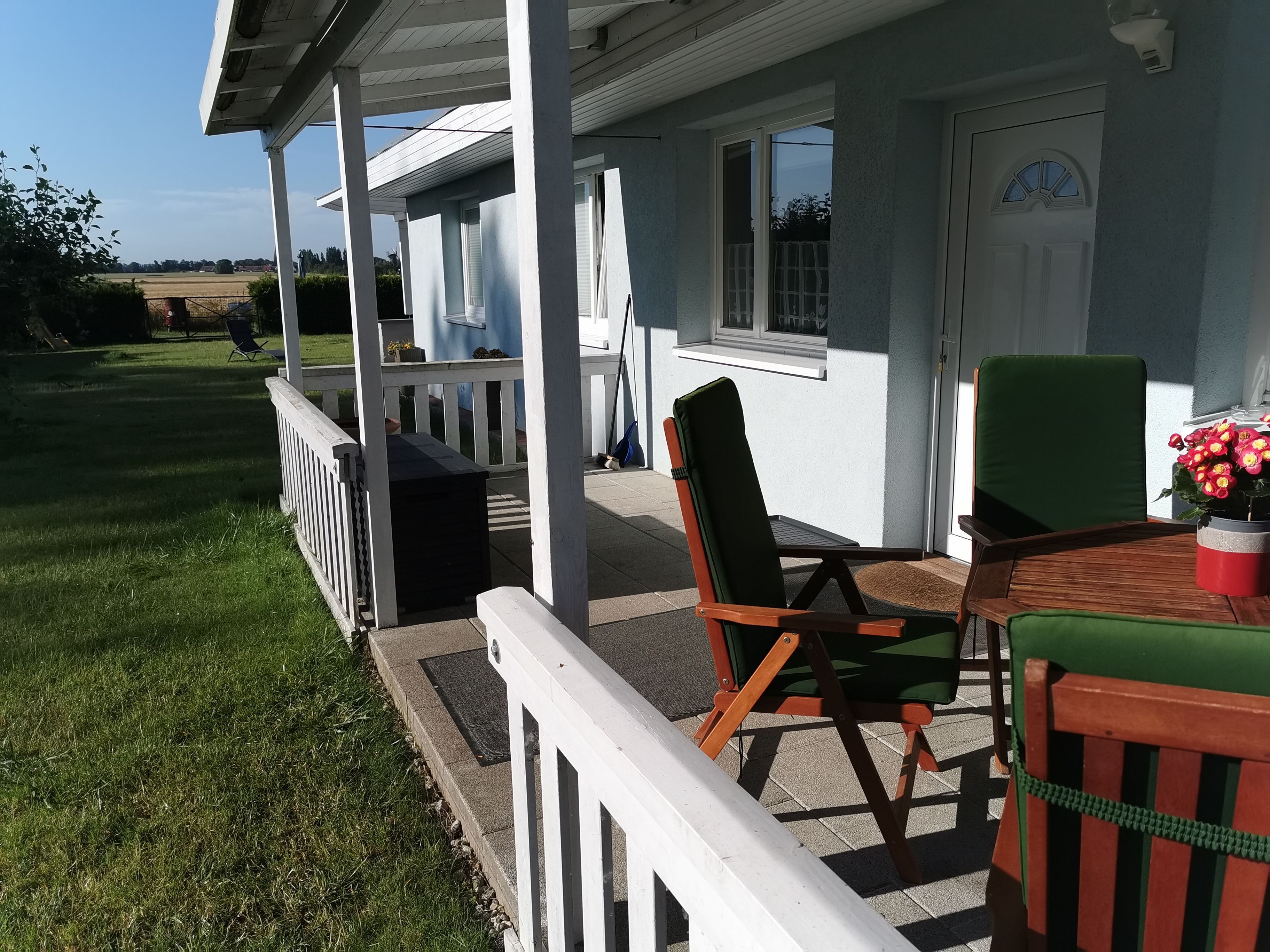 In der Ferienwohnung befindet sich ein großer Wohnbereich mit Küche und einem separaten Schlafzimmer. In der bestens ausgestatteten Küche können Sie einfach und schnell ihr Lieblingsessen zaubern. Die hochwertigen Geräte in der Küche erledigen die alltäglichen Aufgaben für Sie. Das moderne Bad ist mit einer Dusche, WC und Waschbecken ausgestattet. Vom Wohnzimmer aus kommen Sie auf die überdachte Terrasse mit einem Strandkorb und einer schönen Sitzecke mit dem Blick in den Garten.