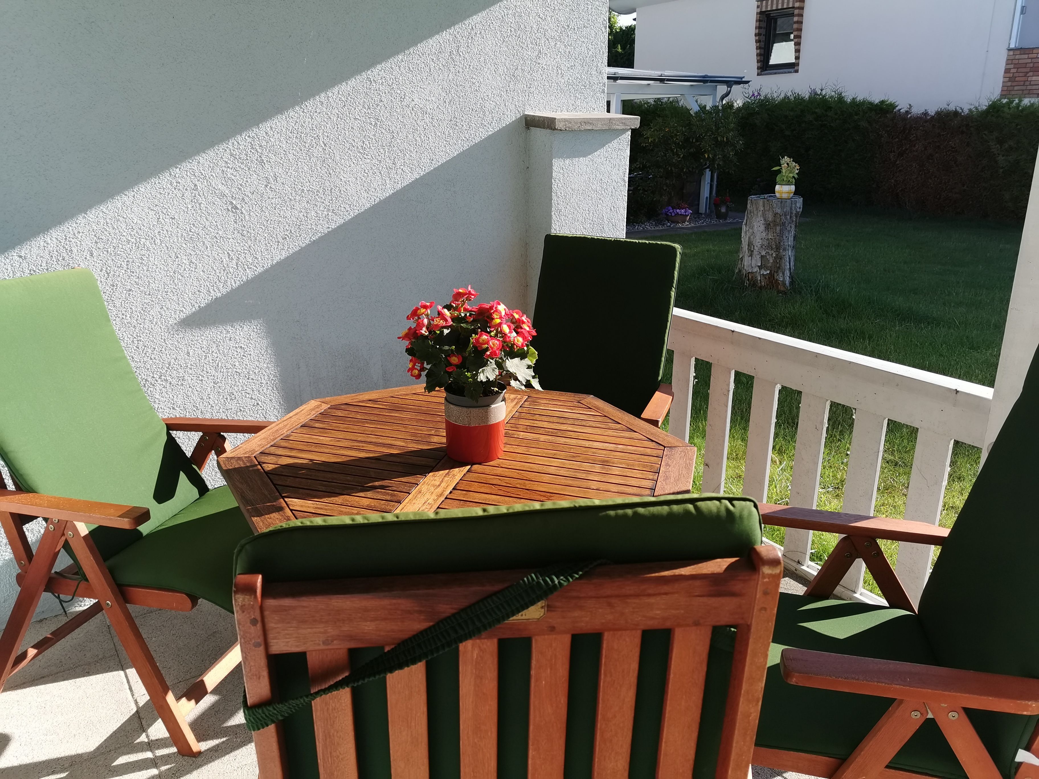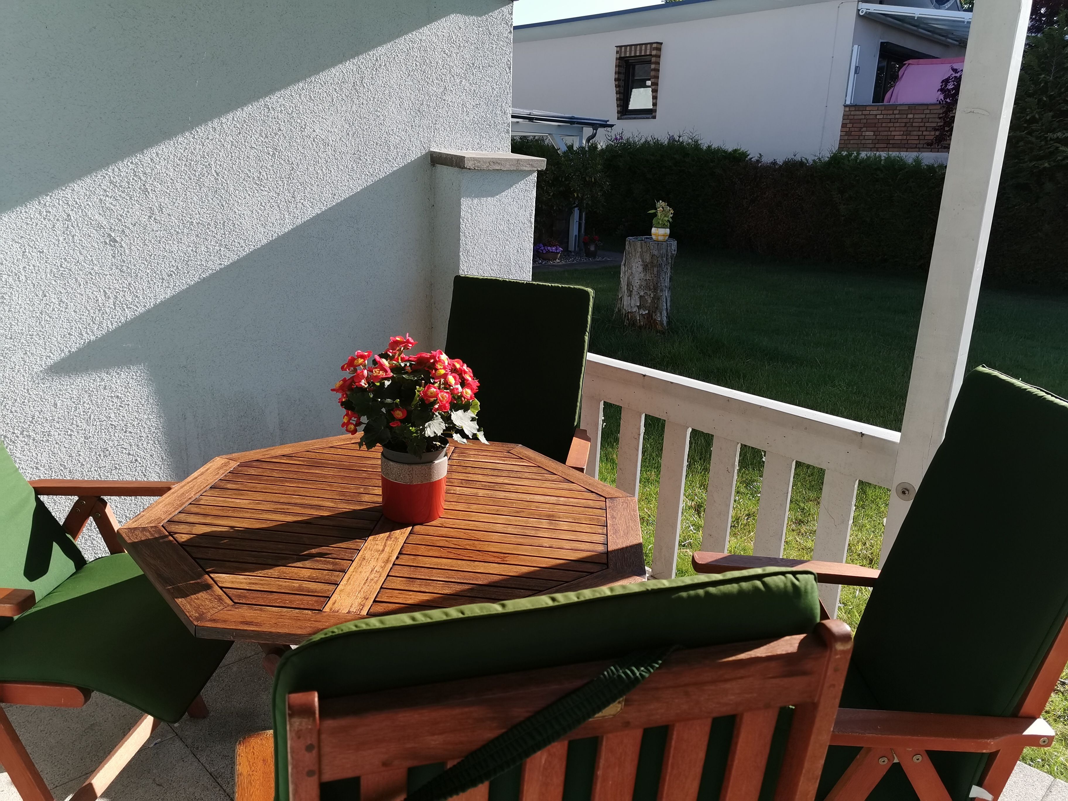 In der Ferienwohnung befindet sich ein großer Wohnbereich mit Küche und einem separaten Schlafzimmer. In der bestens ausgestatteten Küche können Sie einfach und schnell ihr Lieblingsessen zaubern. Die hochwertigen Geräte in der Küche erledigen die alltäglichen Aufgaben für Sie. Das moderne Bad ist mit einer Fußbodenheizung, Dusche, WC und Waschbecken ausgestattet. Vom Wohnzimmer aus kommen Sie auf die überdachte Terrasse mit einem Strandkorb und einer schönen Sitzecke mit dem Blick in den Garten.