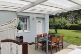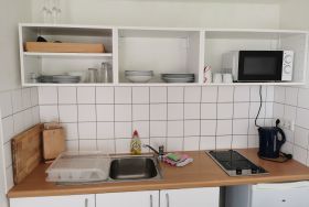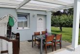 In der Ferienwohnung befindet sich ein großer Wohnbereich mit Küche und 2 separaten Schlafzimmern. In der bestens ausgestatteten Küche können Sie einfach und schnell ihr Lieblingsessen zaubern. Die hochwertigen Geräte in der Küche erledigen die alltäglichen Aufgaben für Sie. Das moderne Bad ist mit einer Fußbodenheizung, Dusche, WC und Waschbecken ausgestattet. Das Sofa in der Ferienwohnung ist besonders gemütlich und bietet Platz für alle. Vom Wohnzimmer aus kommen Sie auf die große überdachte Terrasse mit einem Strandkorb und einer schönen Sitzecke mit dem Blick in den Garten und auf die Mühle in der weiten Ferne.
