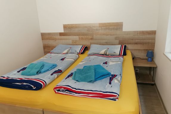 Das Doppelzimmer ist ausgestattet mit einem großen Doppelbett. Dieses Doppelbett kann man auch trennen und zwei Einzelbetten nutzen.