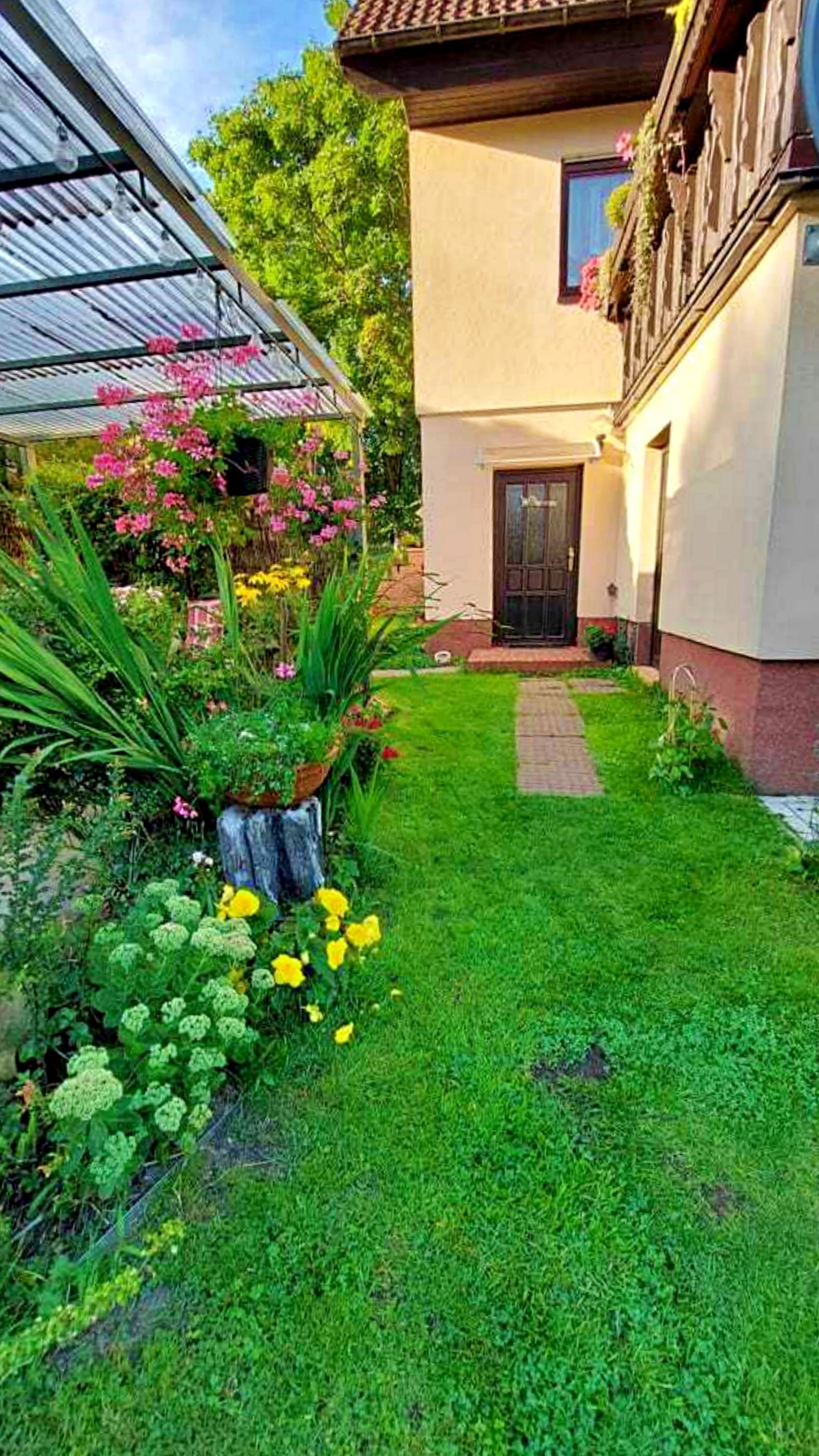 Herzlich Willkommen! Unser gemütliches Einfamilienhaus befindet sich an der B 110, nur etwa 5 bis 7 Gehminuten vom feinen weißen Sandstrand entfernt. In unmittelbarer Nähe finden Sie zahlreiche Einkaufsmöglichkeiten sowie Bushaltestellen, die Ihnen die Anreise erleichtern. Besonders angenehm: Die Quartiere sind nicht zur Straßenseite ausgerichtet, sodass Sie den wunderbaren Blick in unseren gepflegten Garten genießen können. In nur etwa 10 Gehminuten erreichen Sie die Seebrücke, von der aus sich ein wunderschöner Spaziergang entlang der Promenade anbietet. Für Ihre täglichen Besorgungen stehen Ihnen die Supermärkte Aldi und Edeka in Heringsdorf zur Verfügung - ebenfalls nur einen kurzen Fußweg entfernt. Für unsere Radfahrer haben wir zudem einen Fahrradständer im Freien bereitgestellt.