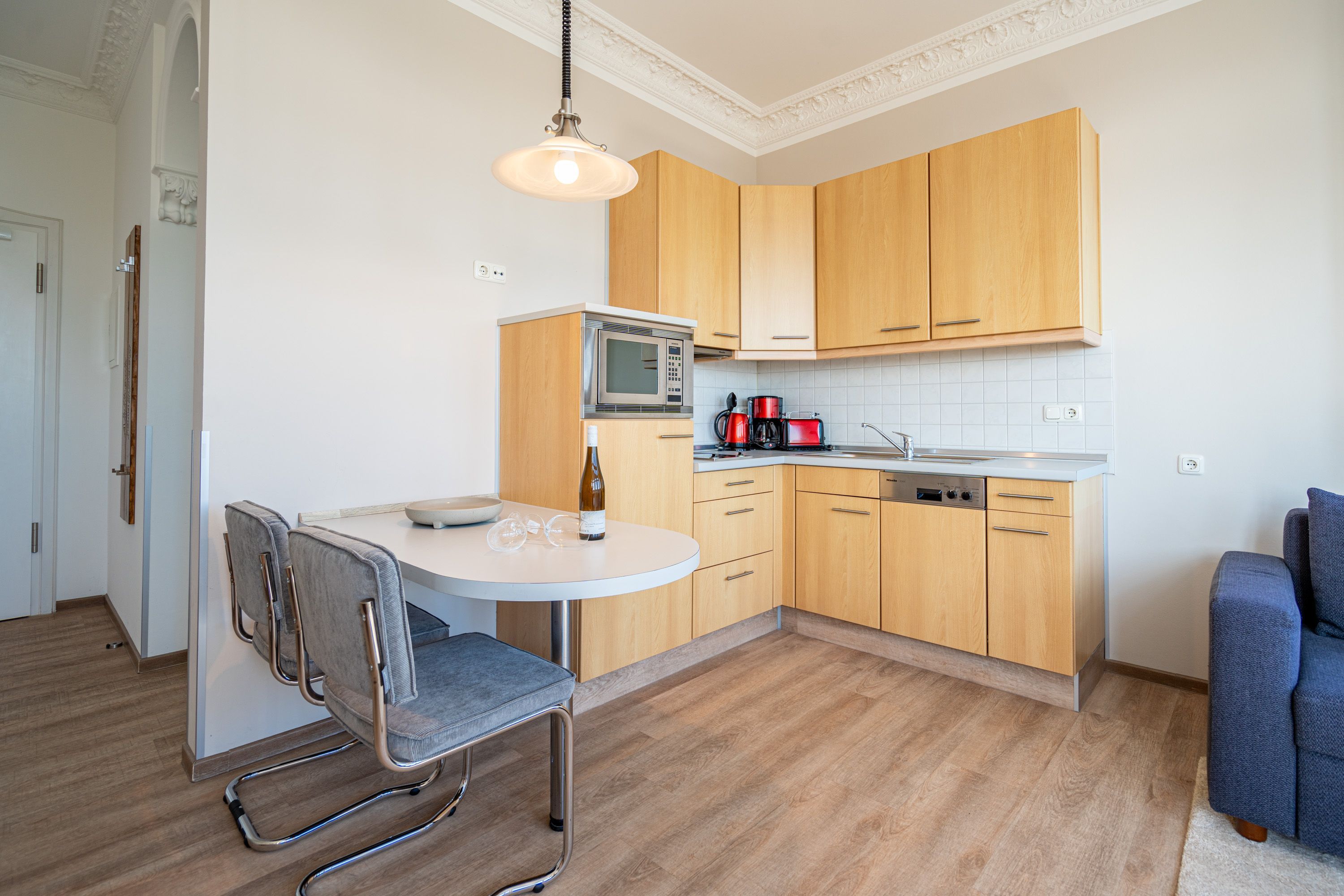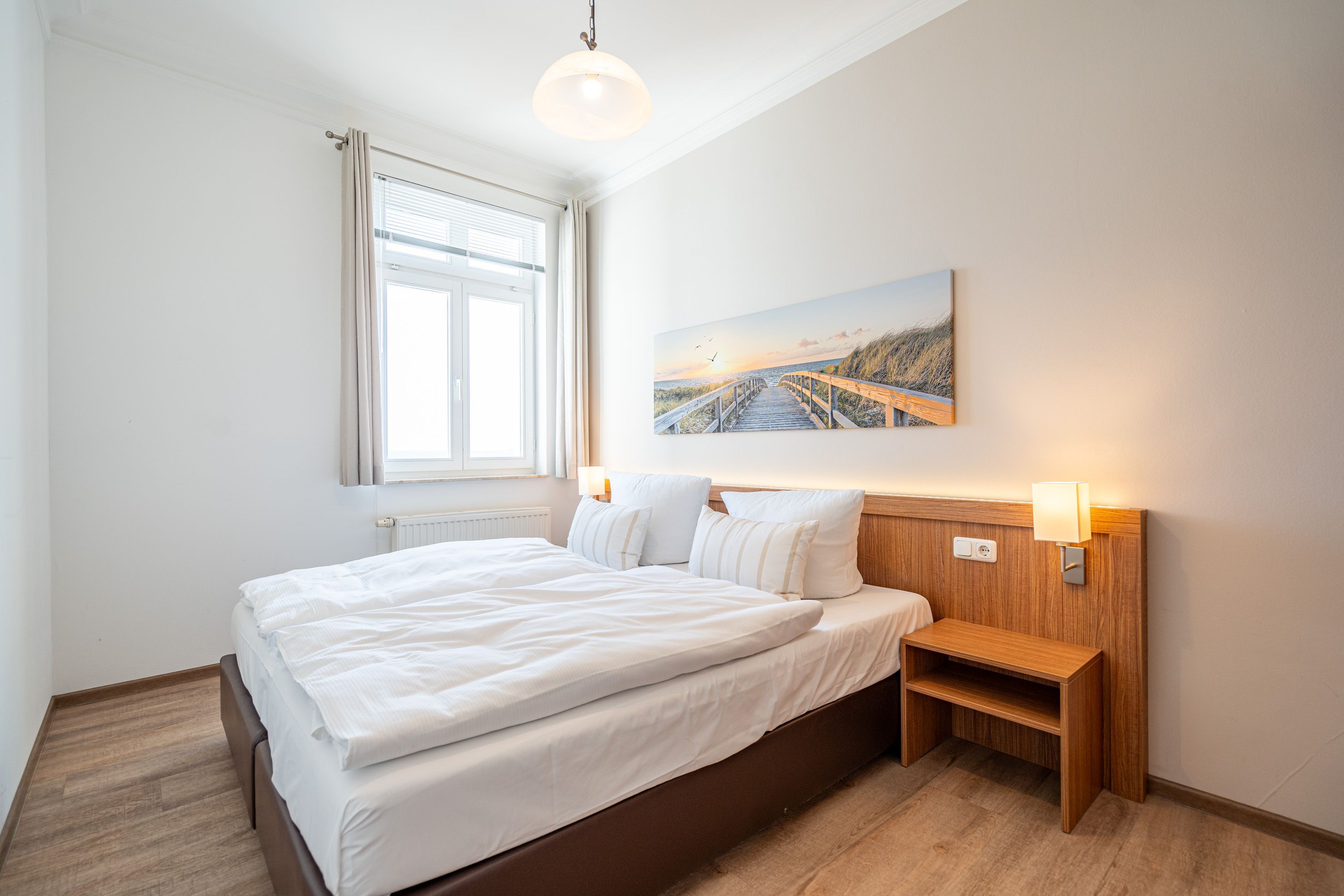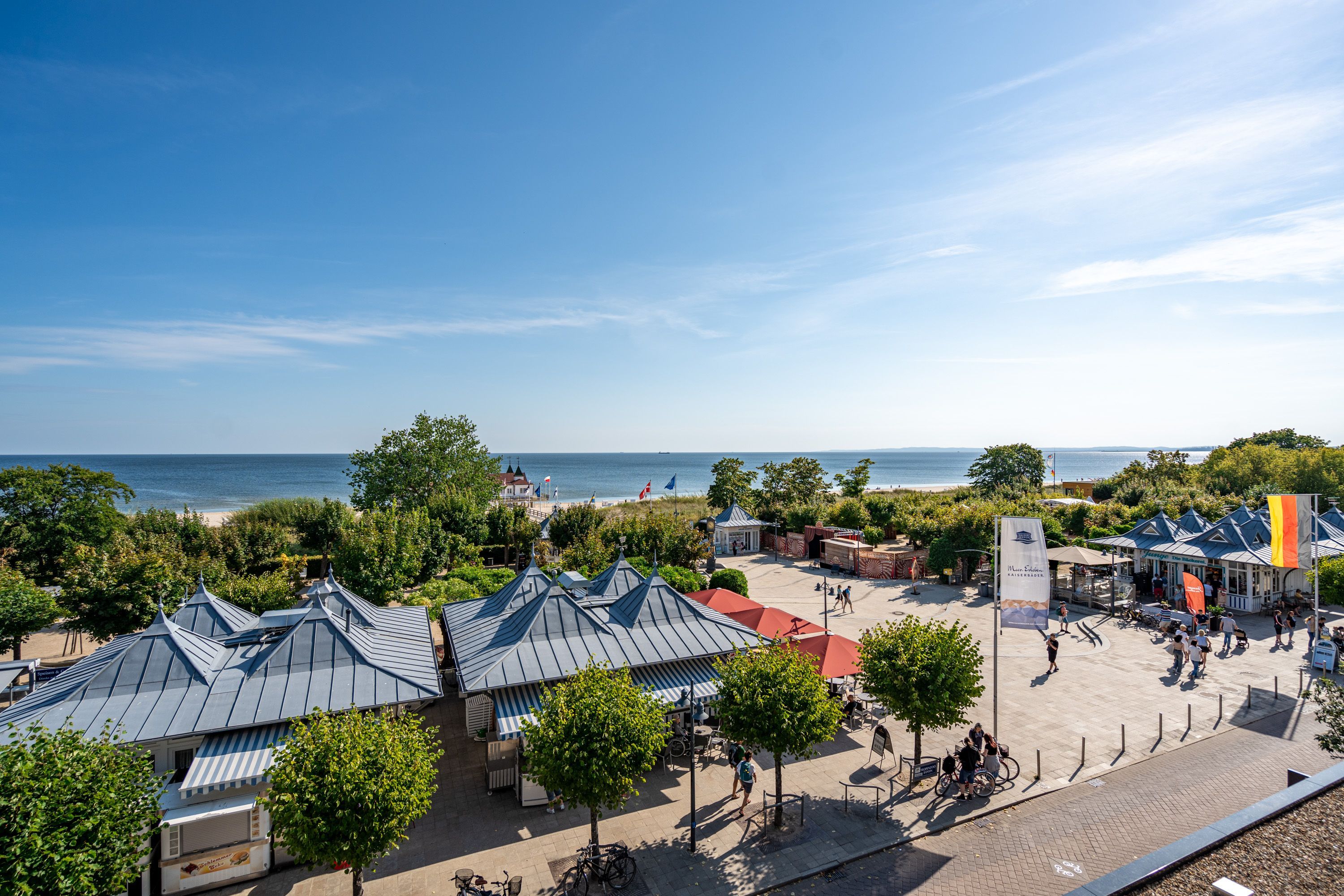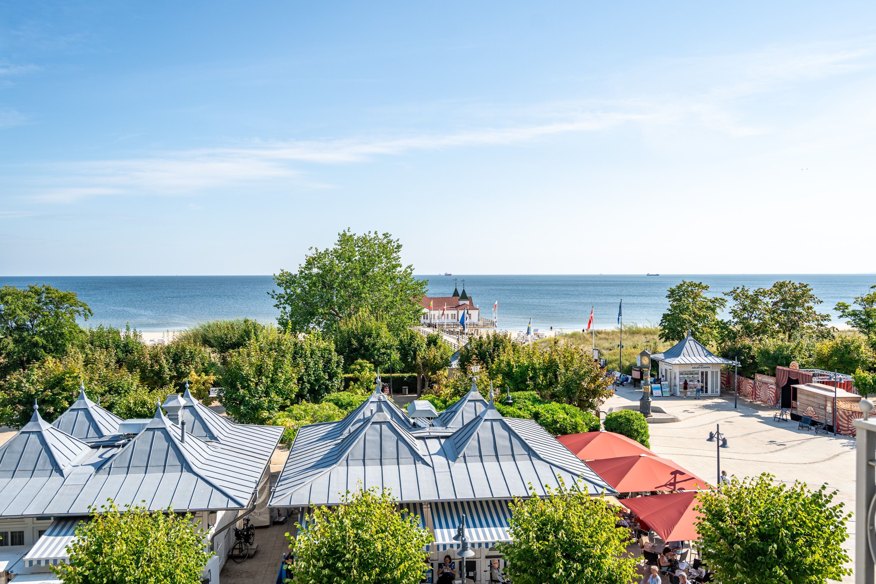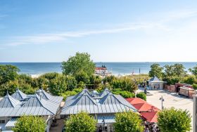 Die Villa Seedüwel - als Nachbarhaus der Strandterrasse, besticht durch ihre einmalige Lage direkt an der Ahlbecker Seebrücke, der belebten Promenade sowie der historischen Konzertmuschel, einem beliebten Treffpunkt für Kunst und Kultur. Dieses Objekt bietet insgesamt 13 Ferienwohnungen mit einem, zwei oder drei Räumen. Einige der Apartments bieten einen spektakulären Ausblick auf die historische Seebrücke und die Ostsee. Für Ihren PKW steht ein Stellplatz in der Tiefgarage des benachbarten Hauses Strandterrasse zur Verfügung (Zufahrt über Kurstraße), von der Sie direkten Zugang zur Villa haben. Ein Fahrstuhl im Haus ist über einige Stufen im Flur erreichbar. Die Villa ist komplett mit kostenfreiem WLAN ausgestattet. Zudem gibt es einen gemeinschaftlichen Fahrradkeller für die sichere Aufbewahrung Ihrer Fahrräder. Der feinsandige, weiße Strand und das Meer liegen nur wenige Schritte entfernt. Die attraktive Lage bietet Ihnen eine Vielzahl an Restaurants, Cafés und Einkaufsmöglichkeiten (unter anderem im Erdgeschoss des Hauses) sowie das charmante Ambiente von Ahlbeck.