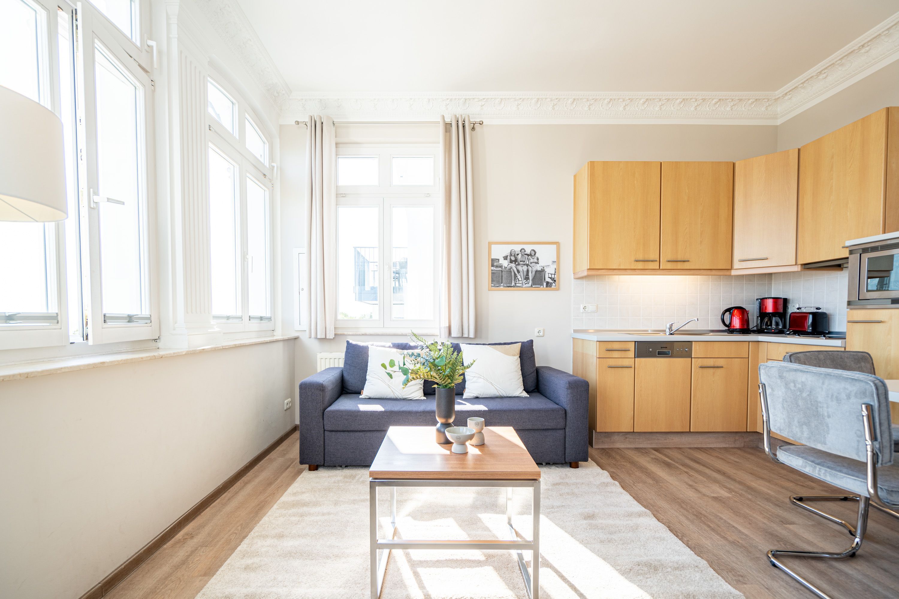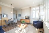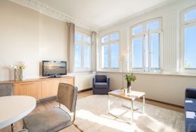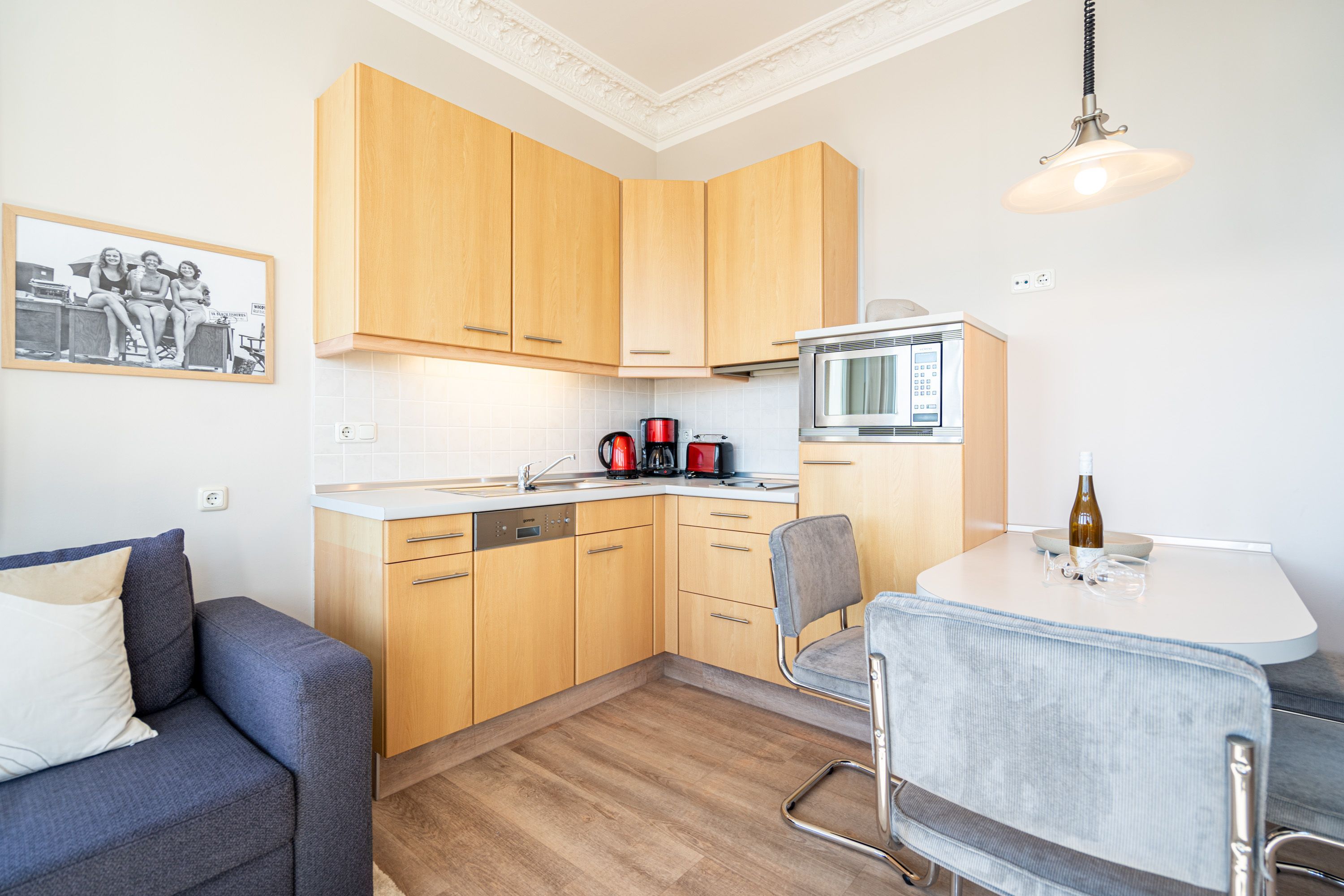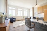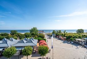 Die Villa Seedüwel - als Nachbarhaus der Strandterrasse, besticht durch ihre einmalige Lage direkt an der Ahlbecker Seebrücke, der belebten Promenade sowie der historischen Konzertmuschel, einem beliebten Treffpunkt für Kunst und Kultur. Dieses Objekt bietet insgesamt 13 Ferienwohnungen mit einem, zwei oder drei Räumen. Einige der Apartments bieten einen spektakulären Ausblick auf die historische Seebrücke und die Ostsee. Für Ihren PKW steht ein Stellplatz in der Tiefgarage des benachbarten Hauses Strandterrasse zur Verfügung (Zufahrt über Kurstraße), von der Sie direkten Zugang zur Villa haben. Ein Fahrstuhl im Haus ist über einige Stufen im Flur erreichbar. Die Villa ist komplett mit kostenfreiem WLAN ausgestattet. Zudem gibt es einen gemeinschaftlichen Fahrradkeller für die sichere Aufbewahrung Ihrer Fahrräder. Der feinsandige, weiße Strand und das Meer liegen nur wenige Schritte entfernt. Die attraktive Lage bietet Ihnen eine Vielzahl an Restaurants, Cafés und Einkaufsmöglichkeiten (unter anderem im Erdgeschoss des Hauses) sowie das charmante Ambiente von Ahlbeck.