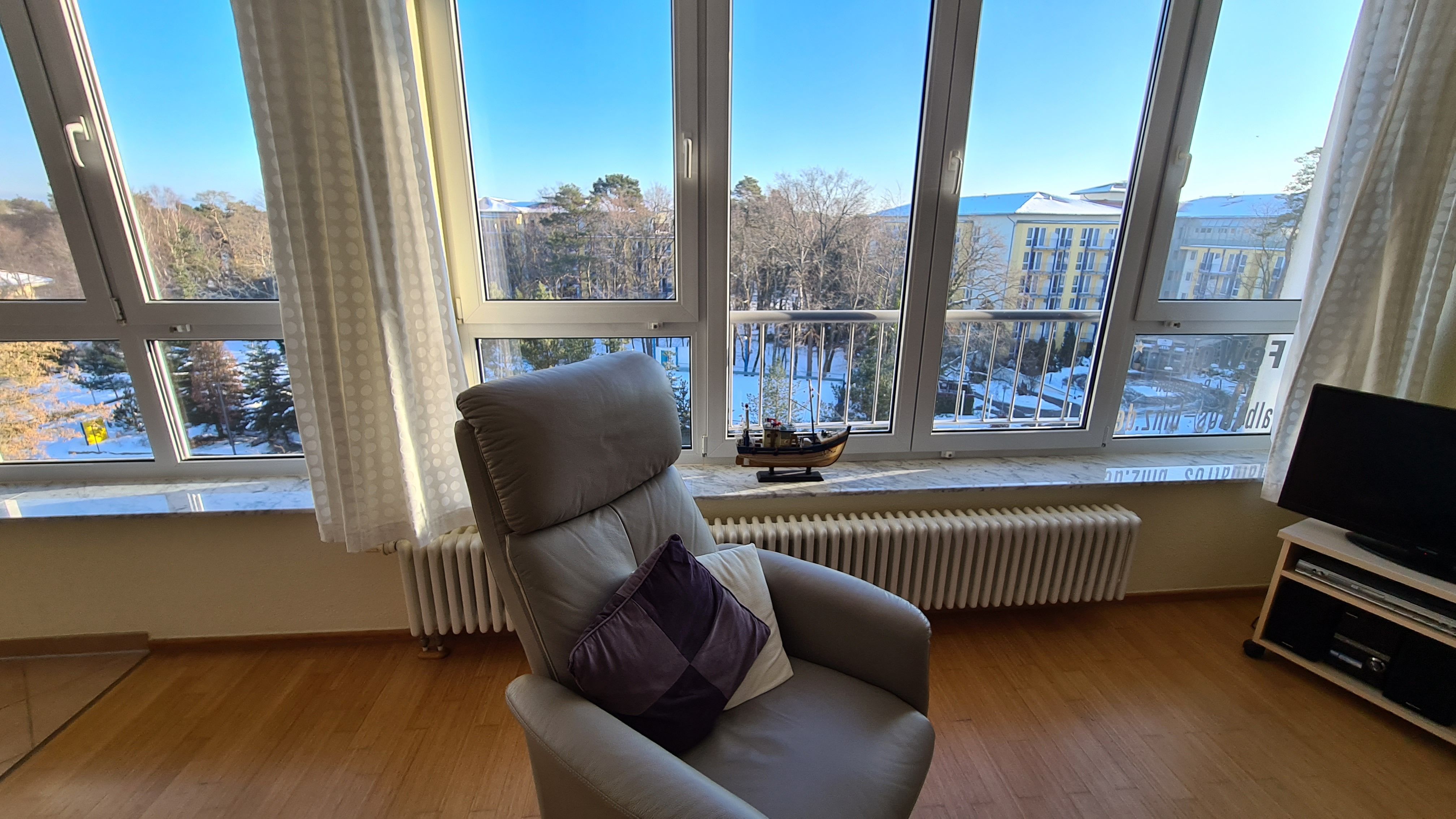 Das Appartement ist im Penthousestil gebaut. An heißen Tagen können Sie die großen Fenster auf der Meerseite öffnen und in der Nachmittagssonne den Balkon nutzen. An kühleren Tagen ermöglicht Ihnen die große Fensterfront die Sicht vom Warmen aus. Für eine Belegung mit 4 Personen wird eine Schlafgelegenheit im Wohnraum angeboten.