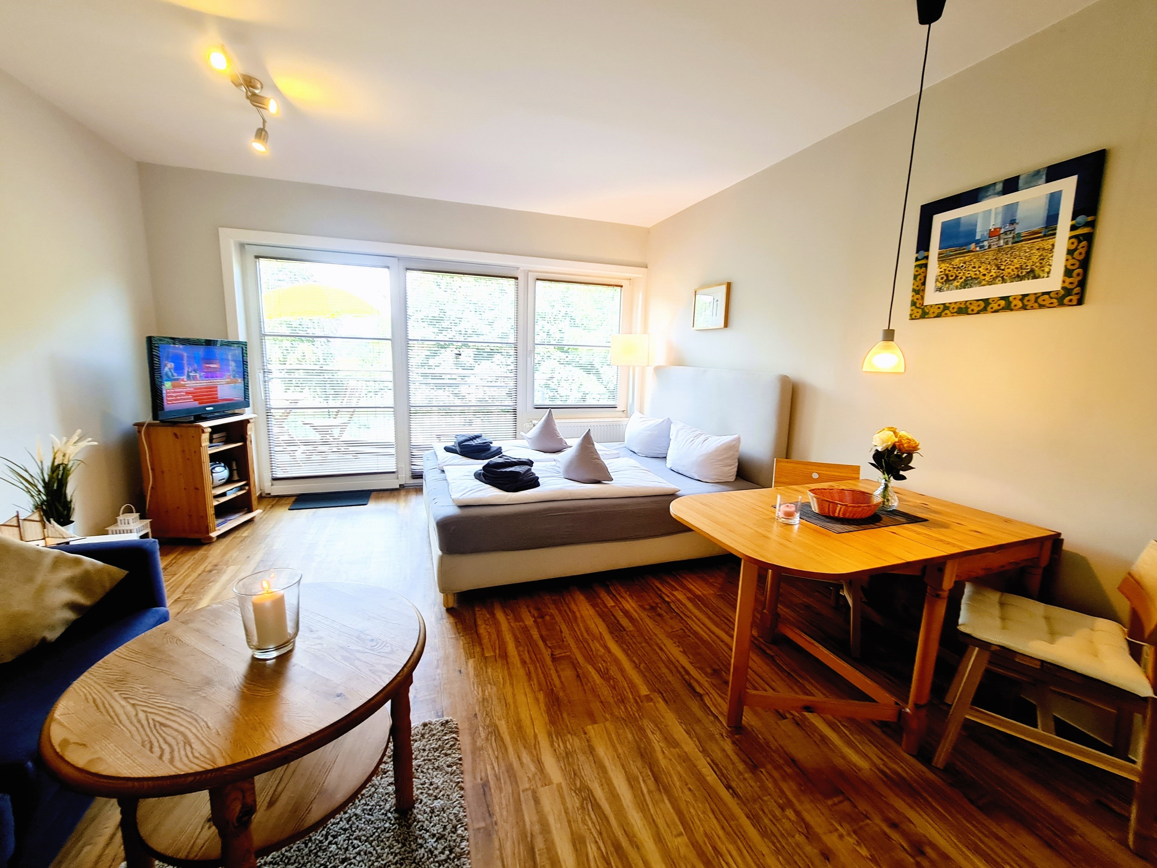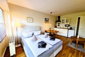 Die kleine aber feine Ferienwohnung bietet Platz für 2 Personen. Ein kostenloser Stellplatz für Ihr Auto so wie ein kleiner Balkon gehören mit dazu.