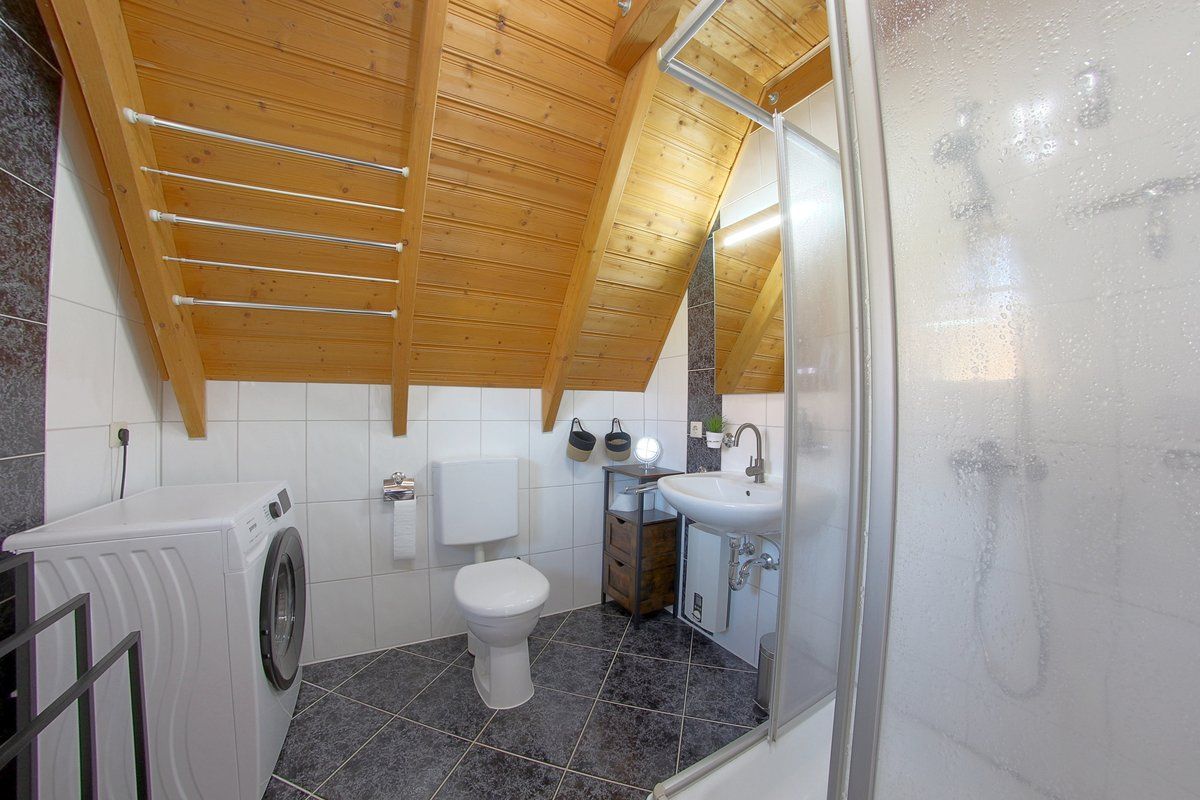 Im Obergeschoß gibt es 2 weitere Schlafzimmer, eins mit Doppelbett und TV und eins mit 2 Einzelbetten. Babyreisebtt und Hochstuhl für die kleinen Gäste sind ebenfalls im Haus. Kostenloses W-LAN ist vorhanden