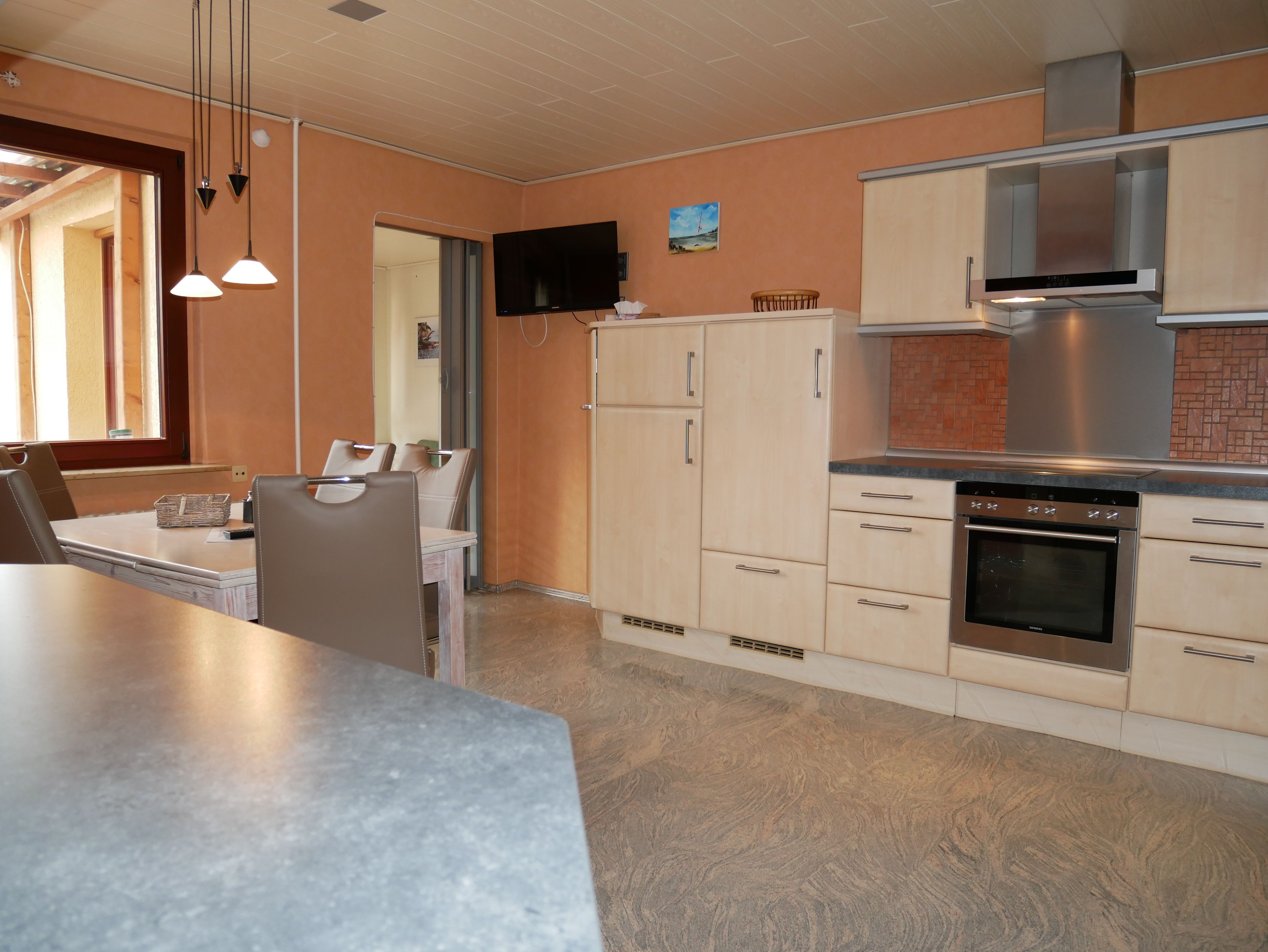 Im Erdgeschoß erwartet Sie eine große, voll ausgestattete Küche mit Cerankochfeld, Backofen, Kühlschrank mit Gefrierfach, Spülmaschine, Wasserkocher, Toaster und Kaffeemaschine. Hier finden Sie auch einen großen Esstisch, an dem Sie gemeinsam Mahlzeiten genießen können. Für Unterhaltung sorgt ein Flat-TV. Angrenzend an die Küche befindet sich ein Vorbau mit einer Sitzecke, von der aus Sie auf die sonnige Terrasse gelangen perfekt für entspannte Stunden im Freien. Vor der Terrasse liegt ein kleiner Teich, der für eine ruhige Atmosphäre sorgt. Außerdem gibt es im Erdgeschoss ein Schlafzimmer mit Doppelbett, Kleiderschrank und Flat-TV sowie ein Tageslicht-Badezimmer mit Dusche, Badewanne, WC und Haartrockner.