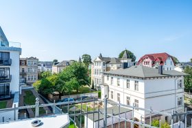 Die Villa Seedüwel überzeugt vor allem durch ihre außergewöhnliche Lage direkt an der Ahlbecker Seebrücke. Promenade, Strand und die historische Konzertmuschel als zentraler Treffpunkt für Veranstaltungen liegen praktisch vor der Tür. Der feinsandige Ostseestrand ist nur wenige Schritte entfernt. Auch das Umfeld passt: Restaurants, Cafés und Einkaufsmöglichkeiten befinden sich in unmittelbarer Nähe, teilweise sogar im Erdgeschoss des Hauses. Die Villa umfasst insgesamt 13 Ferienwohnungen mit einem bis drei Zimmern. Einige Apartments bieten einen direkten Blick auf die Seebrücke und die Ostsee. Für Ihren PKW steht ein Stellplatz in der Tiefgarage des benachbarten Hauses Strandterrasse zur Verfügung (Zufahrt über die Kurstraße) mit direktem Zugang zur Villa. Ein Aufzug ist vorhanden, allerdings erst nach einigen Stufen im Eingangsbereich erreichbar. Zur Ausstattung gehören kostenfreies WLAN im gesamten Haus sowie ein abschließbarer Fahrradkeller. Zusätzlich können Sie im Nachbarhaus Strandterrasse den Gemeinschaftswaschraum mit zwei Waschmaschinen und Trockner nutzen. Dort befindet sich auch eine Gemeinschaftssauna, die täglich von 11:00 bis 22:00 Uhr geöffnet ist.