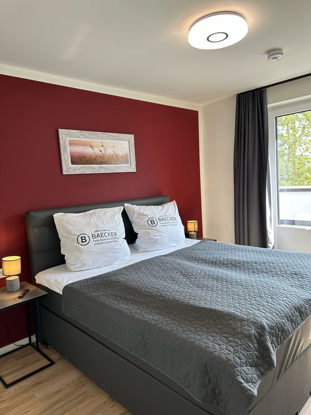 Die Schlafzimmer sind mit hochwertigen Boxspringbetten (180x200 cm) und zusätzlichen TV- Geräten eingerichtet. Verdunklungsplissees und Schals sorgen für die vollständige Verdunkelung der Schlafzimmer und somit für einen erholsamen Schlaf. Geräumige Kleiderschränke, mit ausreichend Stauraum, befinden sich in den Schlafräumen.