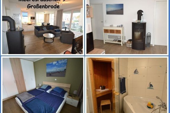 Herzlich willkommen im Meeresrauschen 9! Die Wohnung verfügt über ein Schlafzimmer mit Doppelbett und einem weiteren Schlafzimmer mit Etagenbett. Beide sind jeweils mit TV ausgestattet. Sauna und Wanne bieten erholsame Stunden im Bad. Im gemütlichen Wohnbereich können Sie an der Playstation Ihr Können beweisen, im Internet surfen oder einfach bei kälterem Temperaturen die wohlige Wärme des Kamins genießen.
