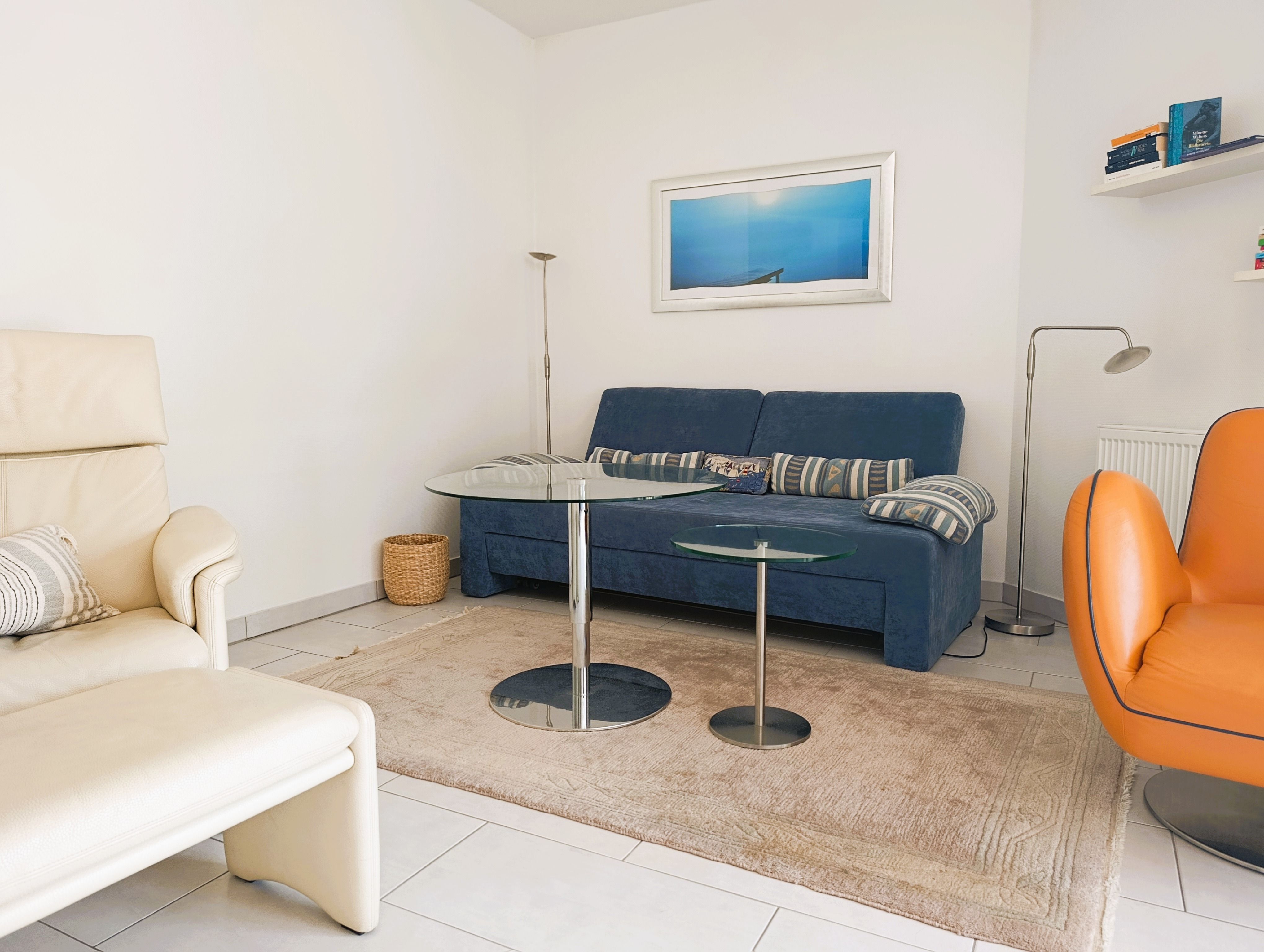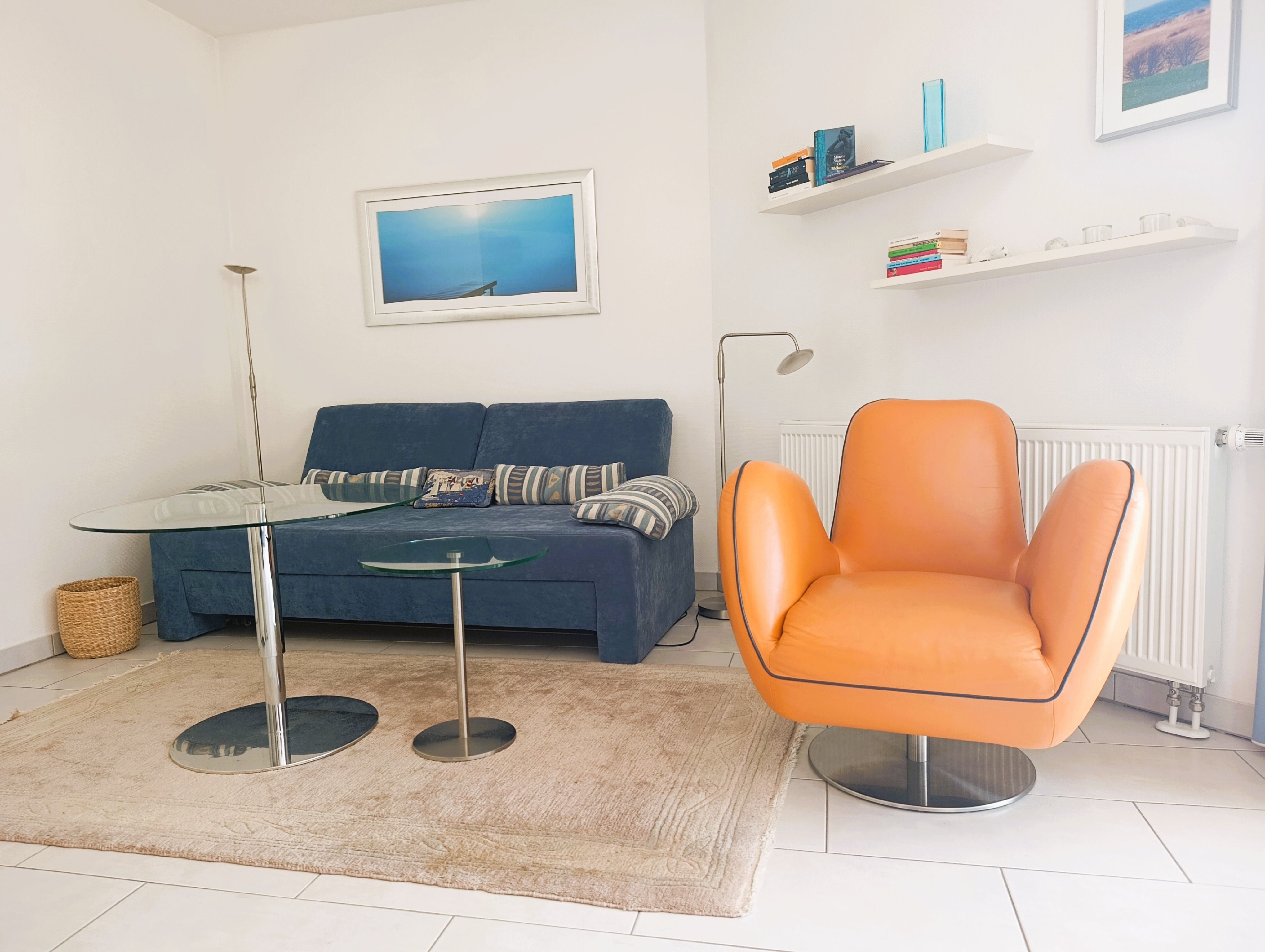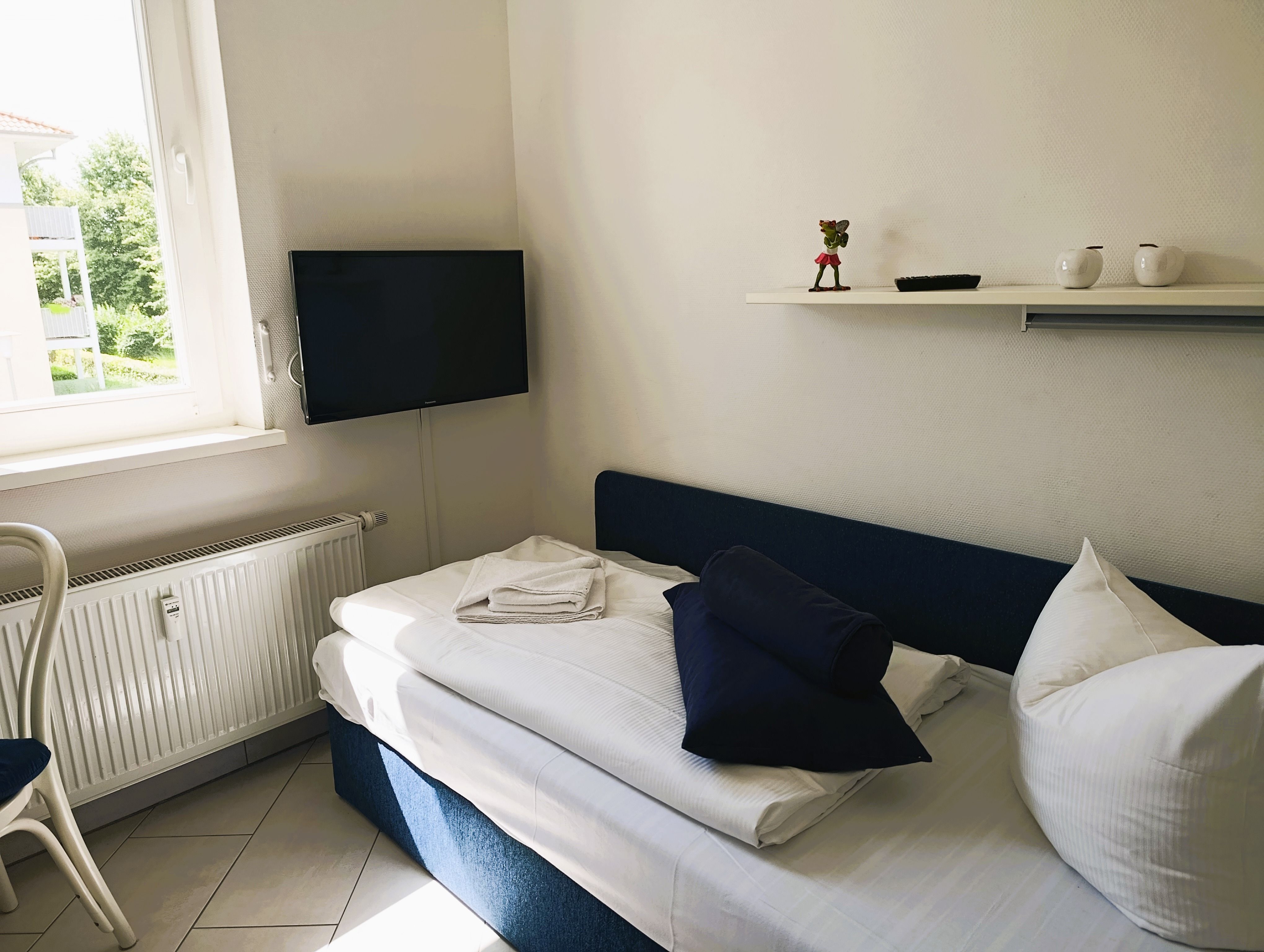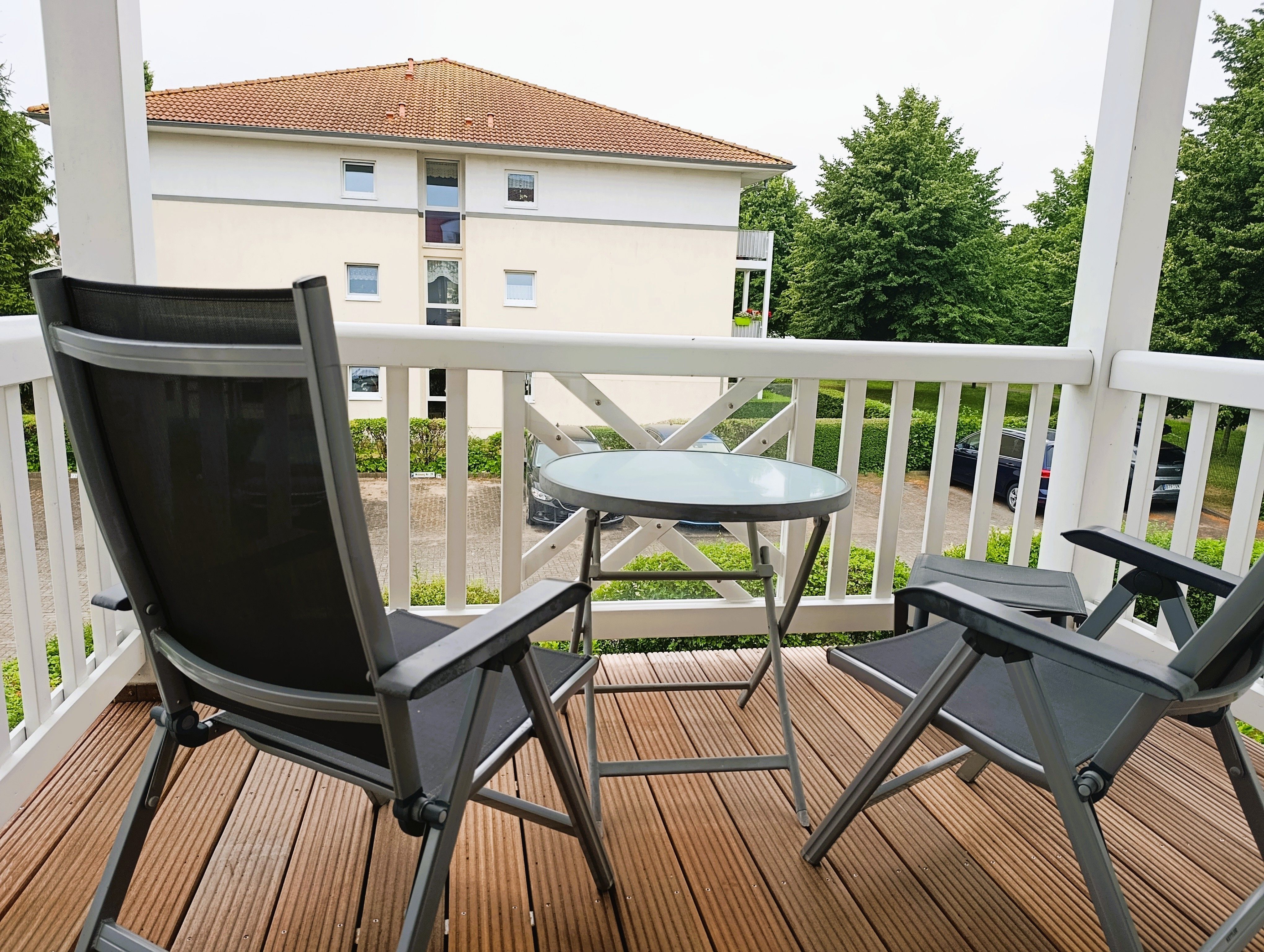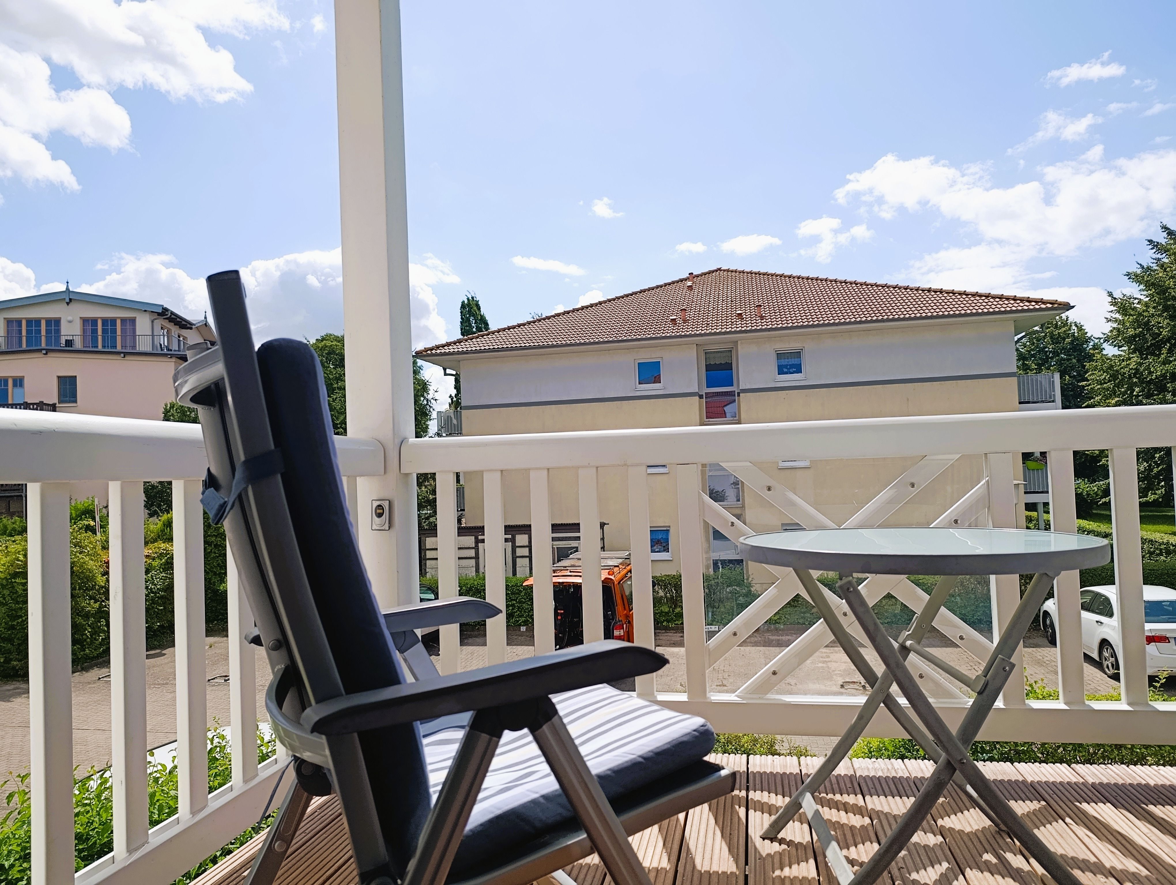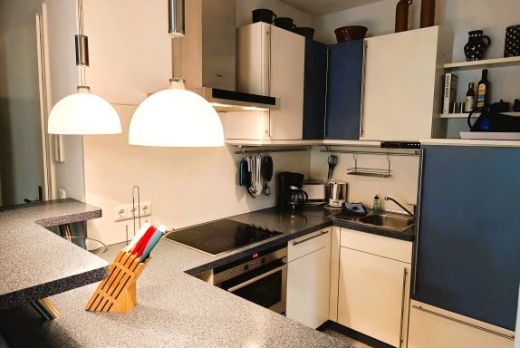 Nur 100 m vom Strand wohnen Sie in einer modern eingerichteten 3-Raum-Ferienwohnung. Die 60 qm große Wohnung liegt in der ersten Etage. Das Wohnzimmer ist mit einer Couch, Tischgruppe, Sessel, Anrichte, Regal, Kabel-TV, Radio, Essbereich (Tisch und Stühle) und Küchenzeile ausgestattet. Der Balkon mit Tisch und Stühle geht zur Südseite. Im Schlafzimmer stehen ein Doppelbett und ein großer Kleiderschrank. Im gästezimmer stehen eine Liege, Schreibtisch und Kleiderschrank. Die Küchenzeile wurde sehr modern ausgestattet mit Mikrowelle, Kühlschrank, Kaffeemaschine, Herd mit Ceranfeld, Backofen, Toaster, Geschirrspüler und Wasserkocher. Das Bad mit Dusche und WC komplettiert die Wohnung.