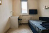 Gästezimmer mit Liege, kleinen Schreibtisch und Kofferbank