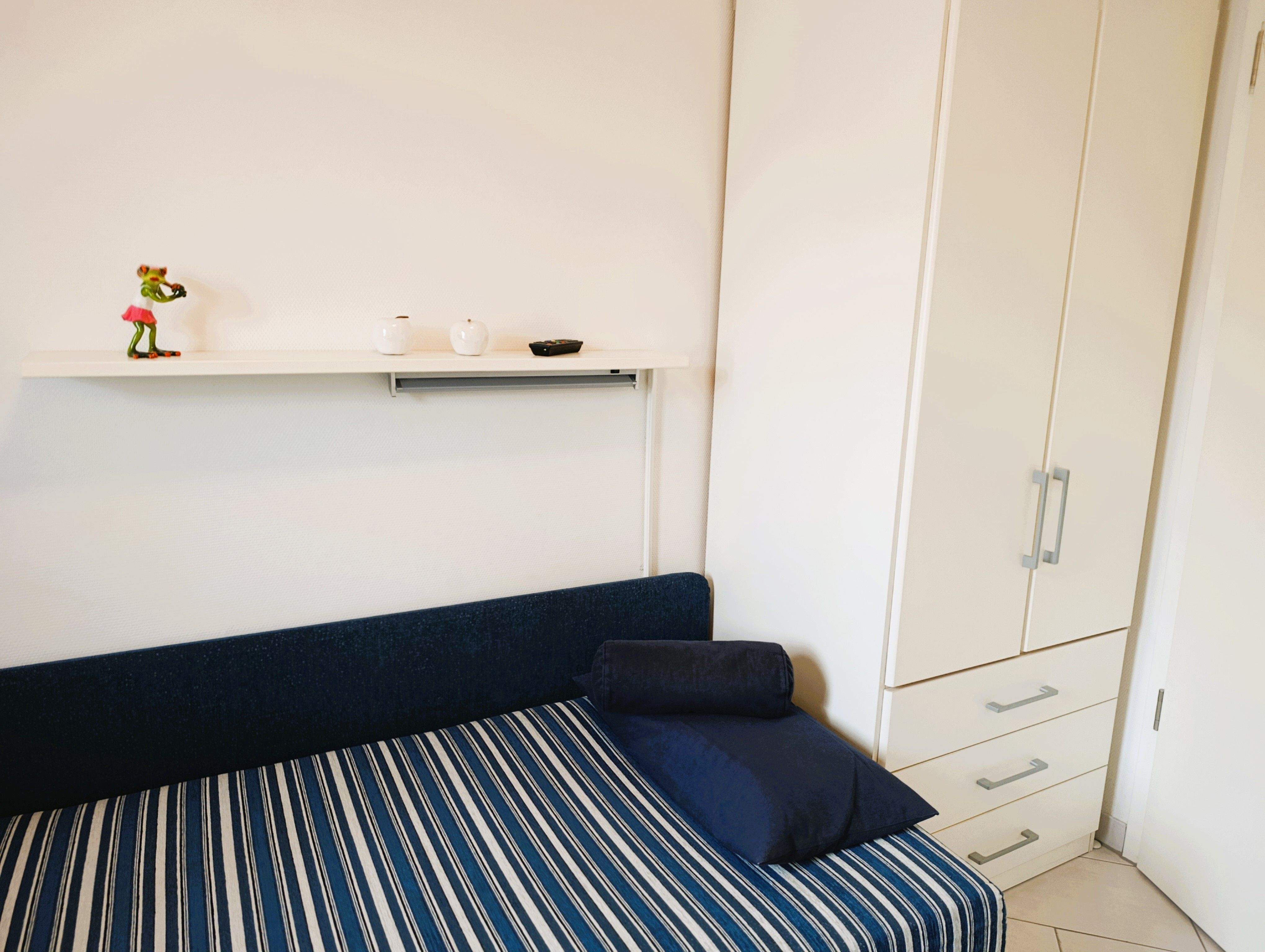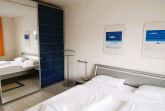 Schlafzimmer mit Doppelbett und Kleiderschrank