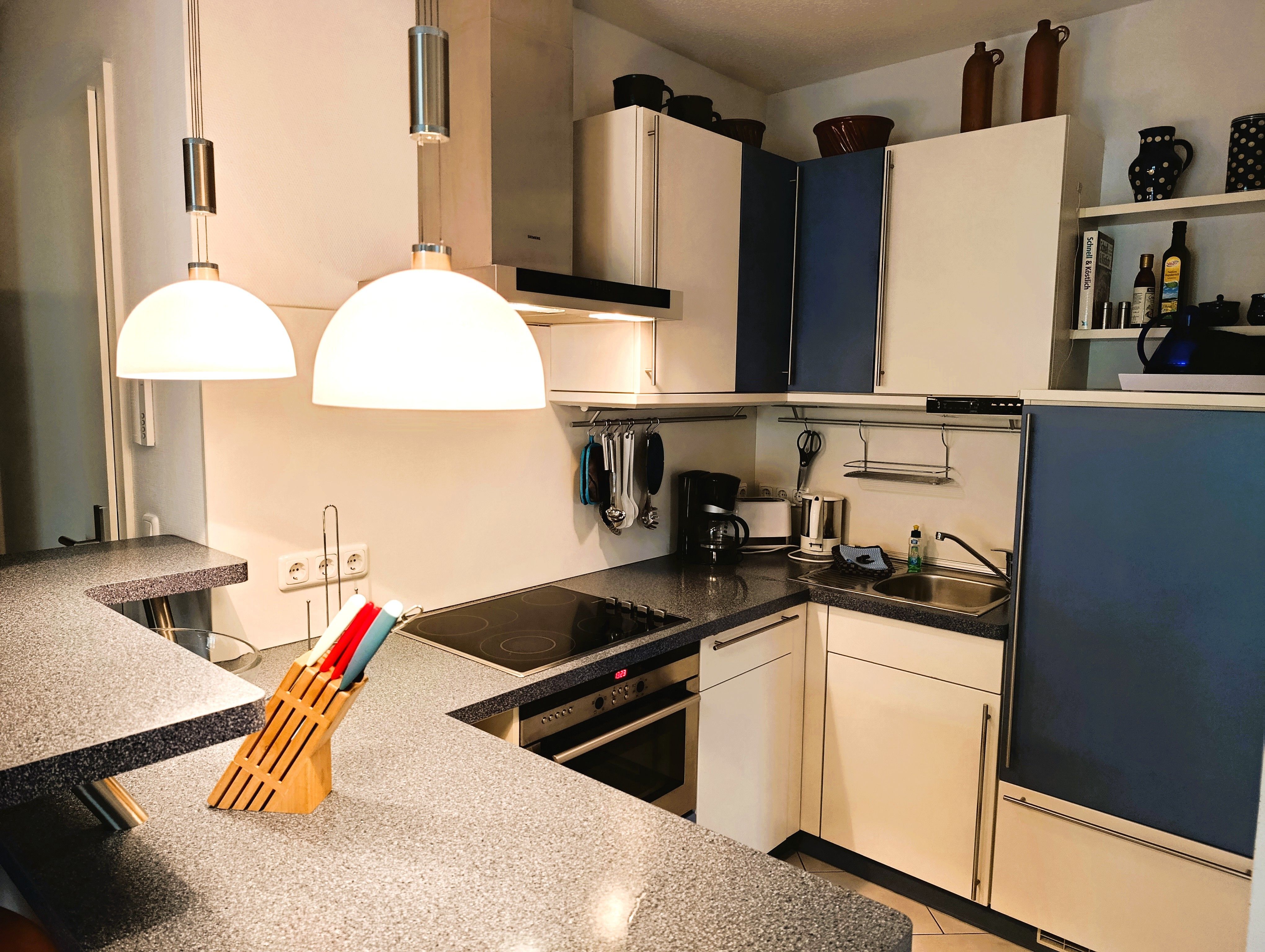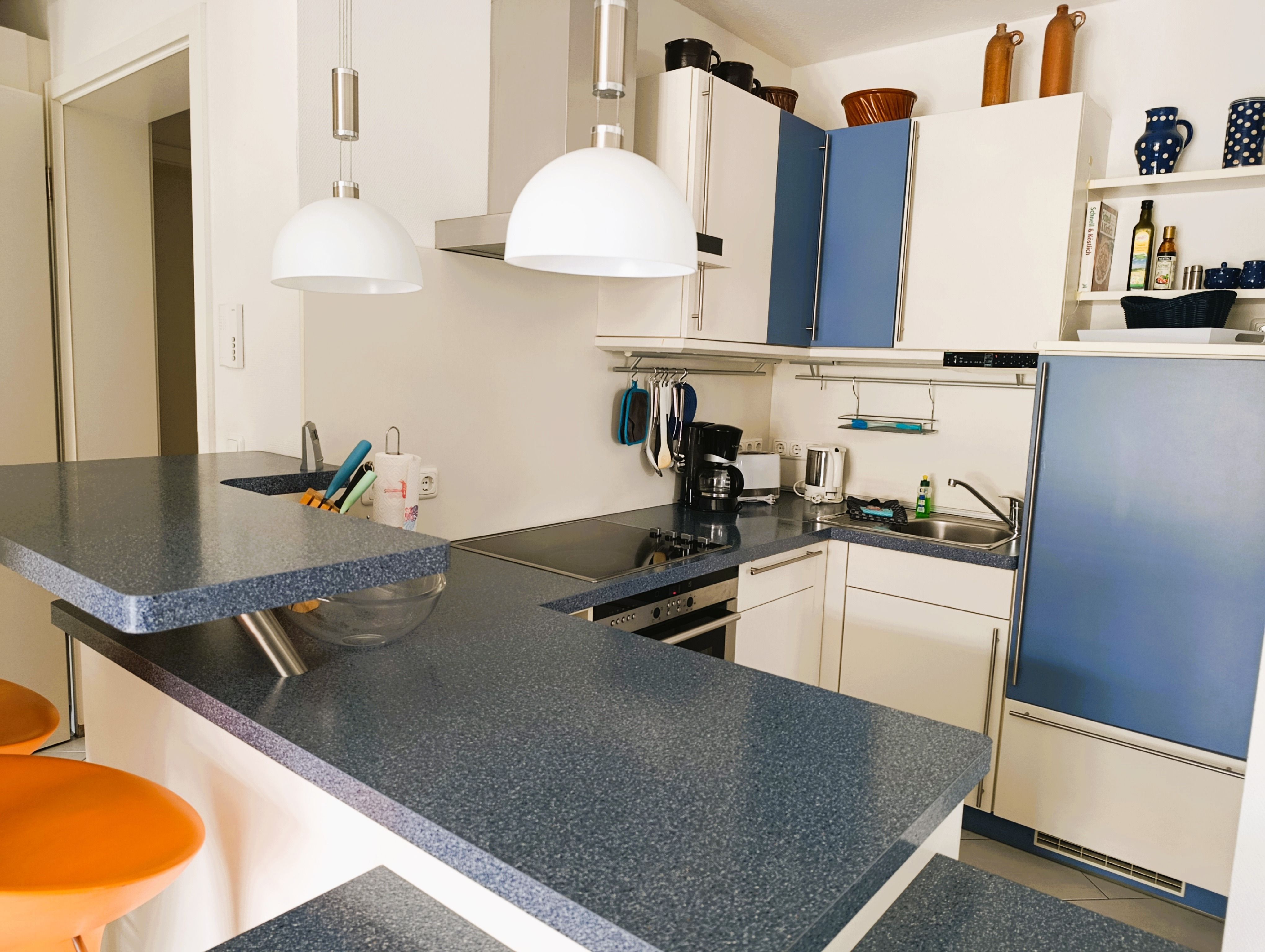 Küchenzeile mit Kühlschrank mit Gefrierfach, 4-Platten-Ceranfeld, Backofen mit intigrierter Mikrowelle, Geschirrspüler, Toaster,