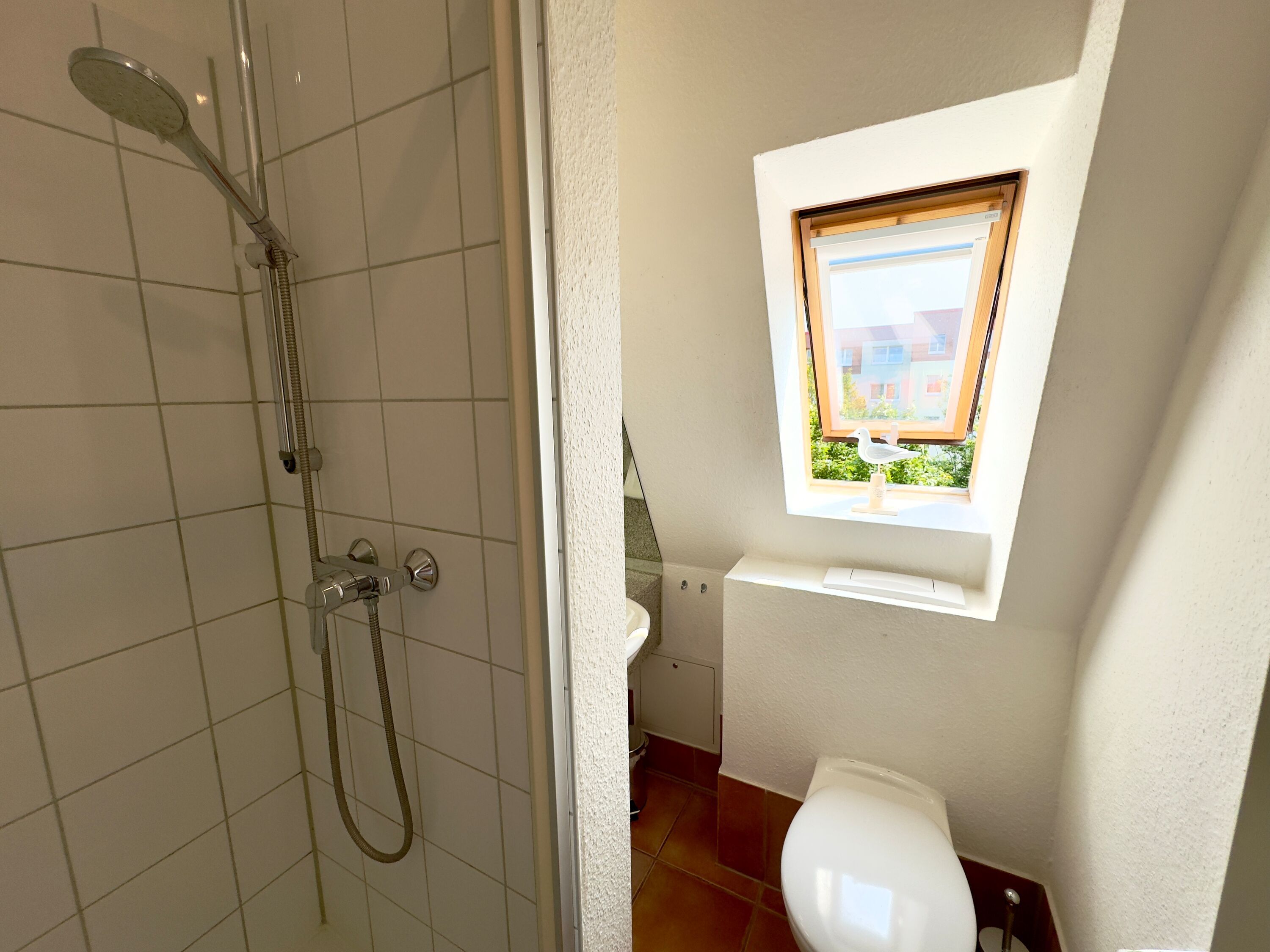 Die Wohnung verfügt über ein separates Schlafzimmer, ein Badezimmer mit Dusche, ein Wohnzimmer mit einer Schlafcouch und einer Pantryküche. Die Unterkunft befindet sich im Dachgeschoss des Hauses.