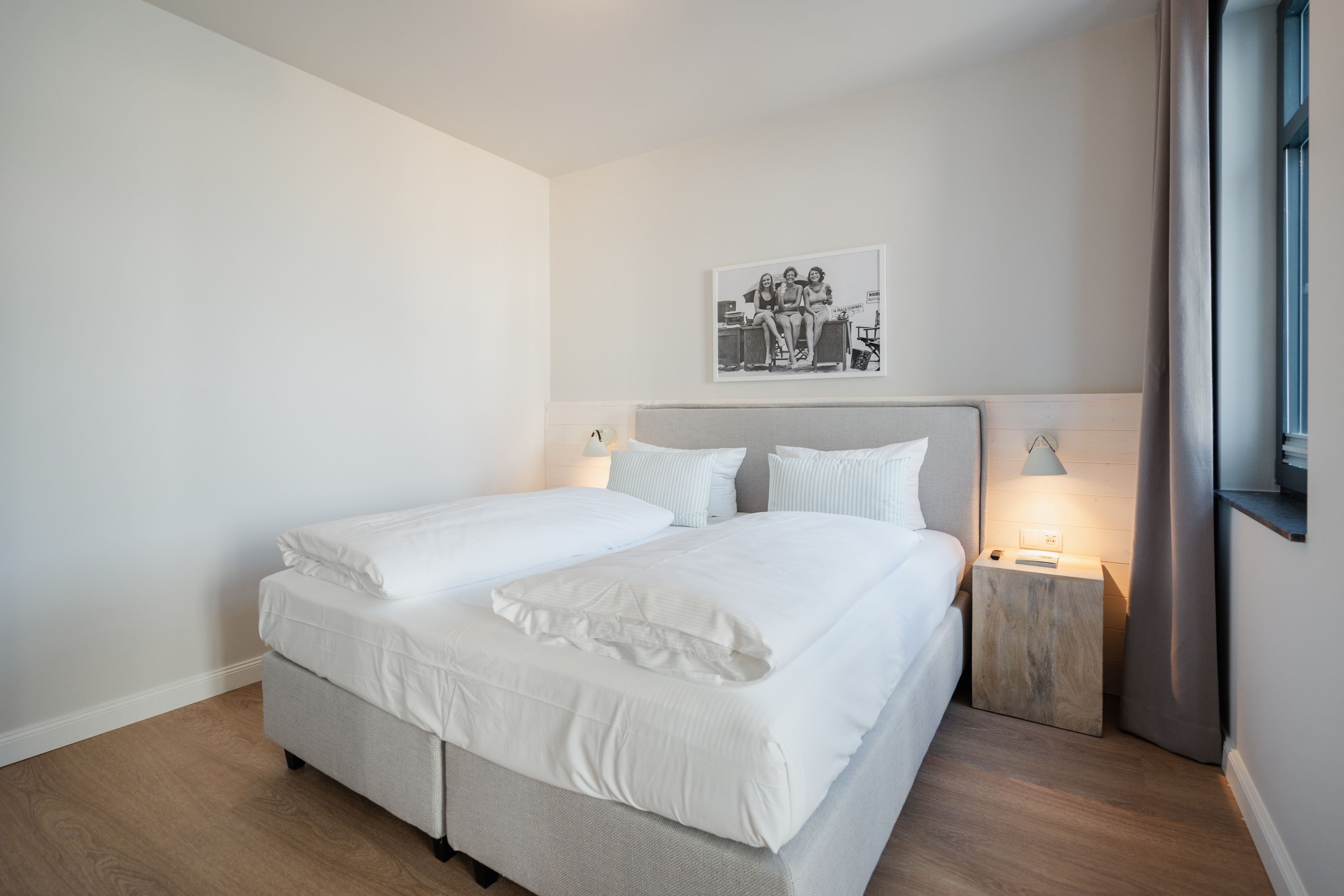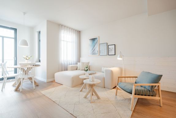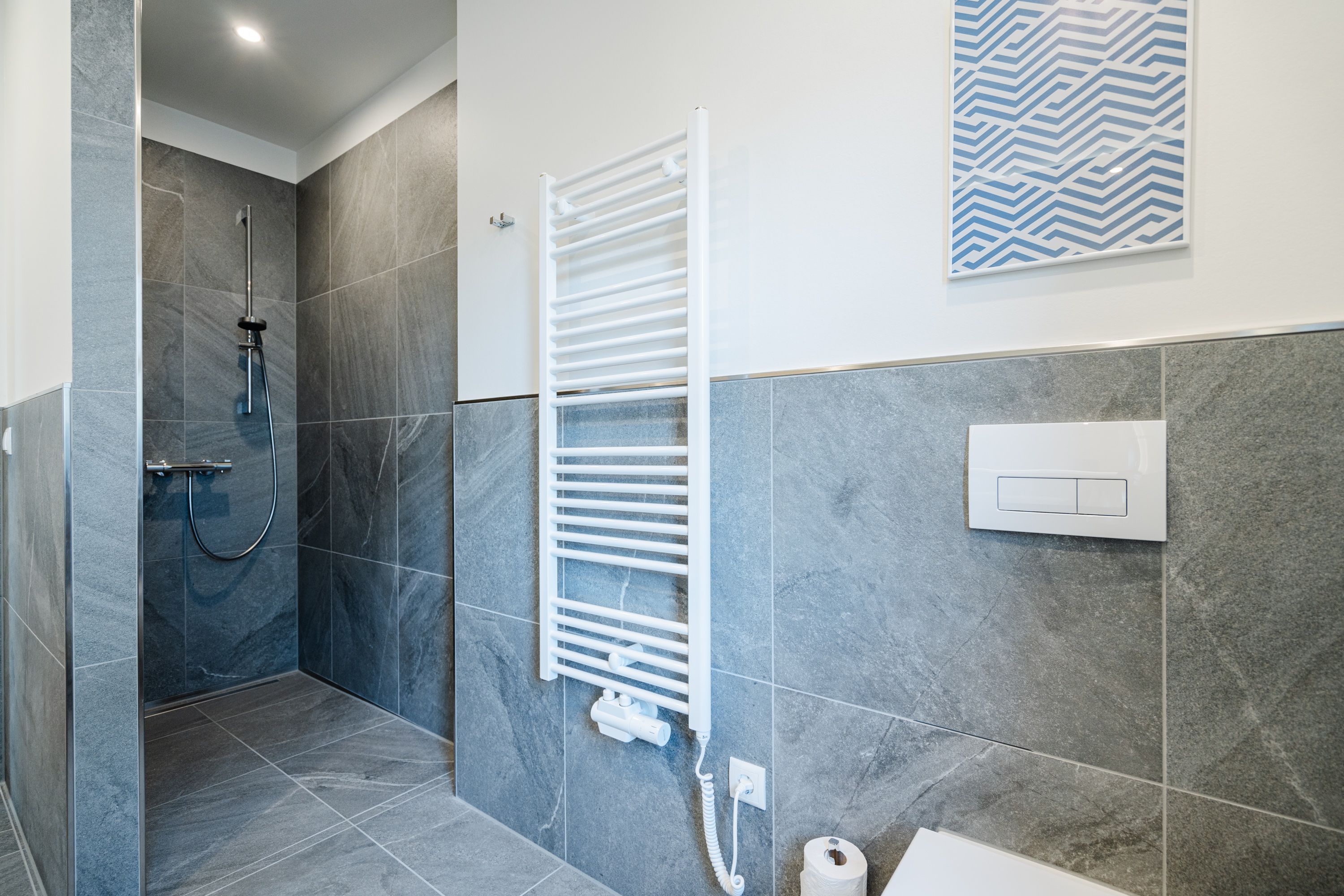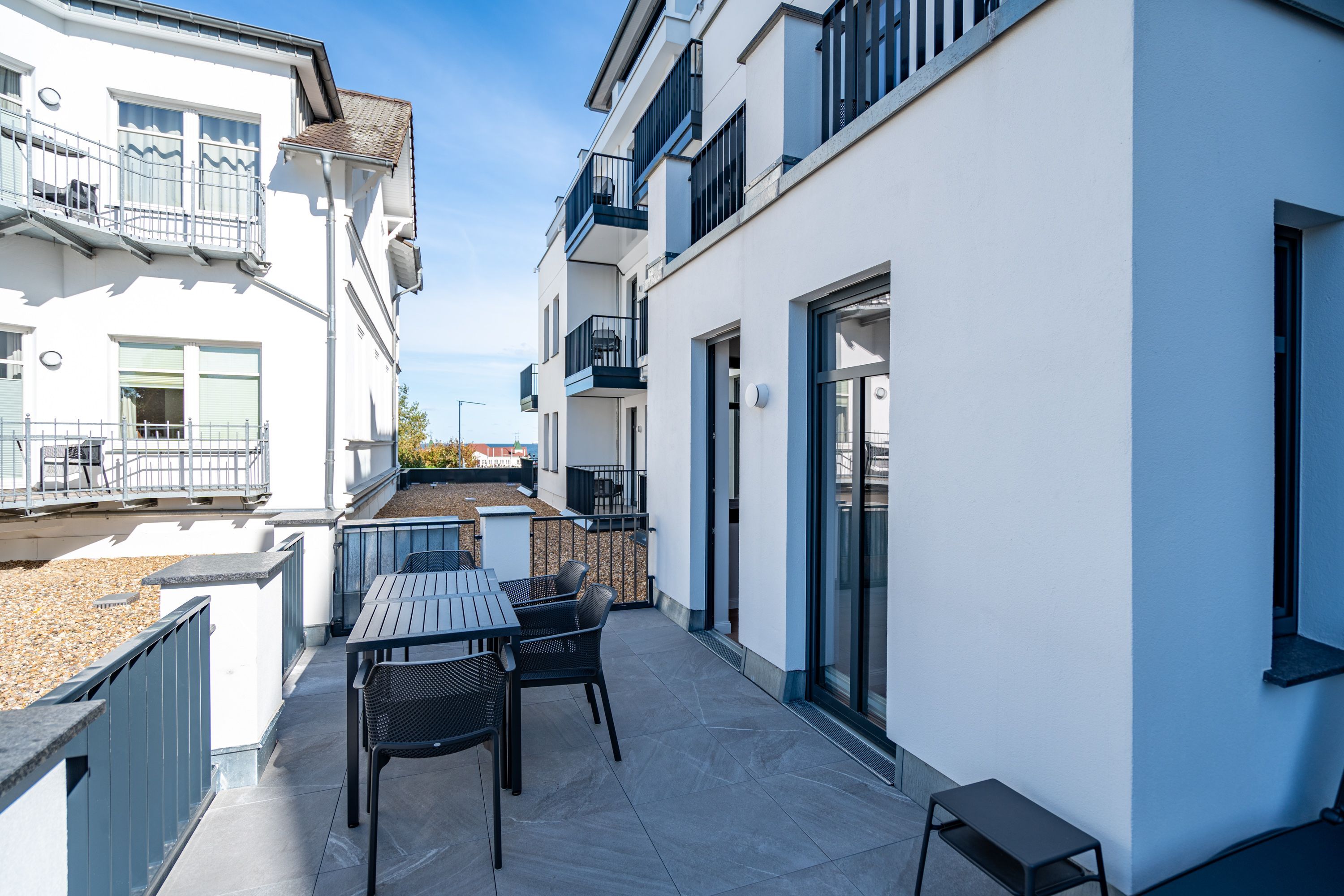 Die 2024 fertig gestellte Strandterrasse liegt direkt an der belebten Strandpromenade und bietet einen einzigartigen Ausblick auf die Grand Dame der historischen Seebrücken sowie die historische Konzertmuschel, einem beliebten Treffpunkt für Kunst und Kultur. Dahinter liegt die Ostsee ein Panorama, das zu den schönsten in den Kaiserbädern gehört. Es ist wie das Abtauchen in eine andere Zeit. In eine Zeit, in der man mit Stock, Sonnenschirm und Hut fürs Sehen und gesehen werden über die Promenade schlenderte; aber auch in eine Zeit, in der damals wie heute Zeit einmal für eine kurze Weile keine Rolle spielt. Weil man angekommen ist im Loslassen, Entspannen und Genießen. Es ist dieser besondere Geruch nach Meeresluft und Freiheit, der in Erinnerung bleibt. Dazu die Bilder, die man mitnimmt. Von langen Strandspaziergängen, vom Lachen in fröhlich schäumenden Ostseewellen, von der Zeit in einem wunderschönen Urlaubsdomizil. Denn genau das ist die Strandterrasse mit ihren 56 modernen und exklusiven Ferienappartements direkt gegenüber der Ahlbecker Seebrücke. Die Ein-, Zwei- oder Dreizimmerwohnungen zwischen 40 und 70 Quadratmeter groß sind von einer Innenarchitektin gemeinsam mit unserem Erfahrungsschatz an Gästewünschen mit viel Liebe zum Detail und ganz individuell konzipiert worden. Entspannung und Wohlfühlen stehen an erster Stelle. Alles ist aufeinander abgestimmt und sorgt für eine gemütliche Atmosphäre. Wählen Sie zwischen einem Domizil in einem hellen, sandfarbenen Designkonzept oder einem Appartement mit anthrazitfarbenen Farbakzenten. Alle Appartements verfügen gleichermaßen über eine stilvolle und komfortable Einrichtung, die passgenau angefertigt worden ist, sowie über moderne Küchen und Bäder. Jedem Schlafzimmer ist ein eigenes Bad mit Dusche zugeordnet (außer App. B4.5). Die Appartements besitzen fast alle einen Balkon viele schauen sogar zur Ostsee hinaus. Die meisten Feriendomizile haben einen Elektrokamin und Infrarotsaunen. Im Erdgeschoss befindet sich ein separater Gemeinschaftsraum für Fahrräder. Außerdem besteht die Möglichkeit, im Gemeinschaftswaschraum 2 Waschmaschinen & Trockner zu nutzen. Ergänzt wird das Angebot durch eine Gemeinschaftssauna, die täglich von 11:00 bis 22:00 Uhr nutzbar ist. In der Tiefgarage (Einfahrtshöhe 2,03 Meter) steht für jede Wohnung 1 Pkw-Stellplatz zur Verfügung. Ist alles zur Zufriedenheit untergebracht? Dann kann der Urlaub ja beginnen. Und beim Blick vom Balkon über die Ostsee treffen sich zum Sonnenaufgang das Heute und das Damals. Gelassenheit legt sich beim Gang hinunter an den Strand auf die Seele. Jetzt darf die Zeit stehenbleiben.
