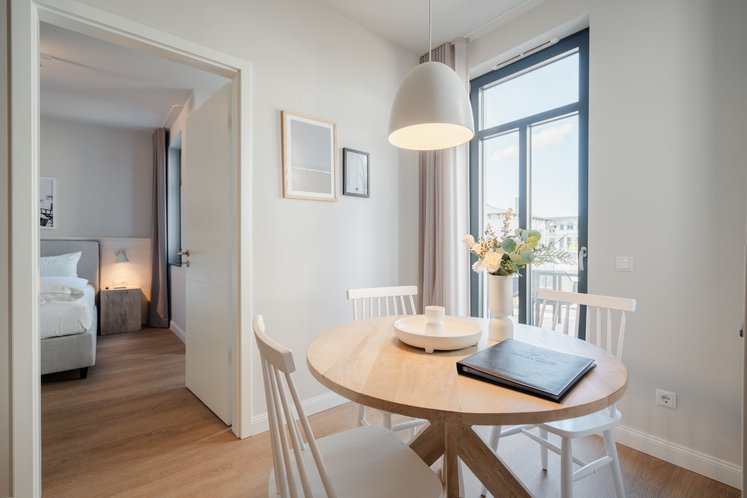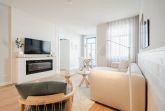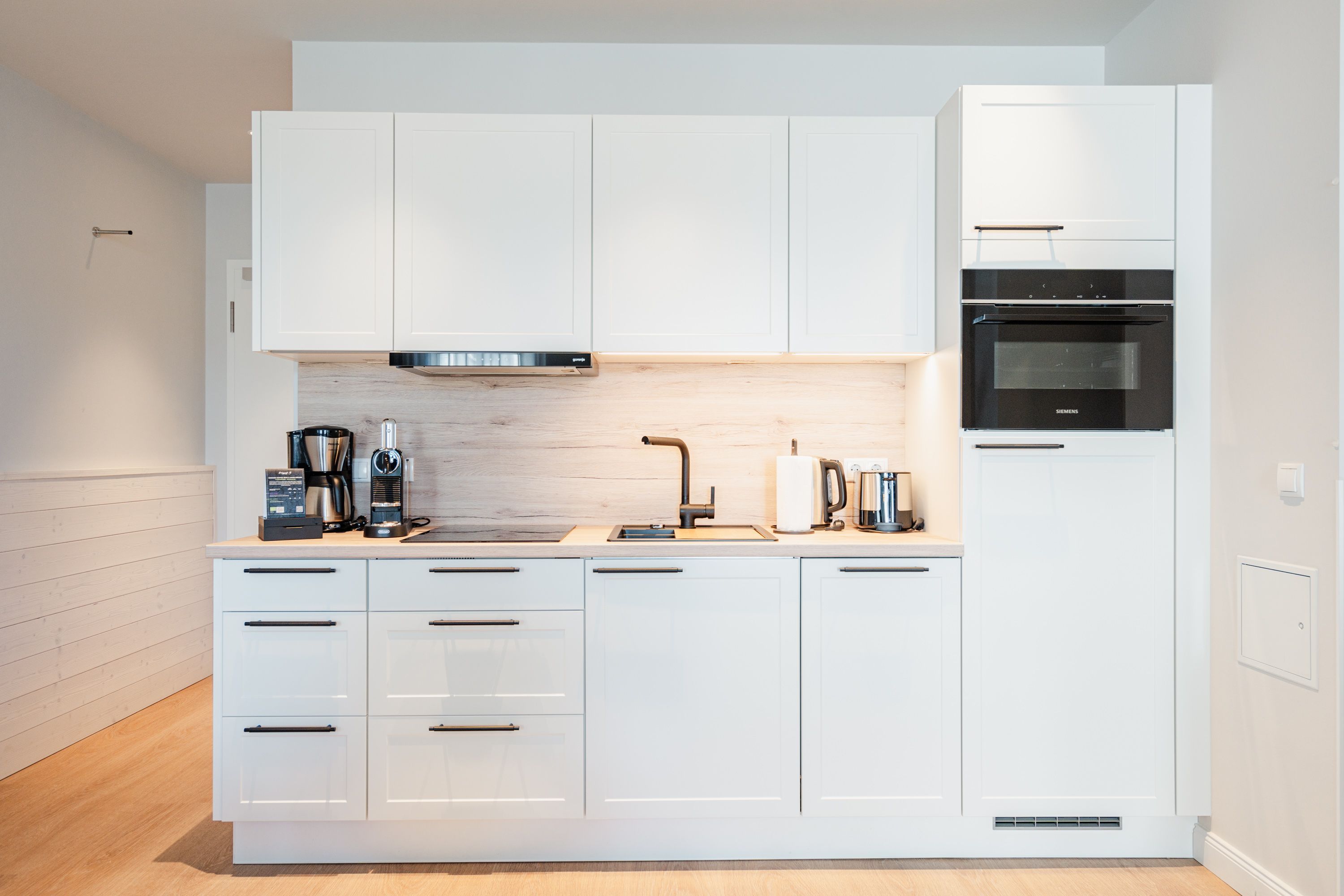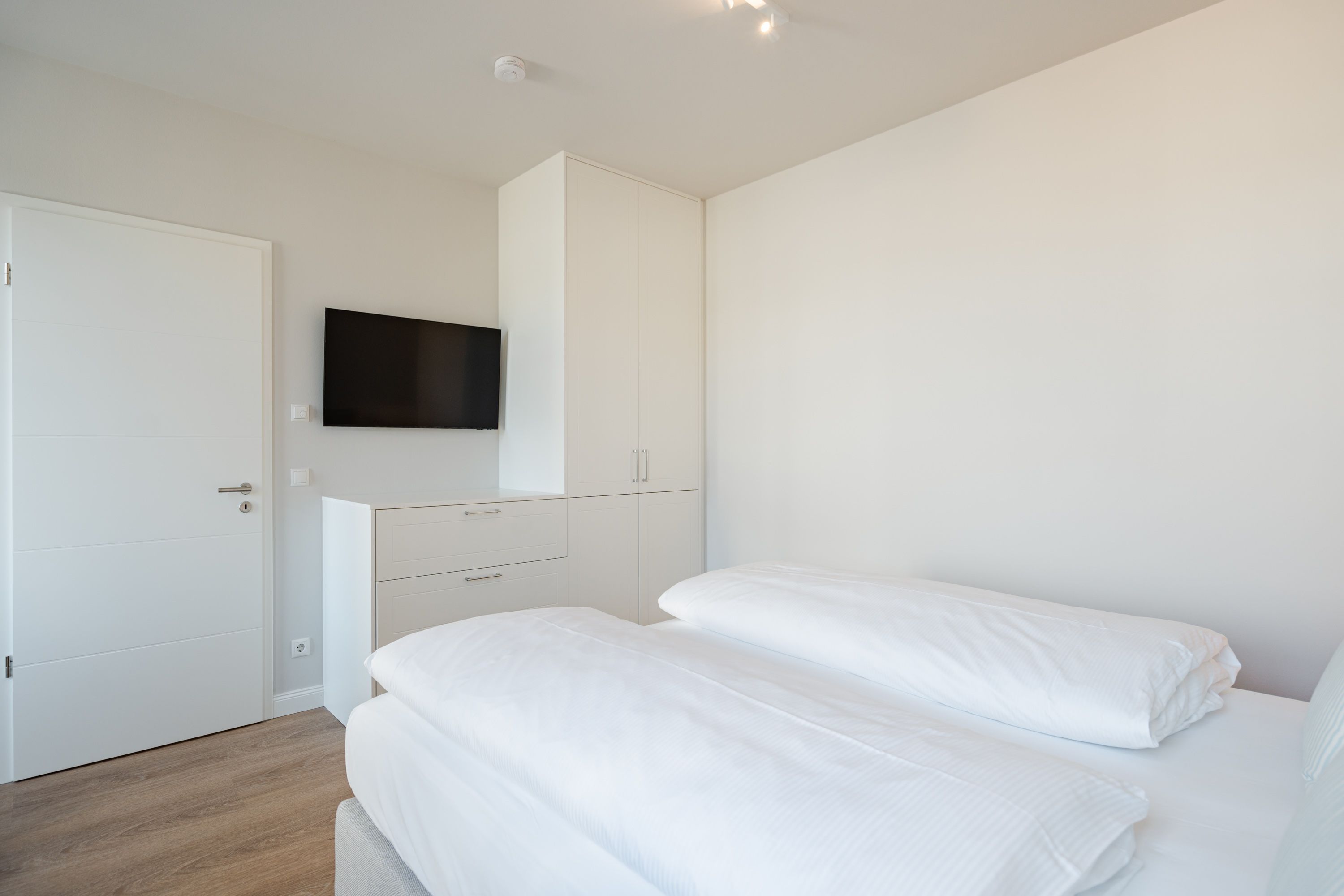Wenn alles passt und das Ankommen sofort ein Wohlfühlen ist. Willkommen in dem 62 Quadratmeter großen 2-Raum-Appartement A1.1 im ersten Obergeschoss. Dieses charmante Domizil ist für 2 Personen der ideale Rückzugsort für eine entspannte und erholsame Auszeit an der Ostsee. Die haben Sie nämlich von der großzügigen Dachterrasse mit Sitzgelegenheit und Sonnenliege sogar direkt im Blick der perfekte Ort, um einen schönen Sonnentag zu genießen oder ihn hier bei einem kühlen Getränk ausklingen zu lassen. Das Appartement bietet allen Komfort, den Sie für einen schönen Urlaub benötigen. Helles Holz, warme Sandtöne und moderne Möbel sorgen für eine entspannte Atmosphäre. Alles passt wunderbar zusammen und ist harmonisch aufeinander abgestimmt. Treten Sie ein in den offenen Wohn- und Essbereich, der mit einer voll ausgestatteten Küchenzeile, einer gemütlichen Sofa-Sitzgruppe und einem 50-Zoll-Flachbildfernseher ausgestattet ist. Ein Elektrokamin (ohne Wärmeerzeugung) schafft romantische Gemütlichkeit. Schon einmal mit Meerblick gefrühstückt? Vom Esstisch aus haben Sie einen seitlichen Blick auf die Ahlbecker Seebrücke und die dahinter liegende Ostsee. Das Schlafzimmer des Appartements lädt mit seinem komfortablen Boxspringdoppelbett (1,80m x 2,00m) zu erholsamen Nächten ein. Das Meeresrauschen beschert zusätzlich wundervolle Träume. Ein geräumiger Kleiderschrank und eine Kommode bieten viel Stauraum für die Urlaubsgarderobe. Auch hier finden Sie einen 43-Zoll-Flachbildfernseher. Von beiden Zimmern aus haben Sie einen Zugang auf die Dachterrasse. So können Sie schon direkt nach dem Aufwachen einen tiefen Atemzug voller Ostseeluft nehmen. Das moderne Tageslichtbad ist mit einer Dusche, einem WC und einem Waschtisch ausgestattet. Ihr Auto steht sicher auf dem zum Appartement gehörenden PKW-Stellplatz in der Tiefgarage, die Sie bequem über den Fahrstuhl erreichen können.