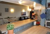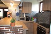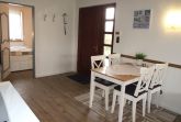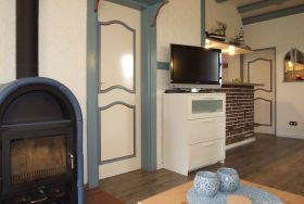 Der Wohnraum ist ebenerdig und 60 qm groß. Der Wohn-/essraum mit integrierter Küche wird durch einen Esstresen getrennt. Im Wohn-/essbereich sorgt der Kaminofen für wohlige Wärme an kühlen und kalten Tagen. Es gibt einen Schlafraum mit Doppelbett. Der zweite Schlafraum ist mit Einzelbett. Das Badezimmer lockt zum Entspannen mit einer Sauna.