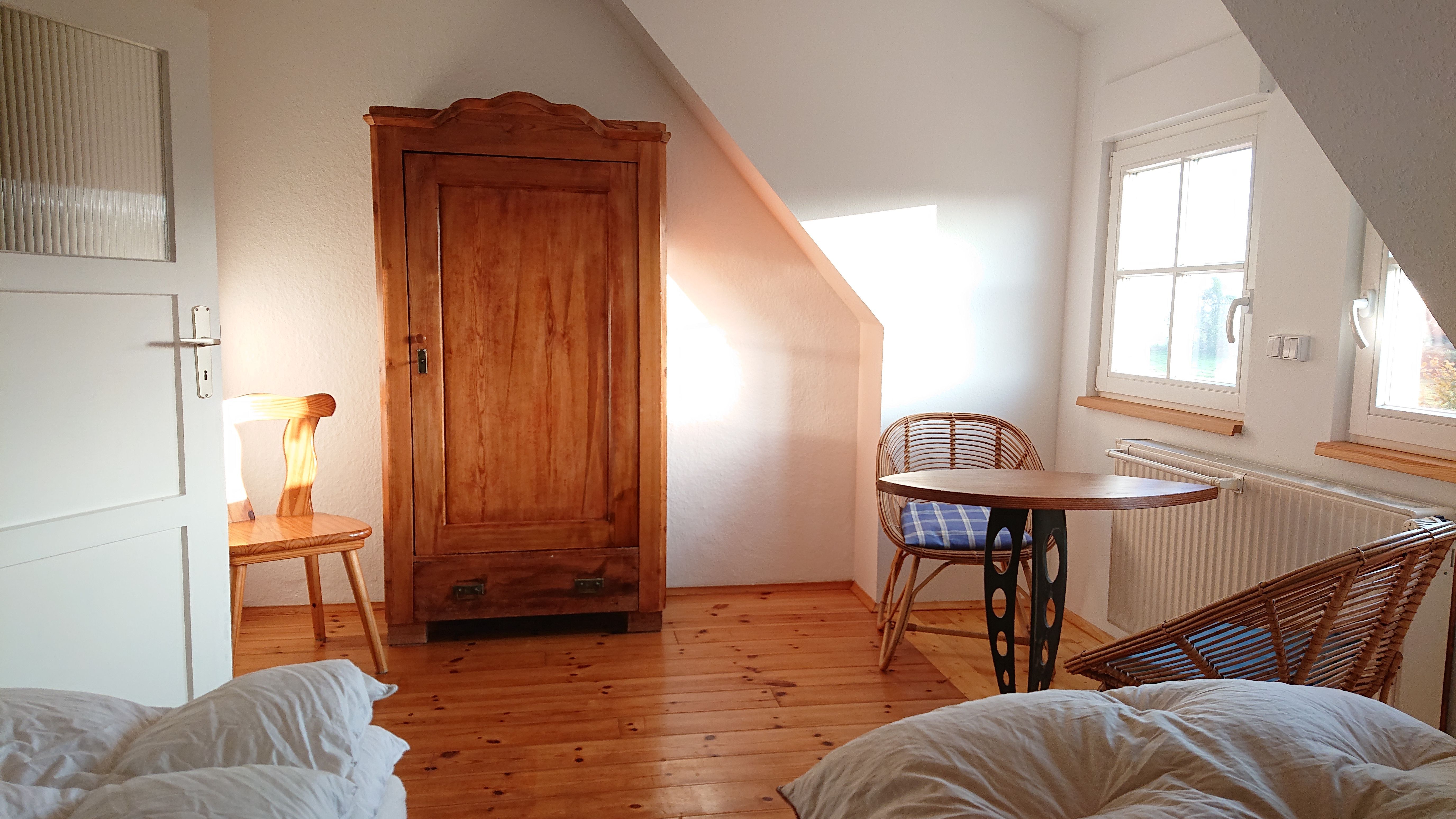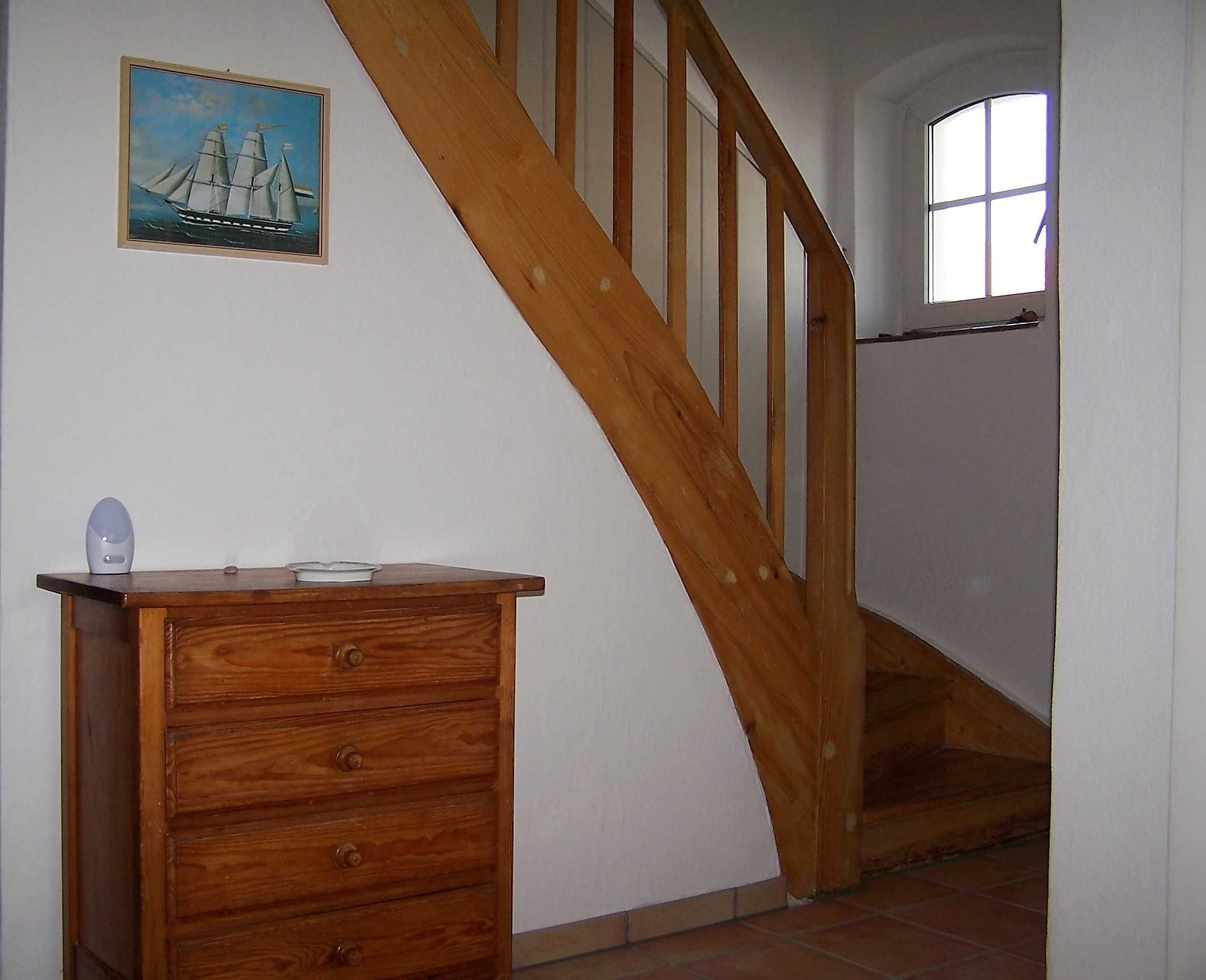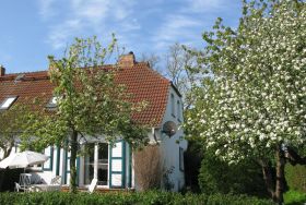 Ferienhaus Ostseebad Wustrow, Fischland/Darss, ruhig 2-5 Per Gemütlich ausgestattetes geräumiges Ferienhaus (4 Zimmer), ruhige Ortsrandlage, (separates Grundstück) z. T. freier Blick auf Felder + Bodden, feinkörniger Sandstrand (Ostsee), ca. 3 Minuten zum Hafen, 520 qm Garten, individuell voll ausgestattes Wohnhaus (Doppelhaus) über 80 qm mit 4 Zimmern und Küche, Gas-Zentral-Heizung, zum Teil Fußbodenheizung, gemütlich mit alten oder massiven Holz-Möbeln eingerichtet, individuell für den Eigenbedarf nach unserem Geschmack zusammengestellt (siehe Fotos, keine sterile Einheitsausstattung vom Bauträger) unten: Wohn- und Lesezimmer mit Doppeltür (Schlaf-Sofa: Ligne Roset Multy), Sat-TV, CD-Player, Radio; Küche mit Sitzecke, reichhaltige Küchenausstattung, Spülmaschine, Herd mit Backröhre, Mikro-Welle, Kühl-Gefrier-Kombination etc., Gäste WC 1. Stock: 2 Schlafzimmer (Doppelbett: 160x200, 2 Betten: 90x200), Kinderbett;Hochstuhl, Bad/WC (Dusche), 520 qm Grundstück (Garten, reifes Obst darf natürlich geerntet werden), PKW-Stellplatz, Gartenmöbel, einfache Fahrräder, verschiedene Spiel-, Strand- und Sportgeräte in gebrauchtem Zustand.