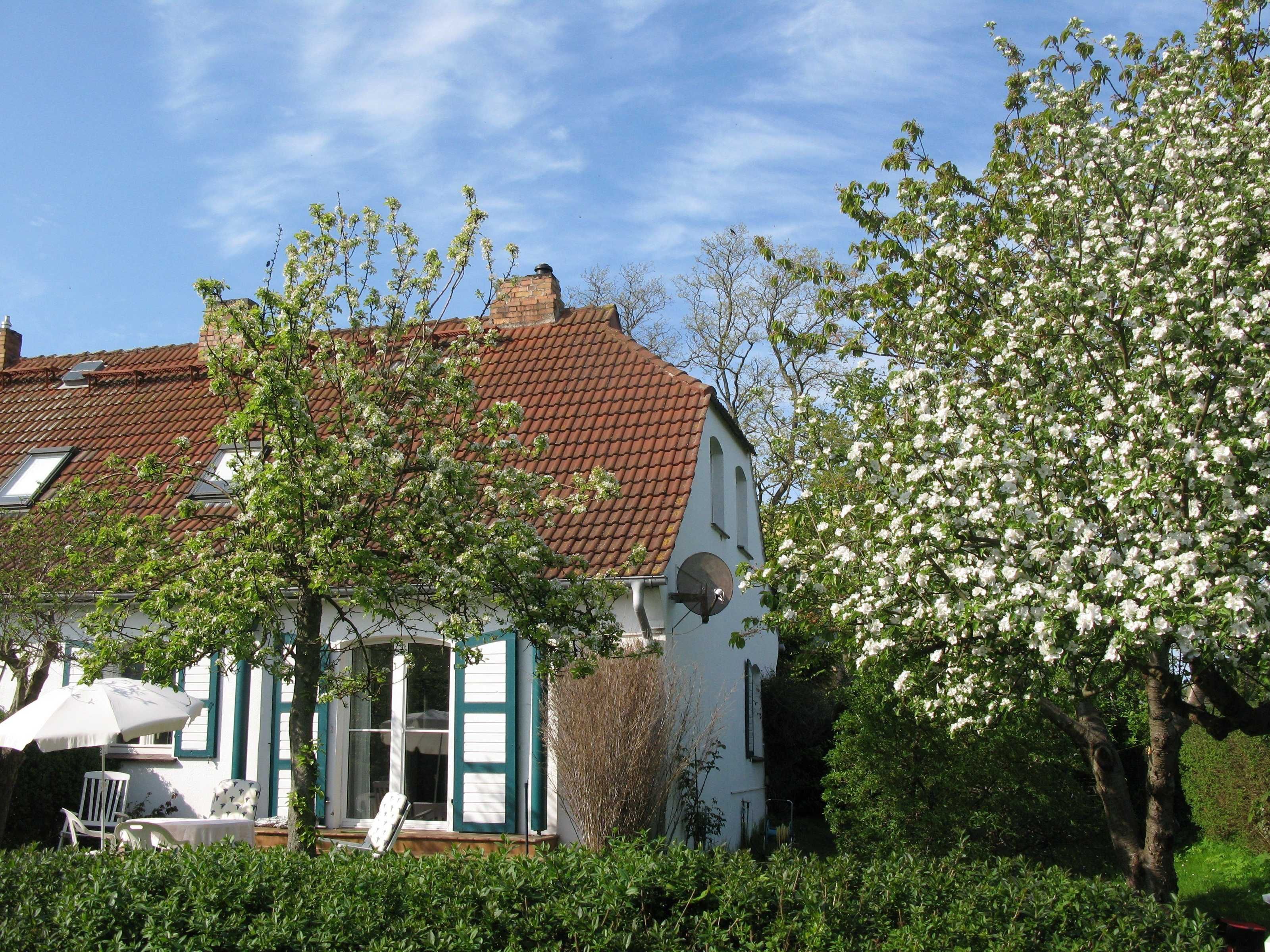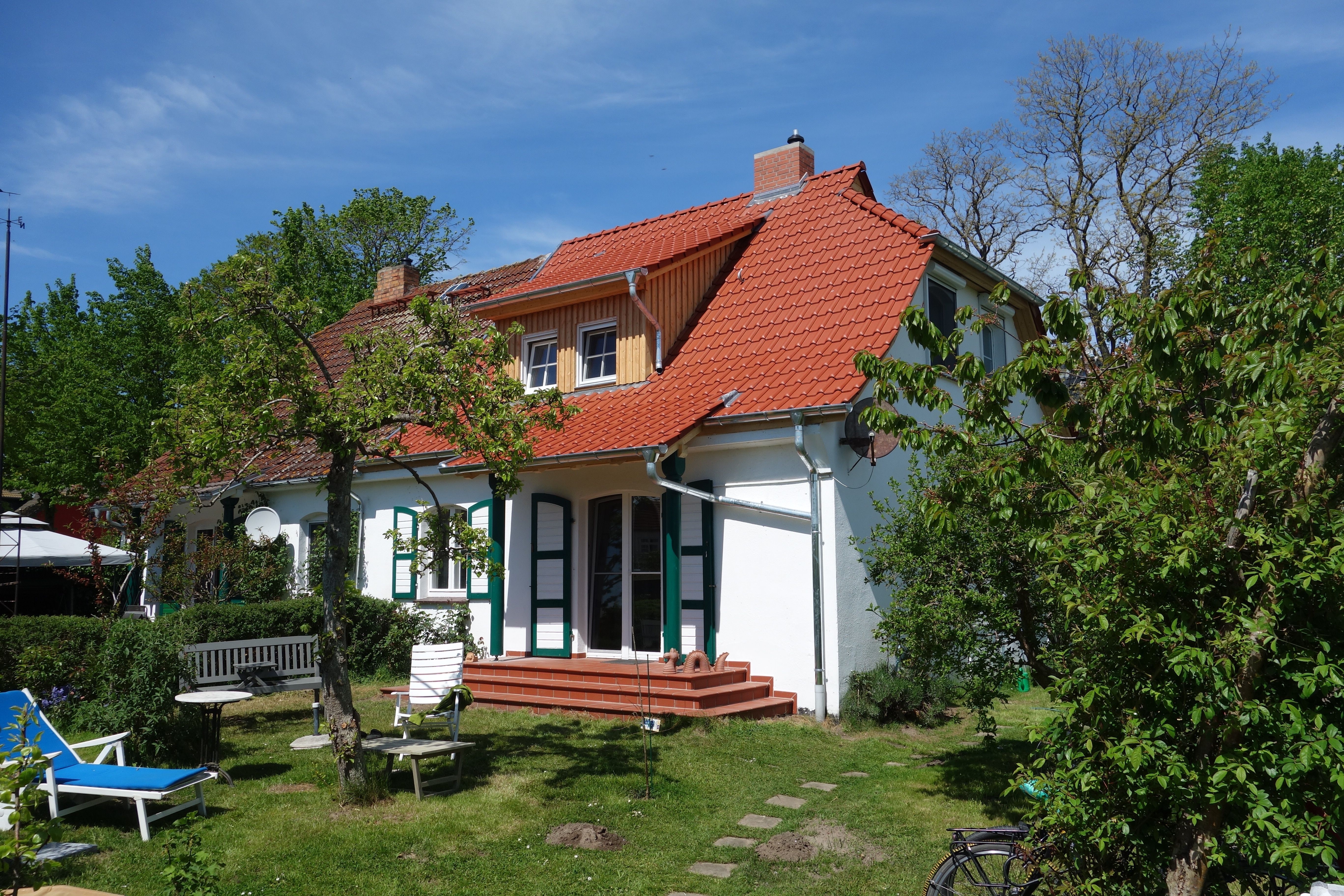 Gemütlich ausgestattetes, geräumiges Ferienhaus (Doppelhaus), ruhig, großer Garten, Ortsrandlage, freier Blick auf Felder + Bodden, ca. 12 Gehminuten zum Ostseestrand (feinkörniger Sandstrand), 3 Min. zum Hafen, Grundstück 520 qm, Obstbäume, Bettwäsche & Handtücher sind mitzubringen.