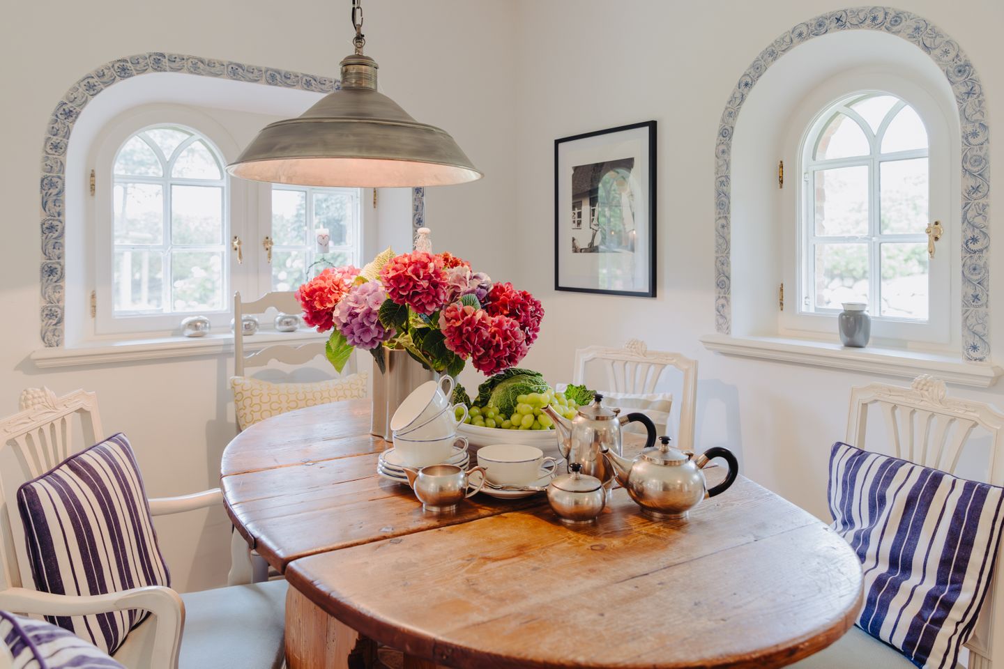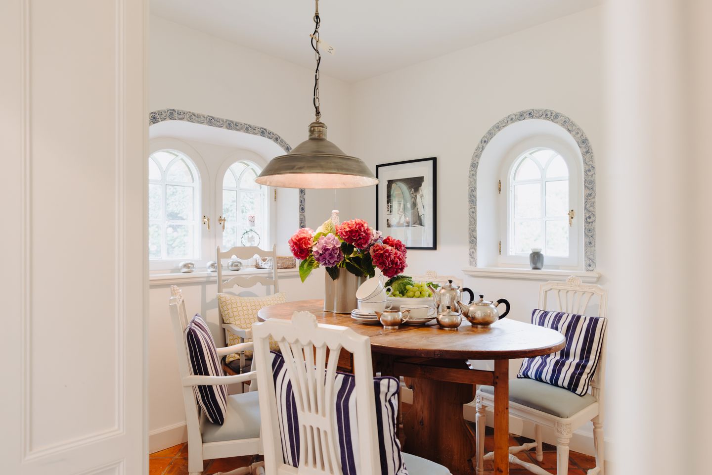 Die kunstvollen blauen Fliesenmuster bringen eine warme und einladende Stimmung in die Räume, sodass man sich sofort wohlfühlt.