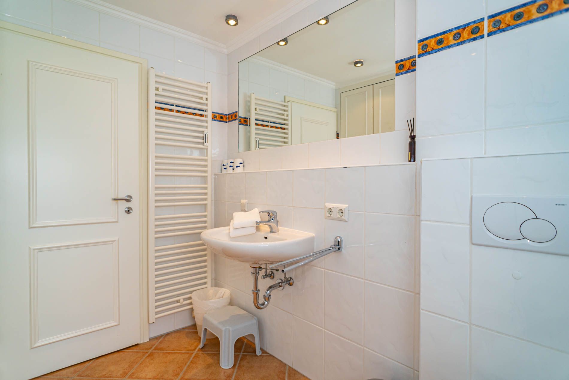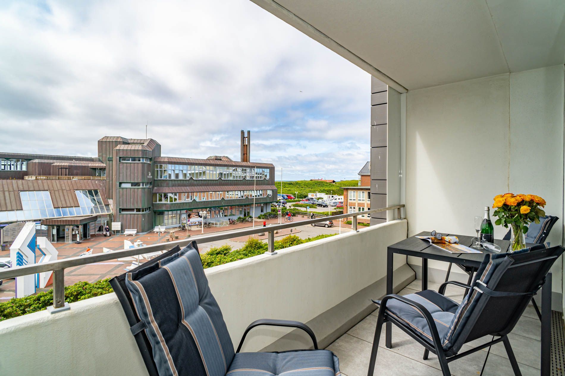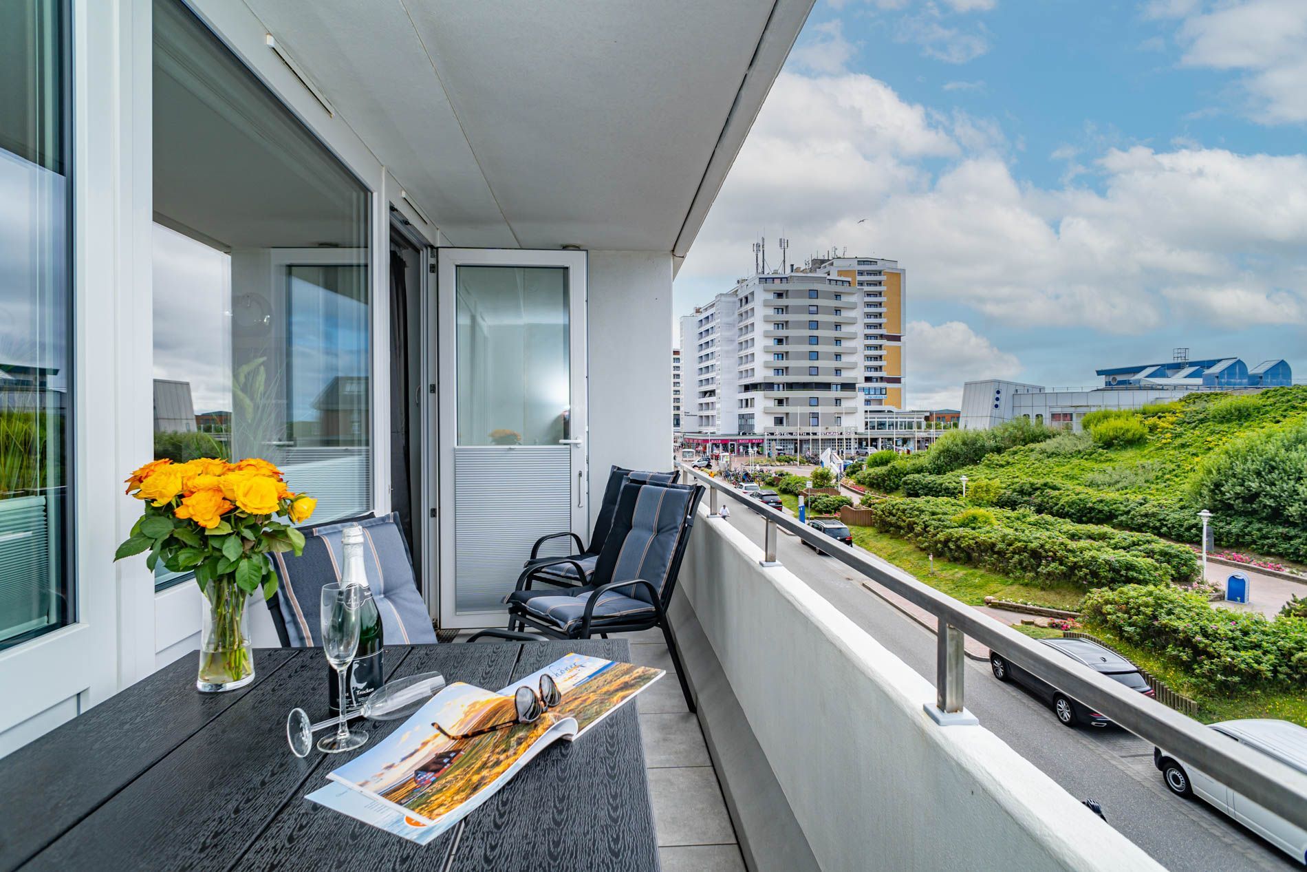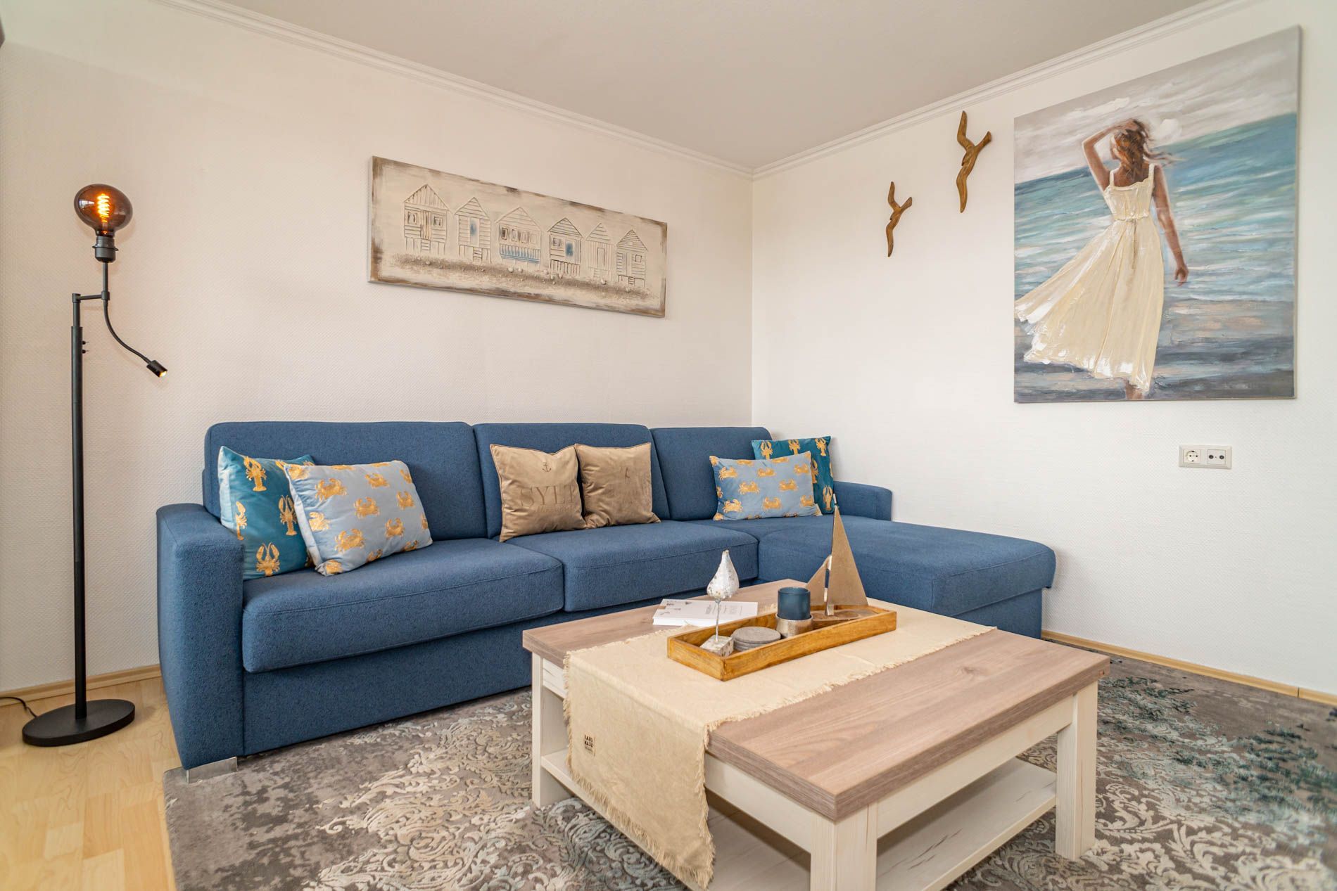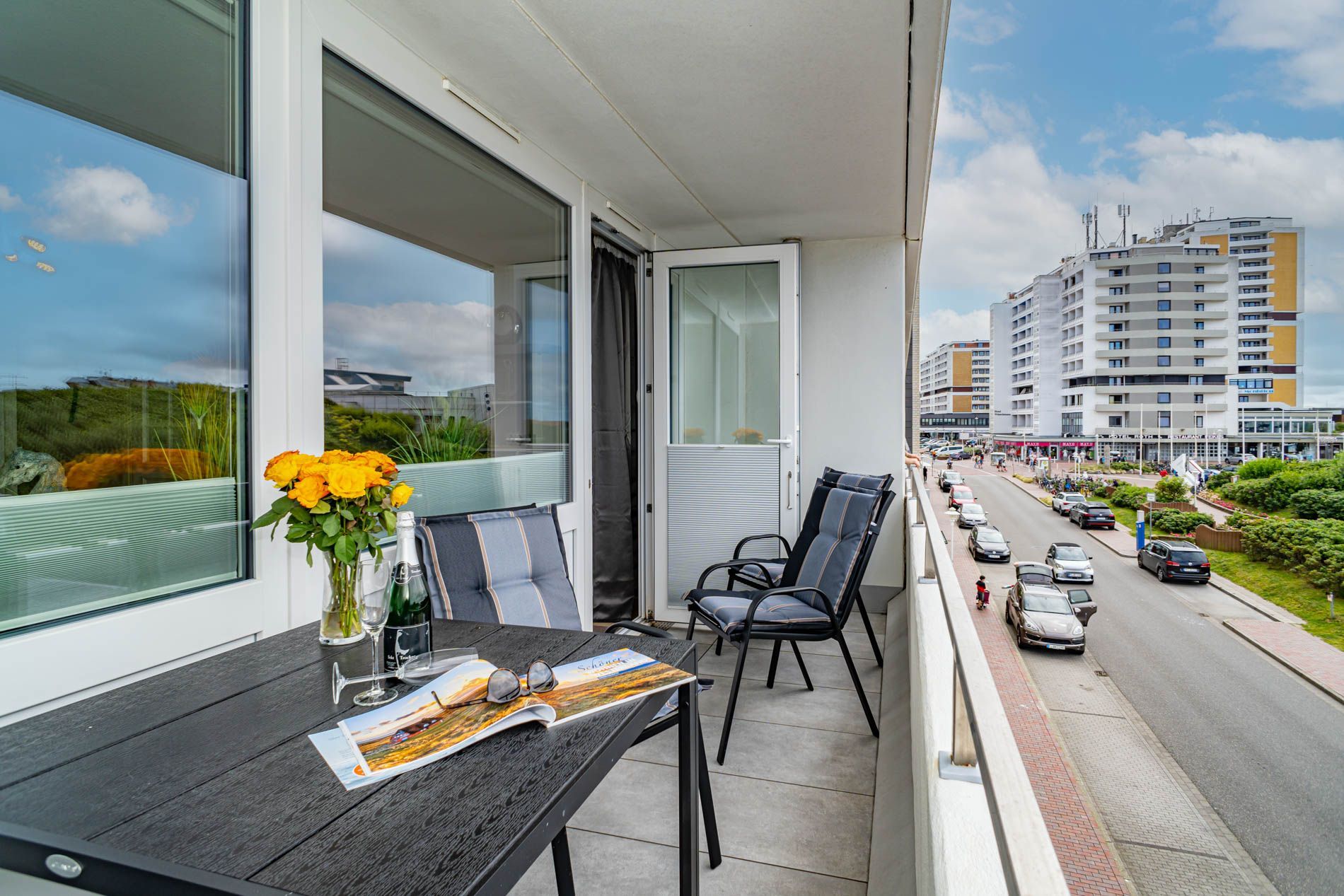 Entdecken Sie diese komplett renovierte, mit Laminat ausgelegte, gemütliche 2-Zimmer-Nichtraucher-Ferienwohnung (ca. 51 qm) in der 2. Etage zur Seeseite mit Westloggia (Nachmittagssonne, kleiner Meerblick, mit Balkonmöbeln für vier Personen und Auflagen).