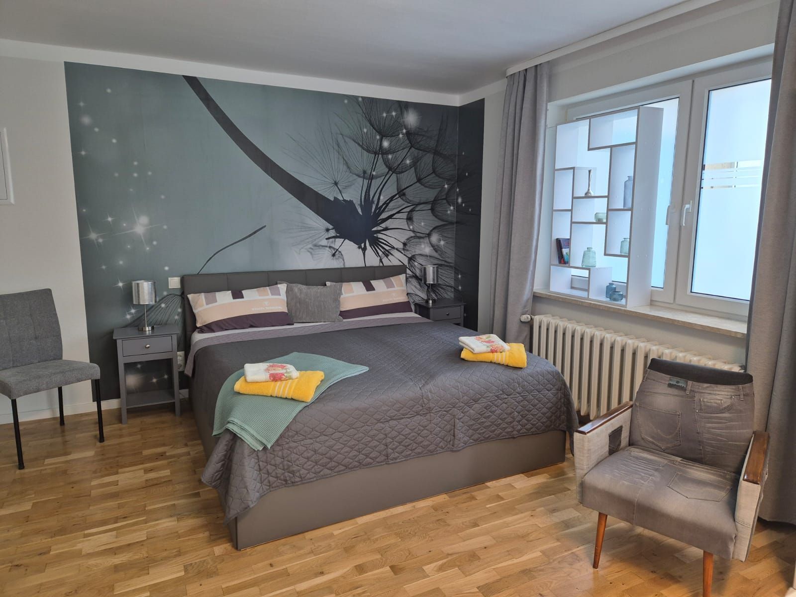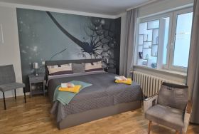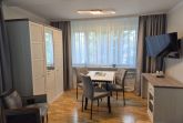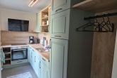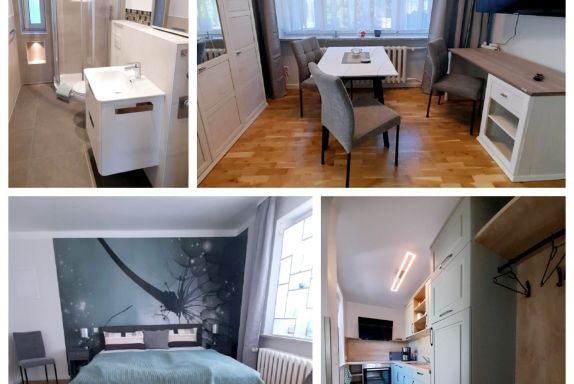 Gemütliche 1-Raum-Fewo als Einliegerwohnung. Im Wohn-/Schlafzimmer befindet sich ein Boxspringbett, Sitzecke und TV, kleine Küche - komplett eingerichtet mit Kopchplatte, Backofen, Abzugshaube, Geschirr etc., geräumiges Badezimmer mit Dusche/WC. Die Wohnung befindet sich im EG und verfügt über eine Terrasse mit Bestuhlung, Liegen und einem Sonnenschirm.